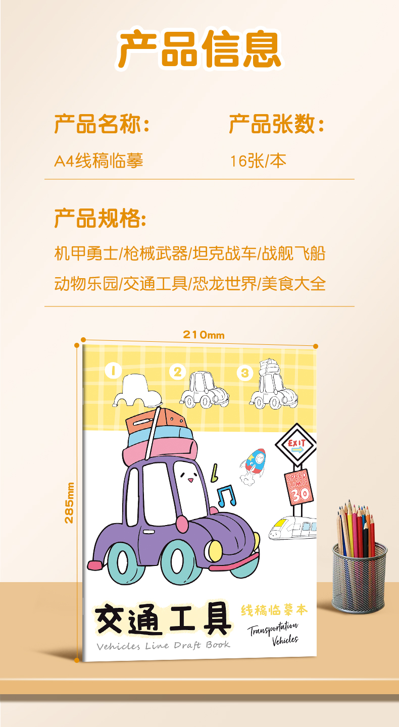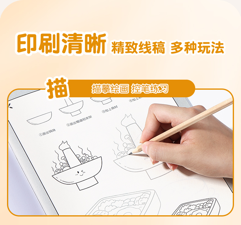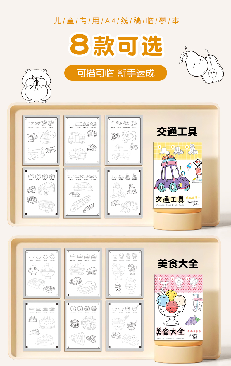 A4线稿描摹卡通线稿描摹本儿童零基础临摹美食大全画本A4线稿素描本