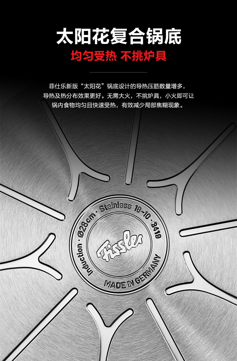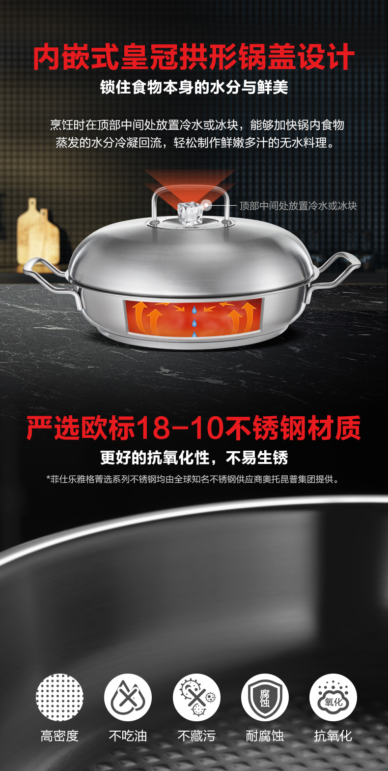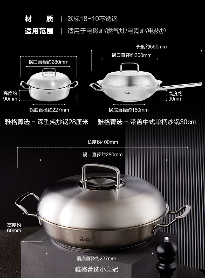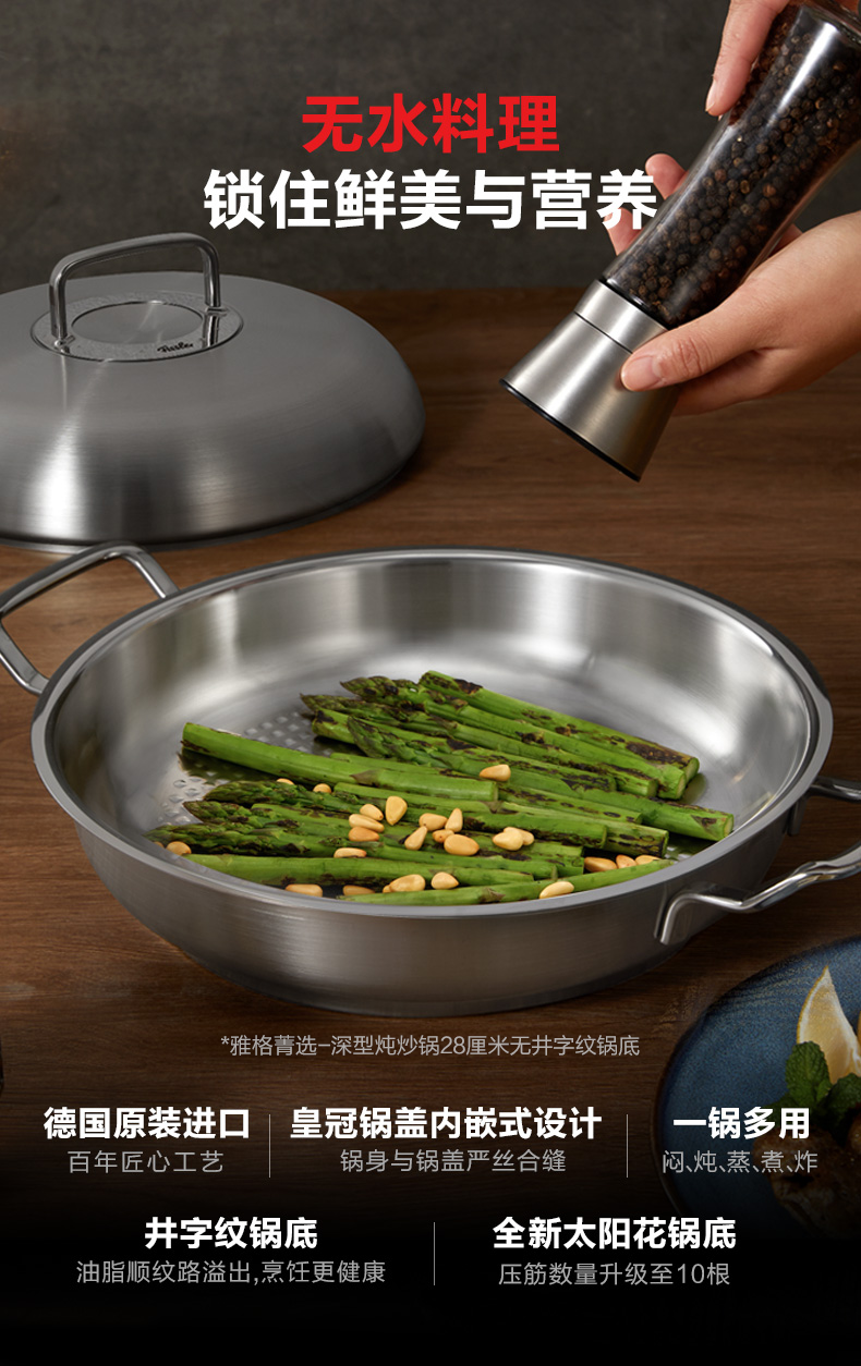 德国菲仕乐Fissler小皇冠雅格菁选进口不锈钢炒锅炒菜锅