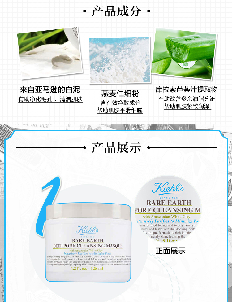 【香港直邮】美国科颜氏 Kiehl's白泥面膜142g/125ml(新老版本随机发货)