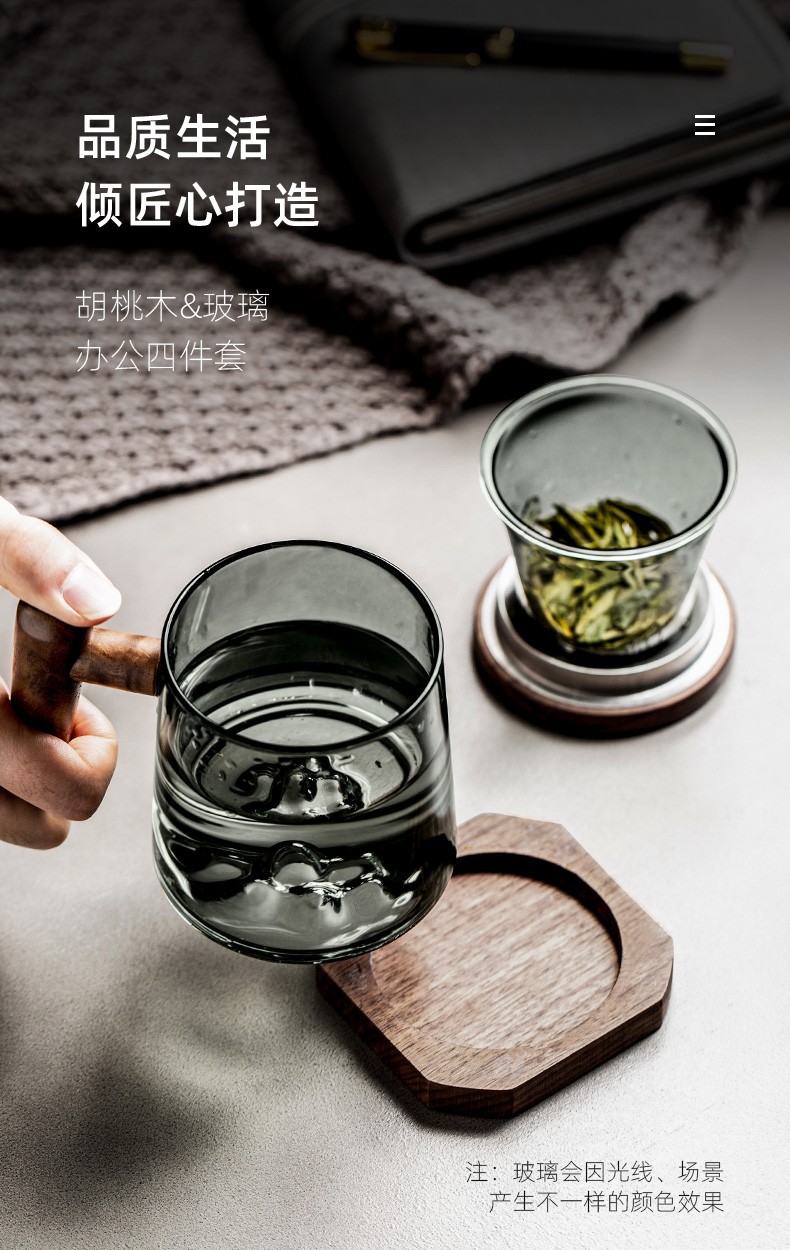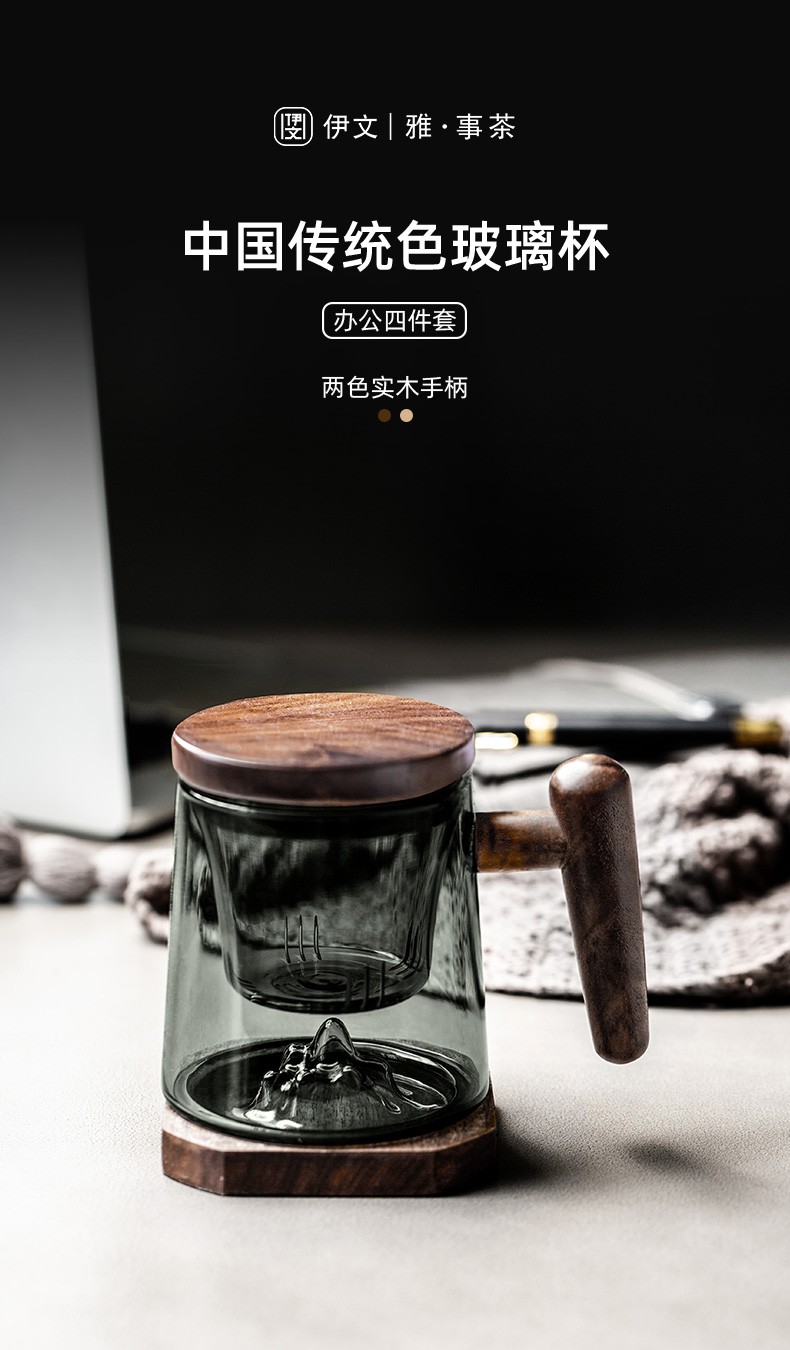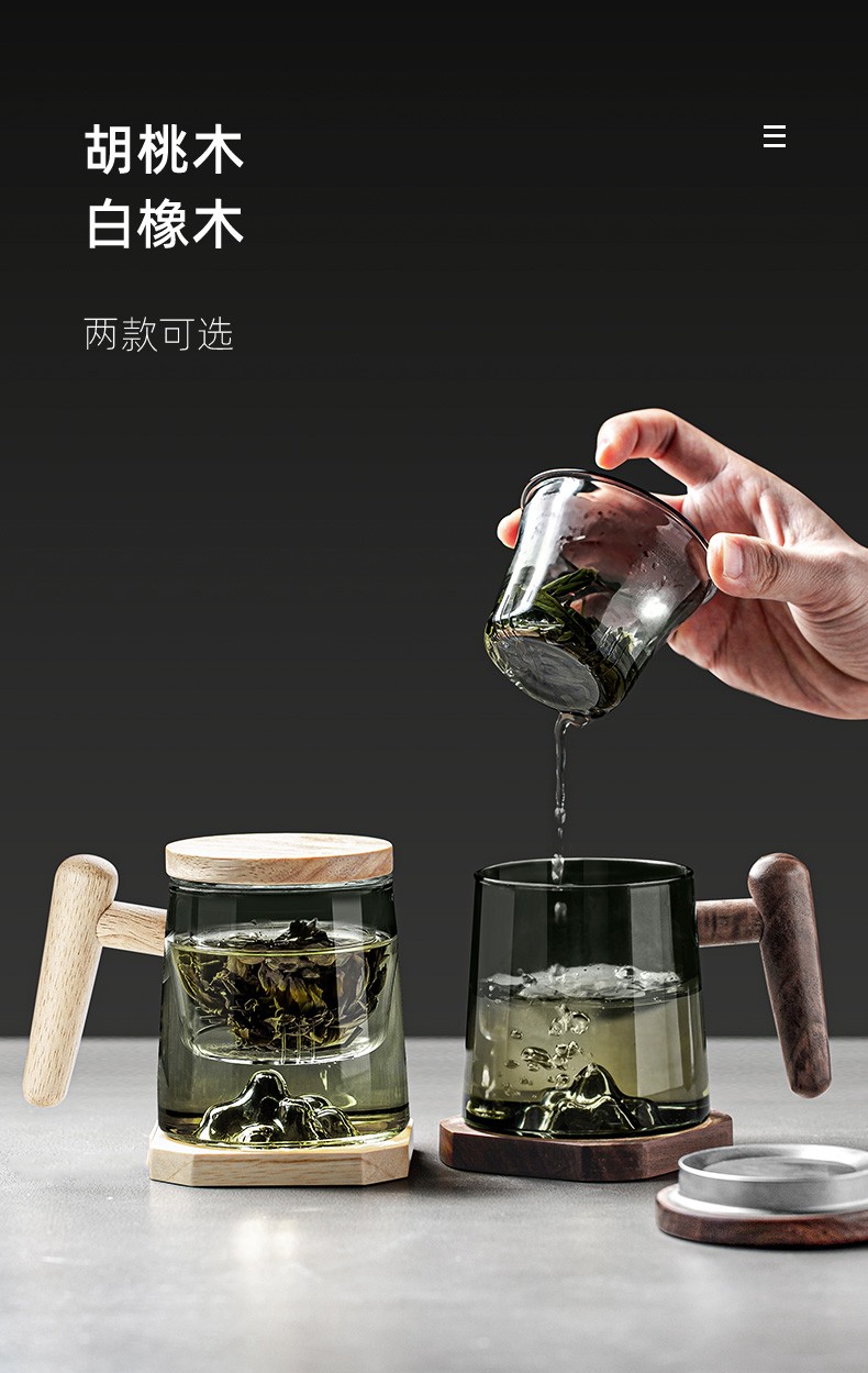 茶水分离泡茶杯玻璃杯带盖过滤茶杯水杯大容量杯子男女 逗号恒温垫O2e