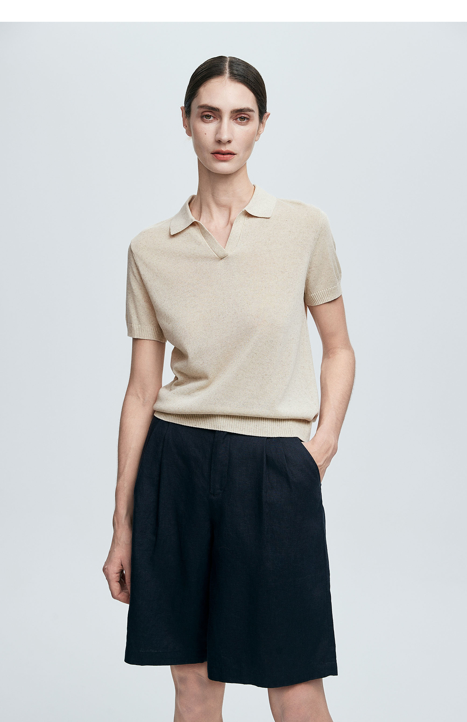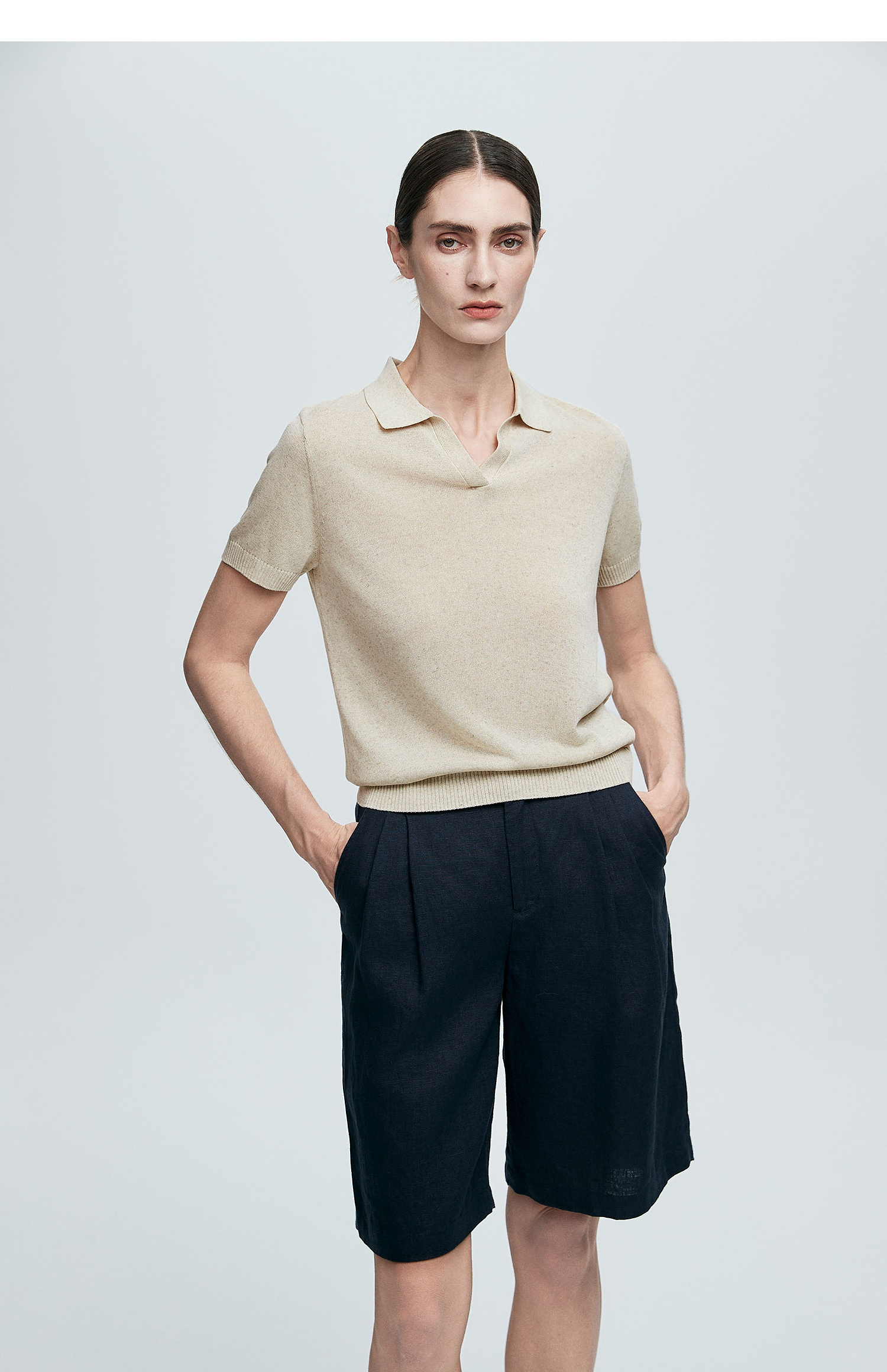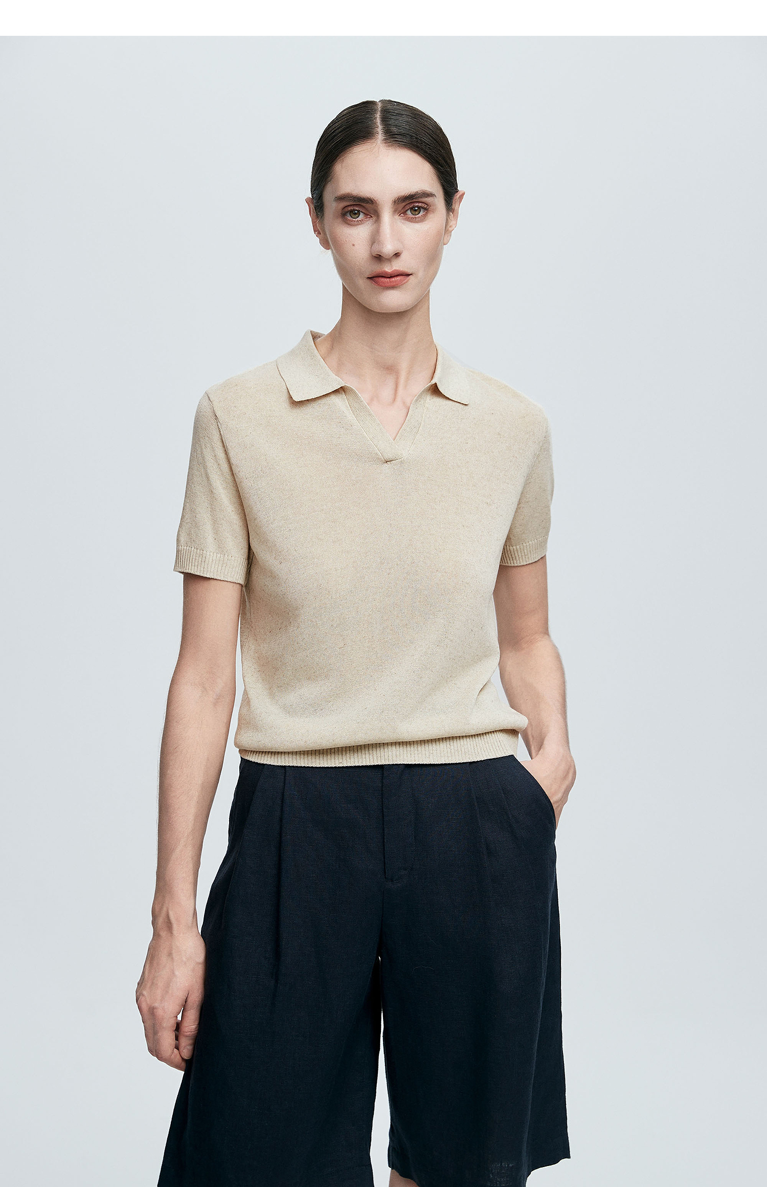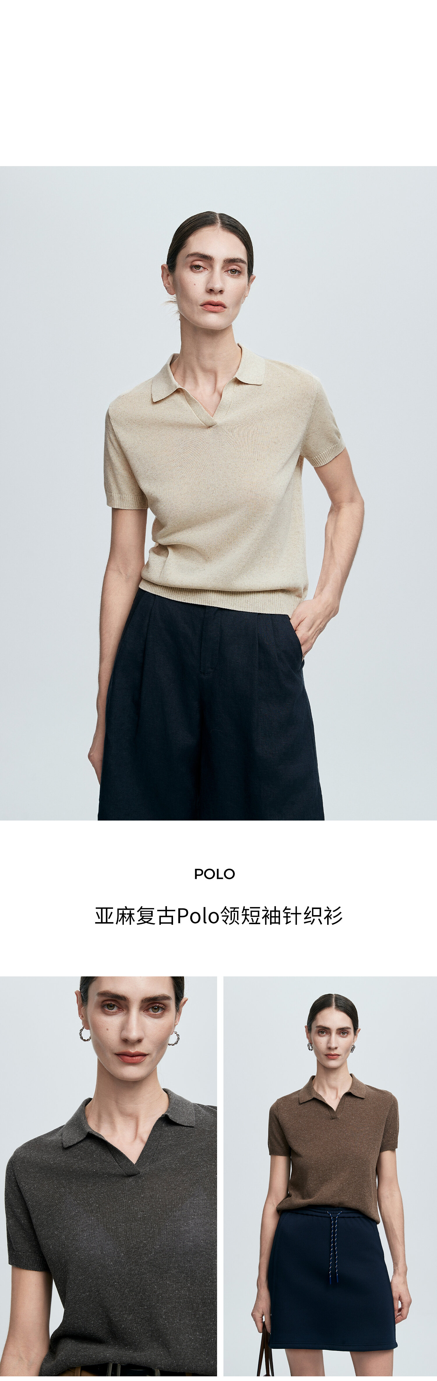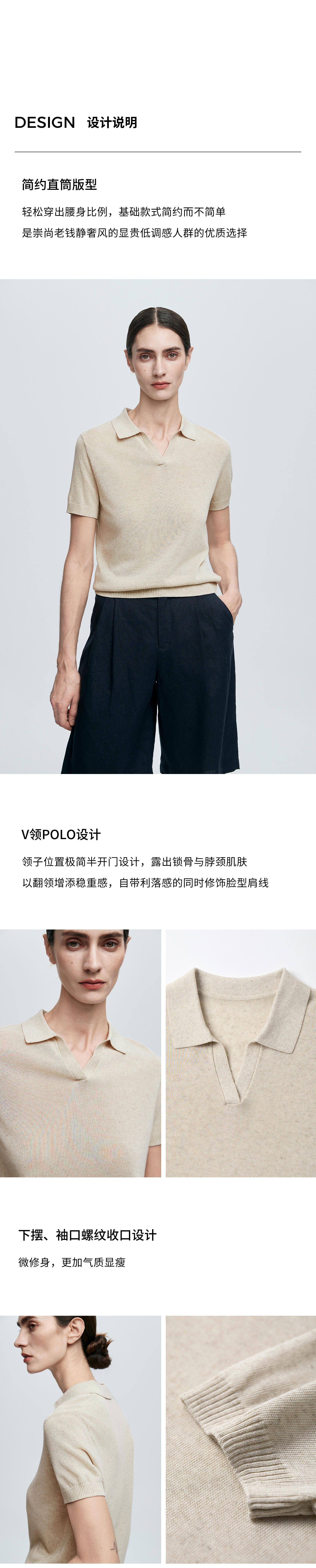 棉仓363635020-初棉亚麻复古Polo领短袖针织衫