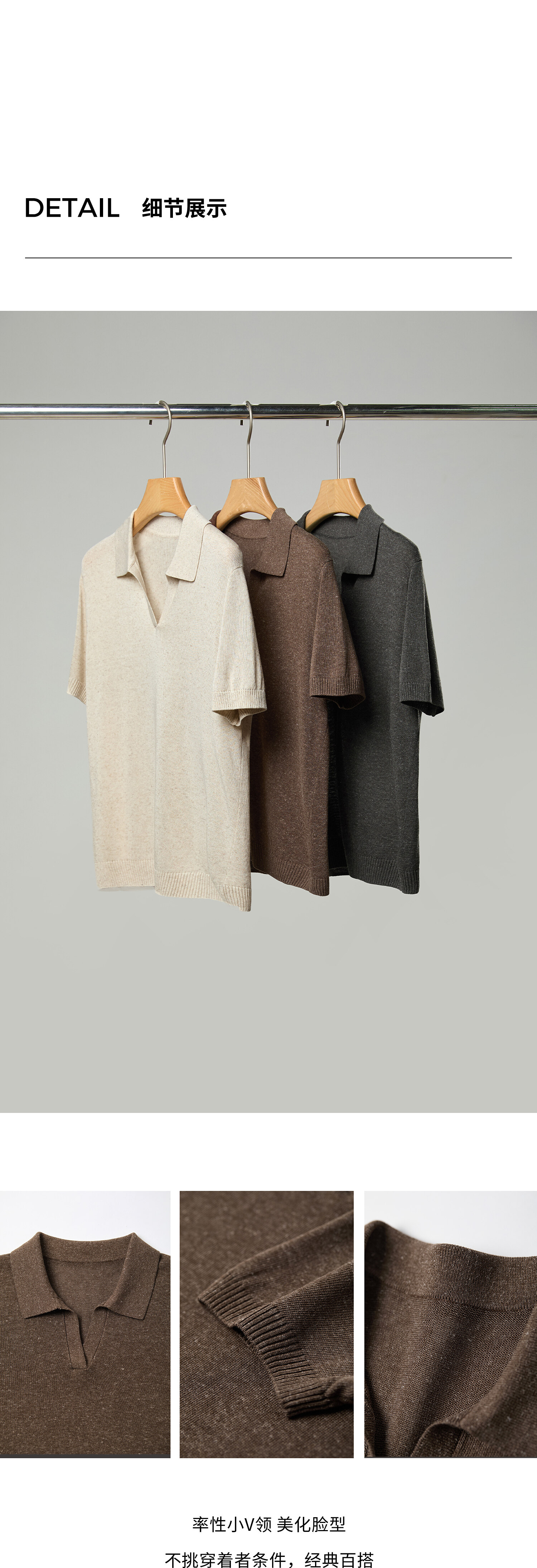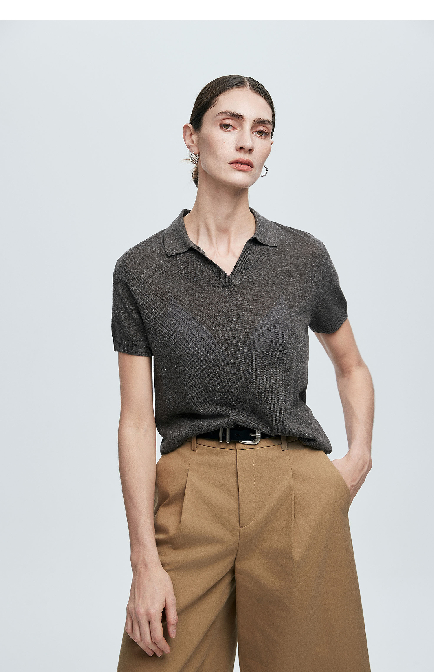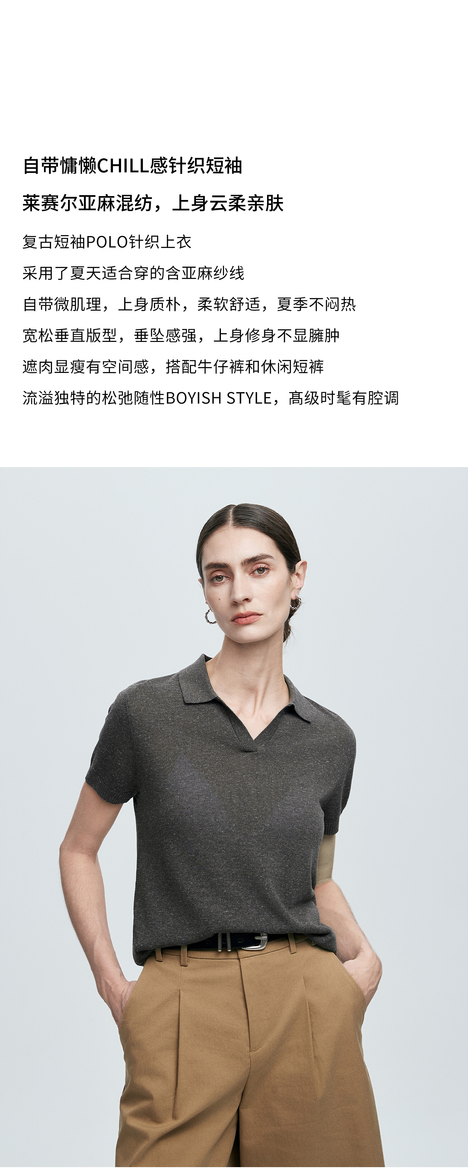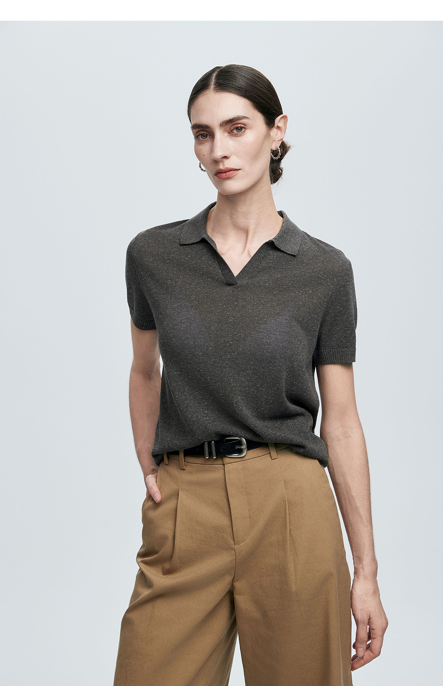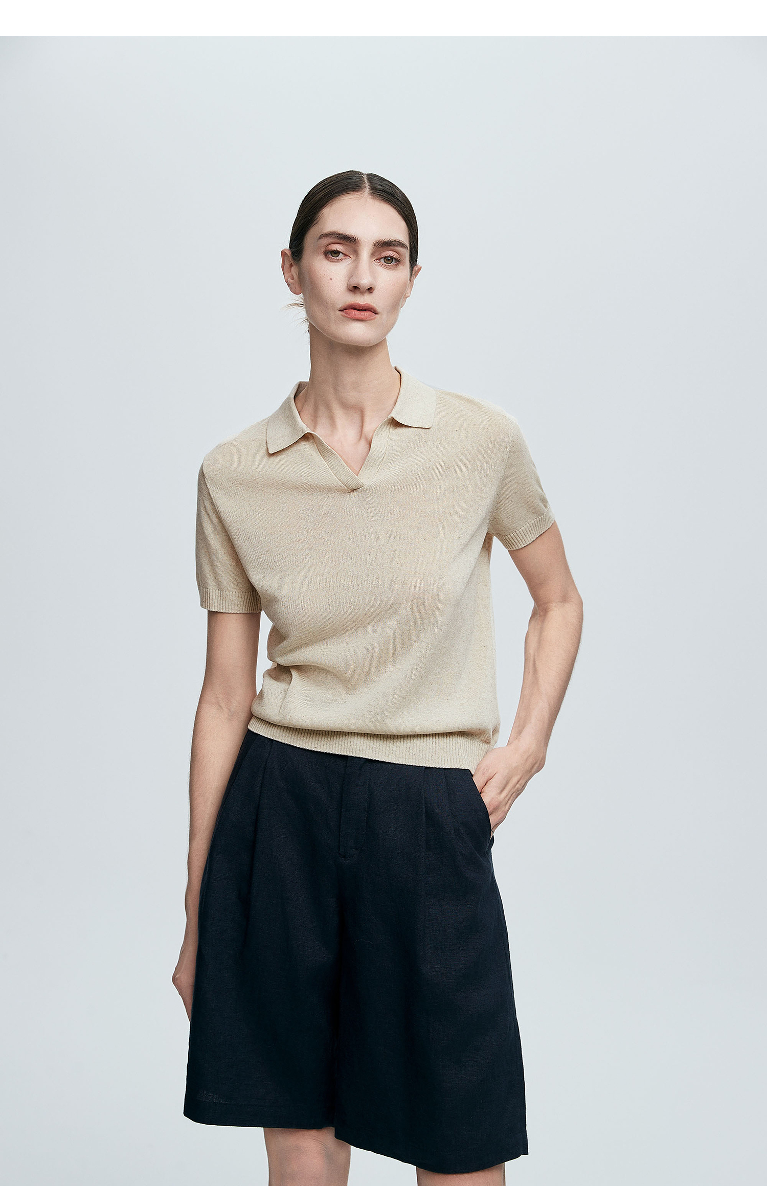 棉仓363635020-初棉亚麻复古Polo领短袖针织衫