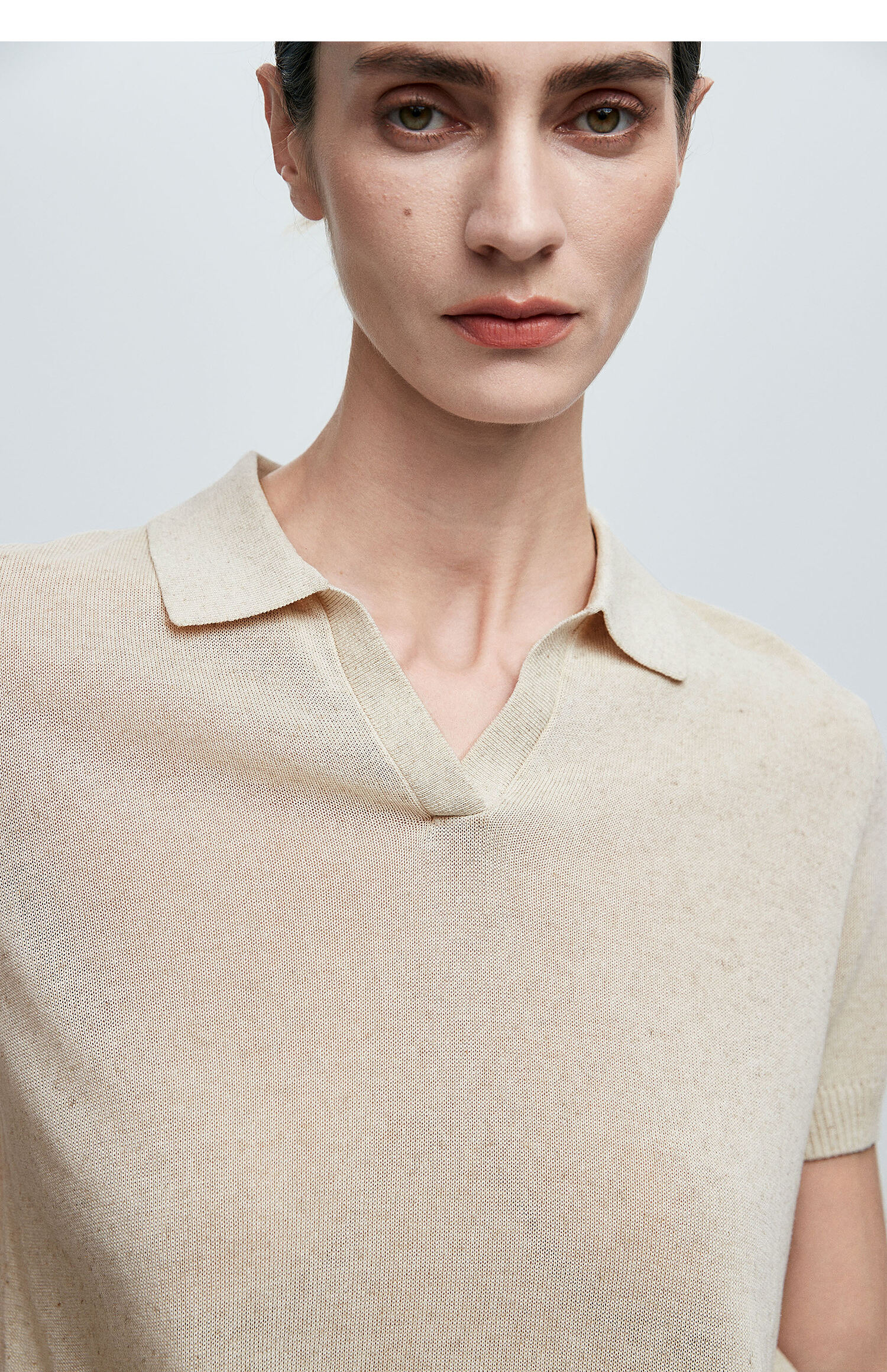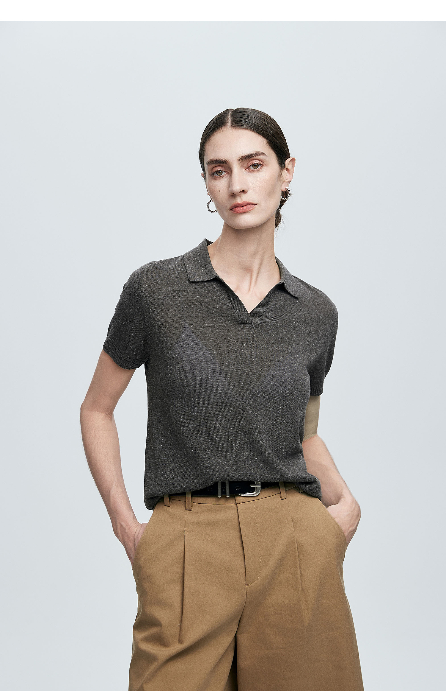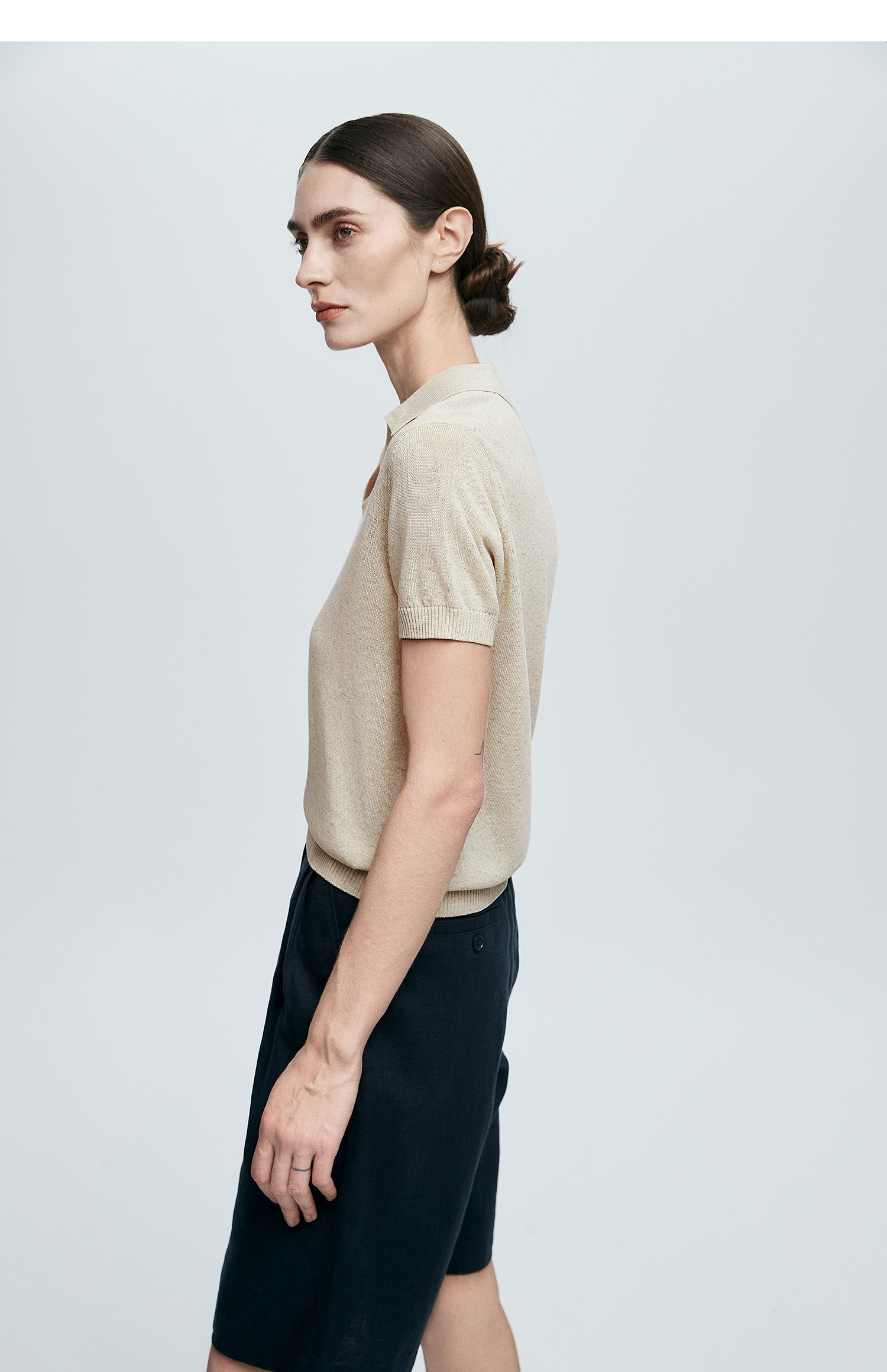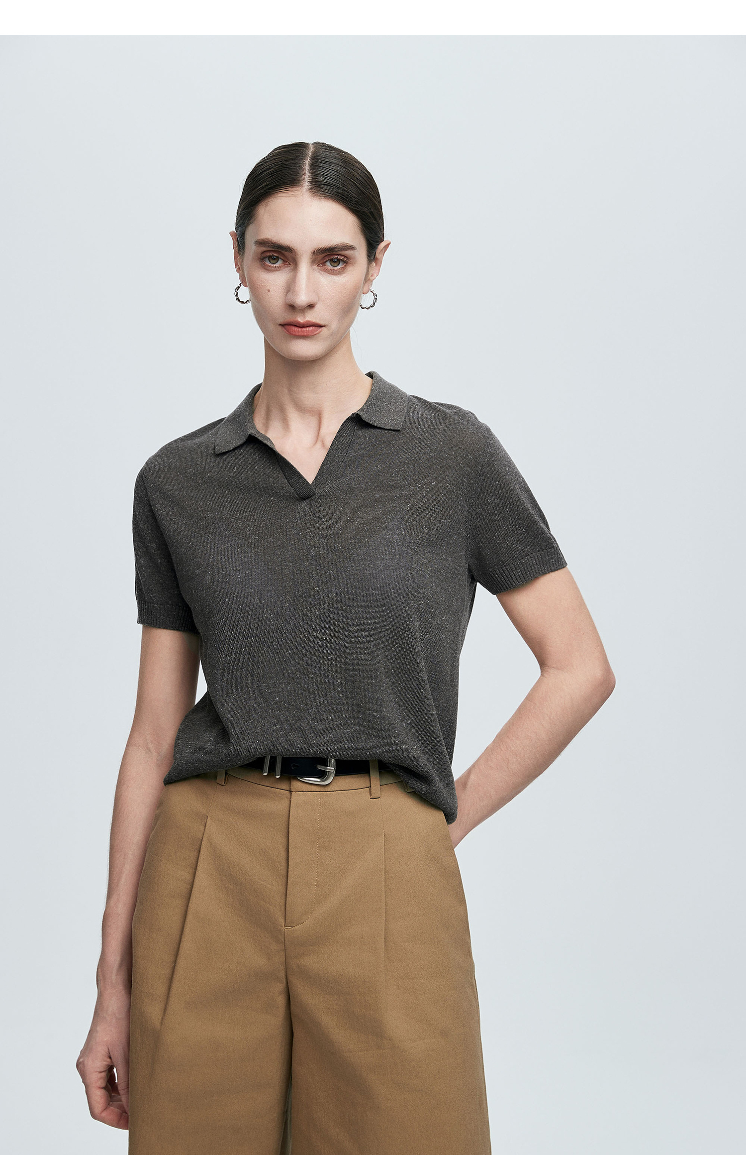 棉仓363635020-初棉亚麻复古Polo领短袖针织衫