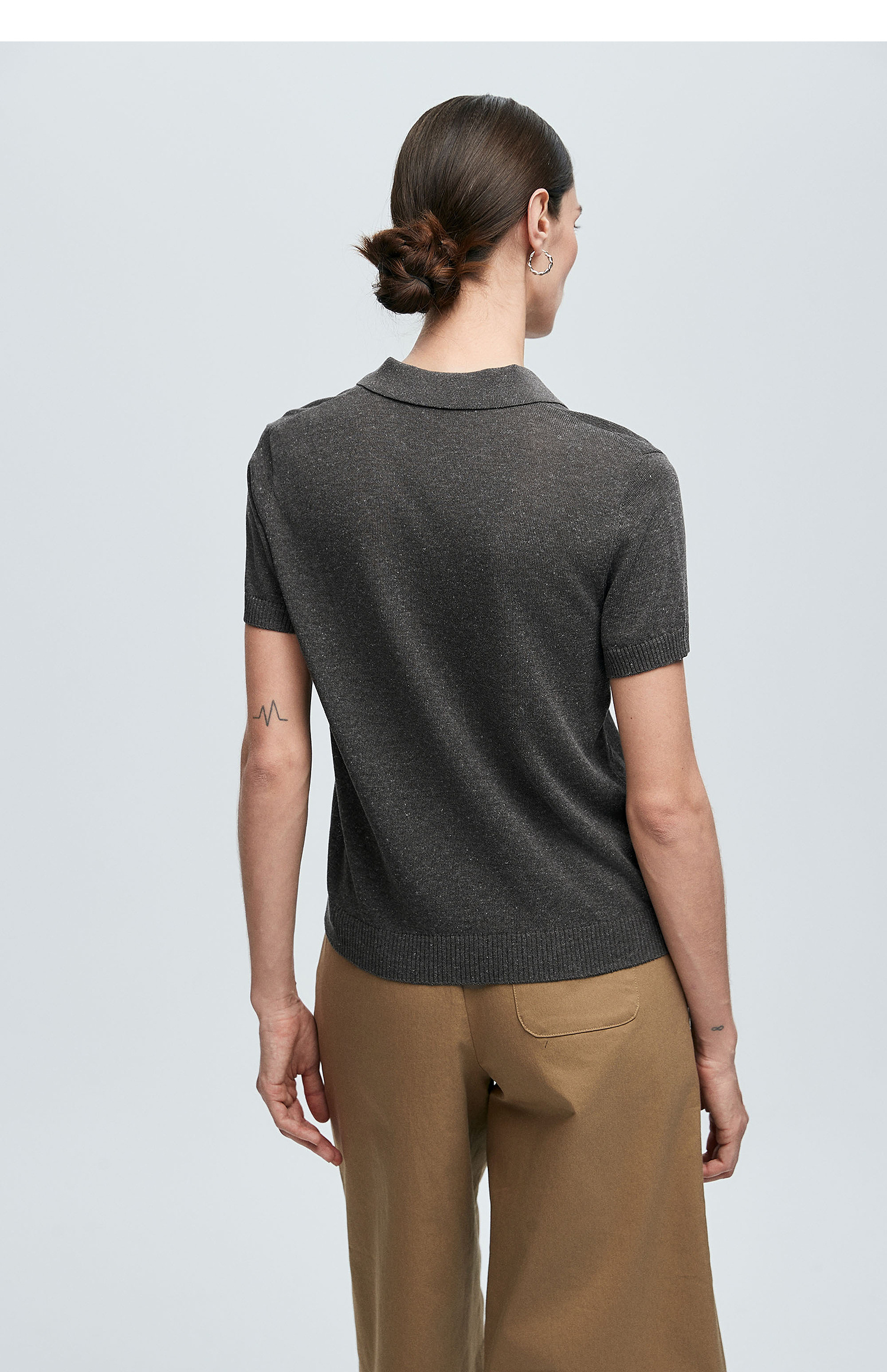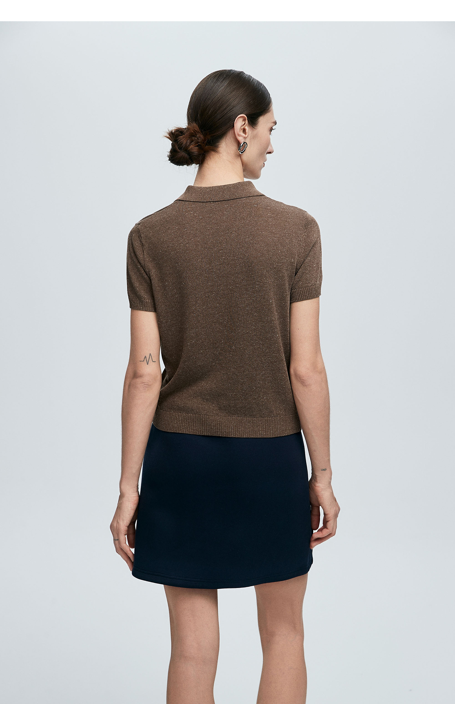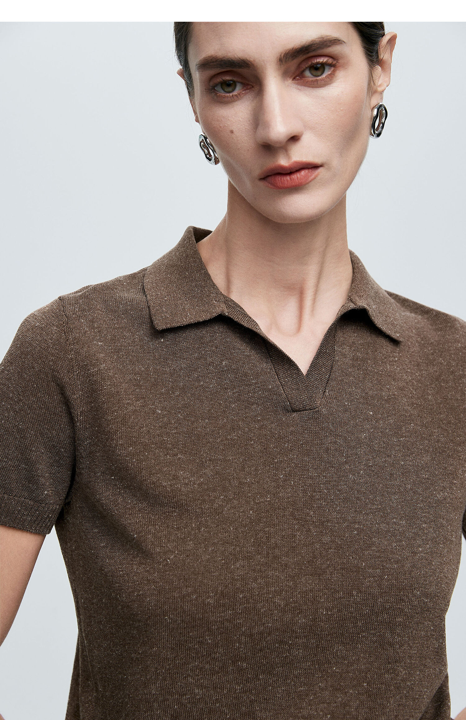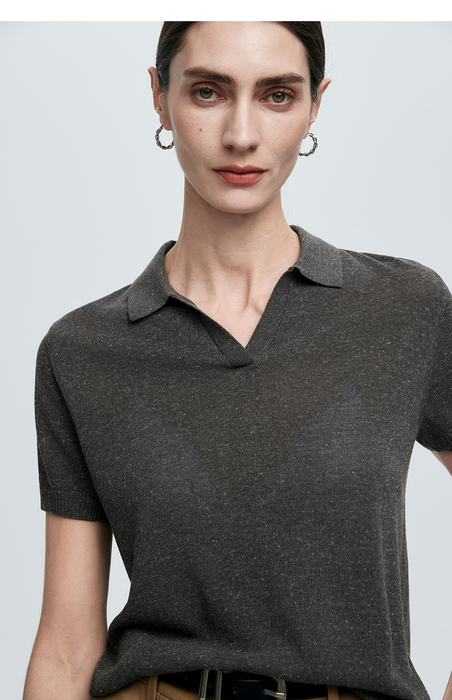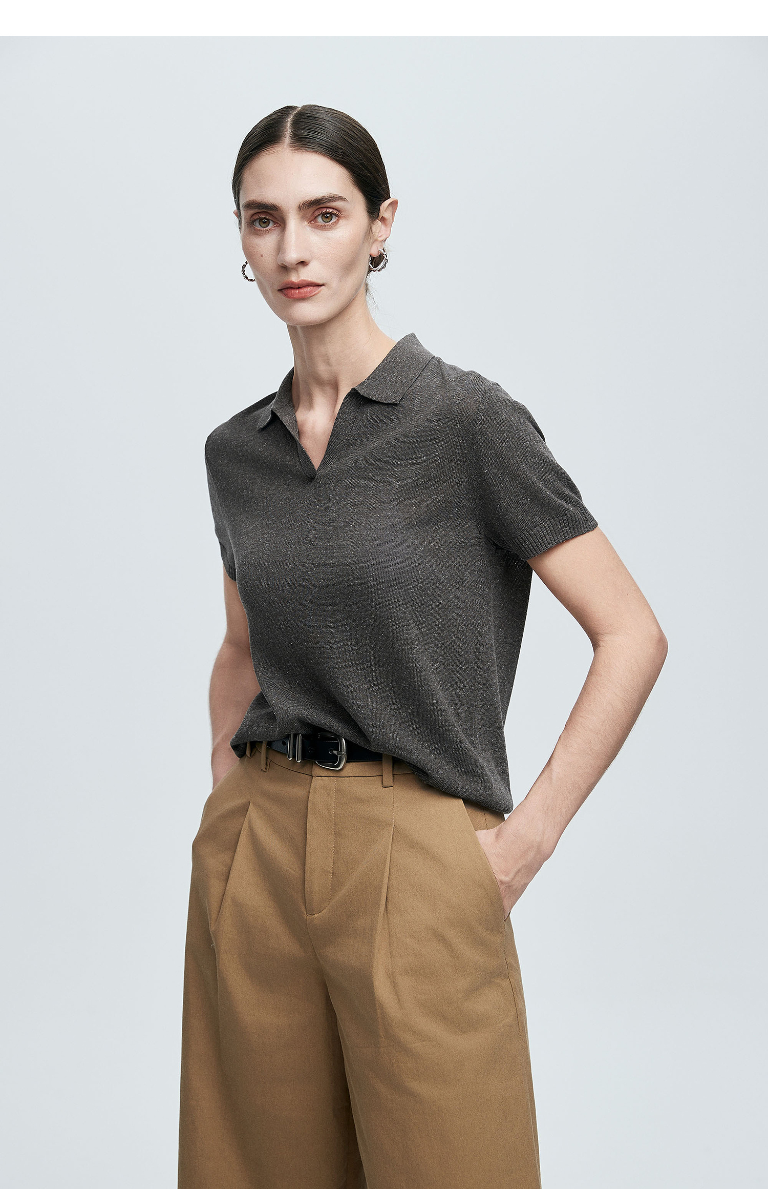 棉仓363635020-初棉亚麻复古Polo领短袖针织衫