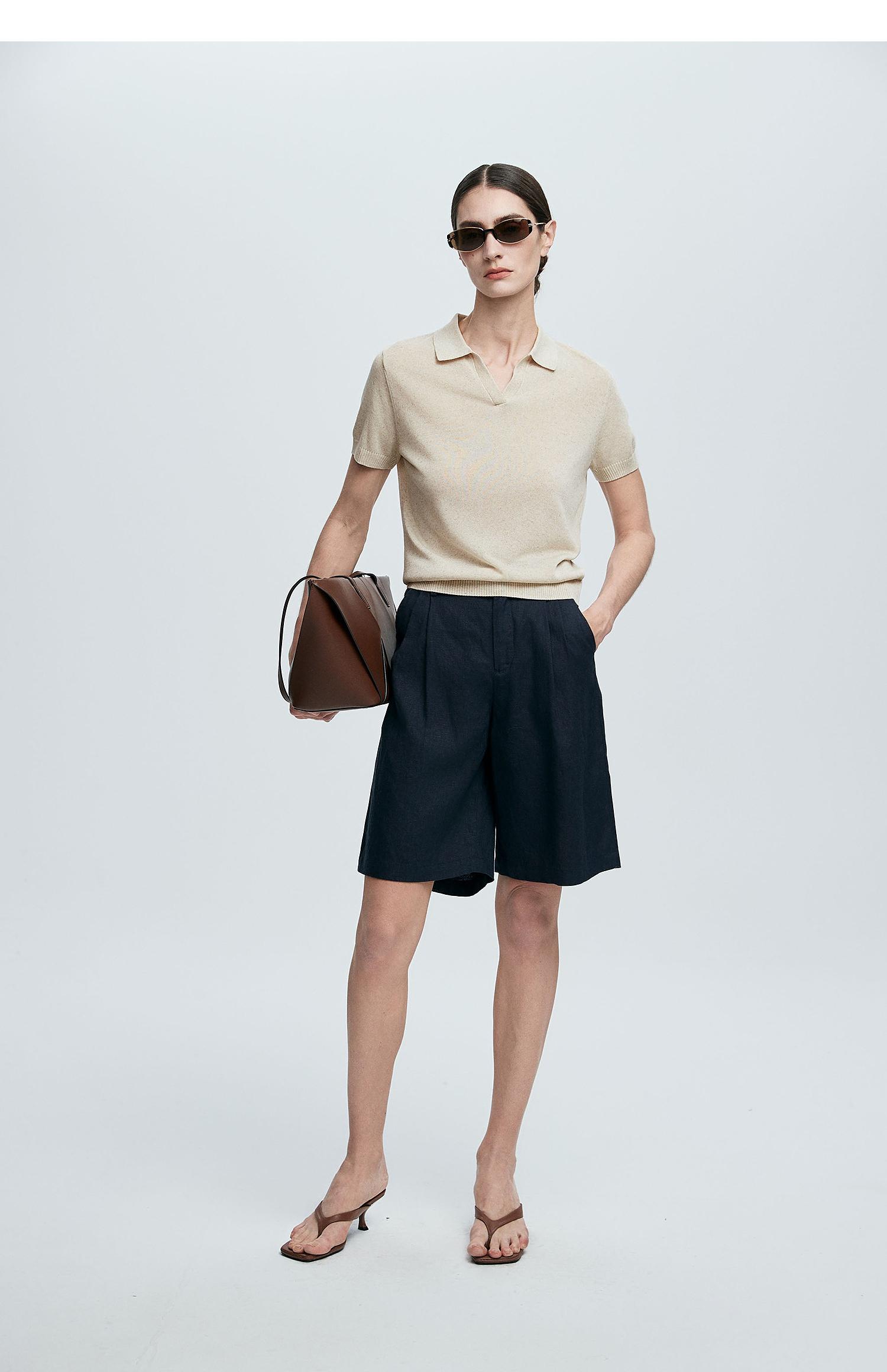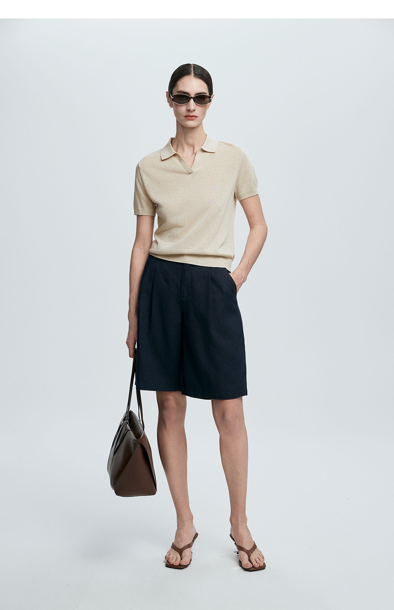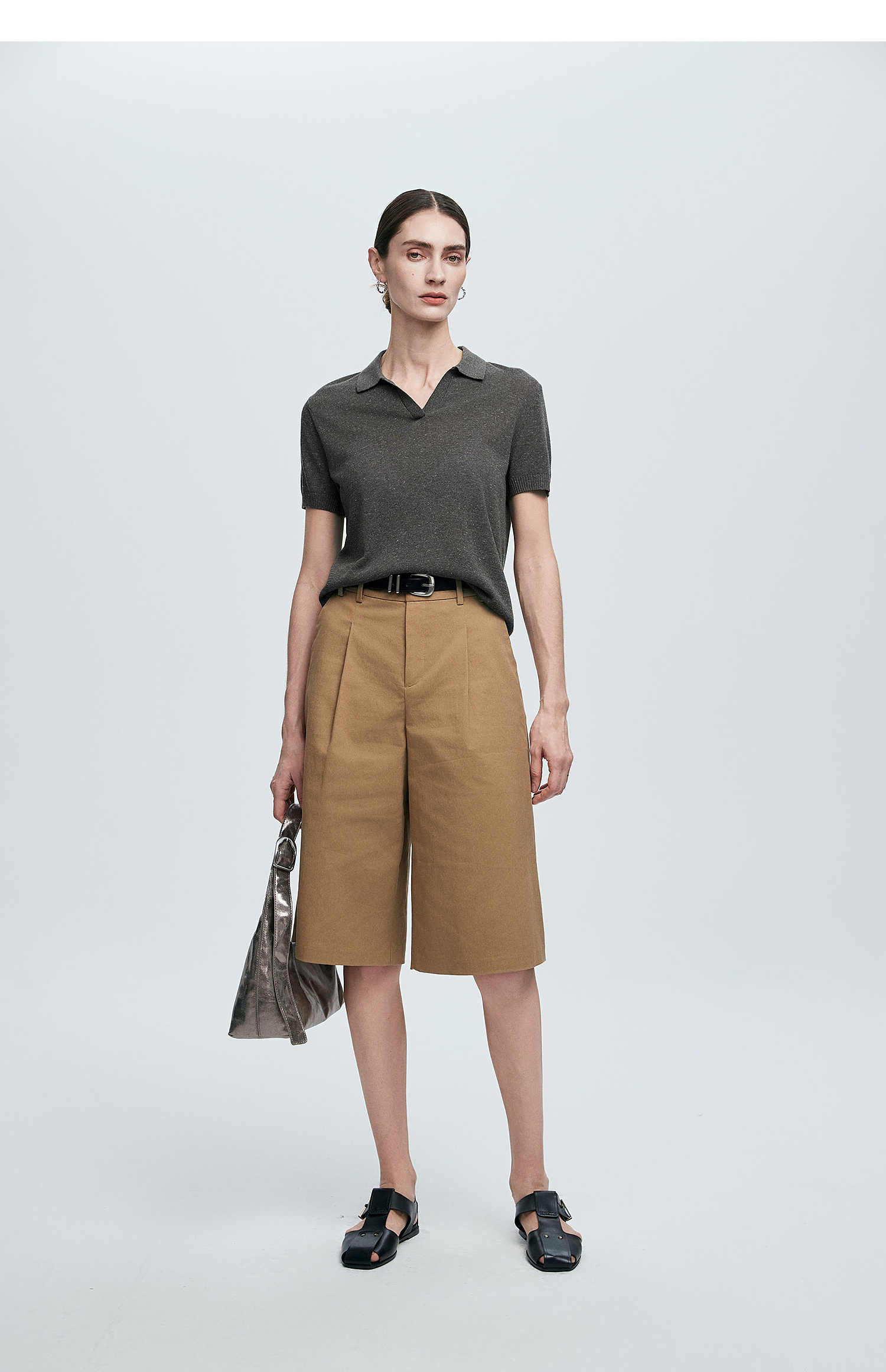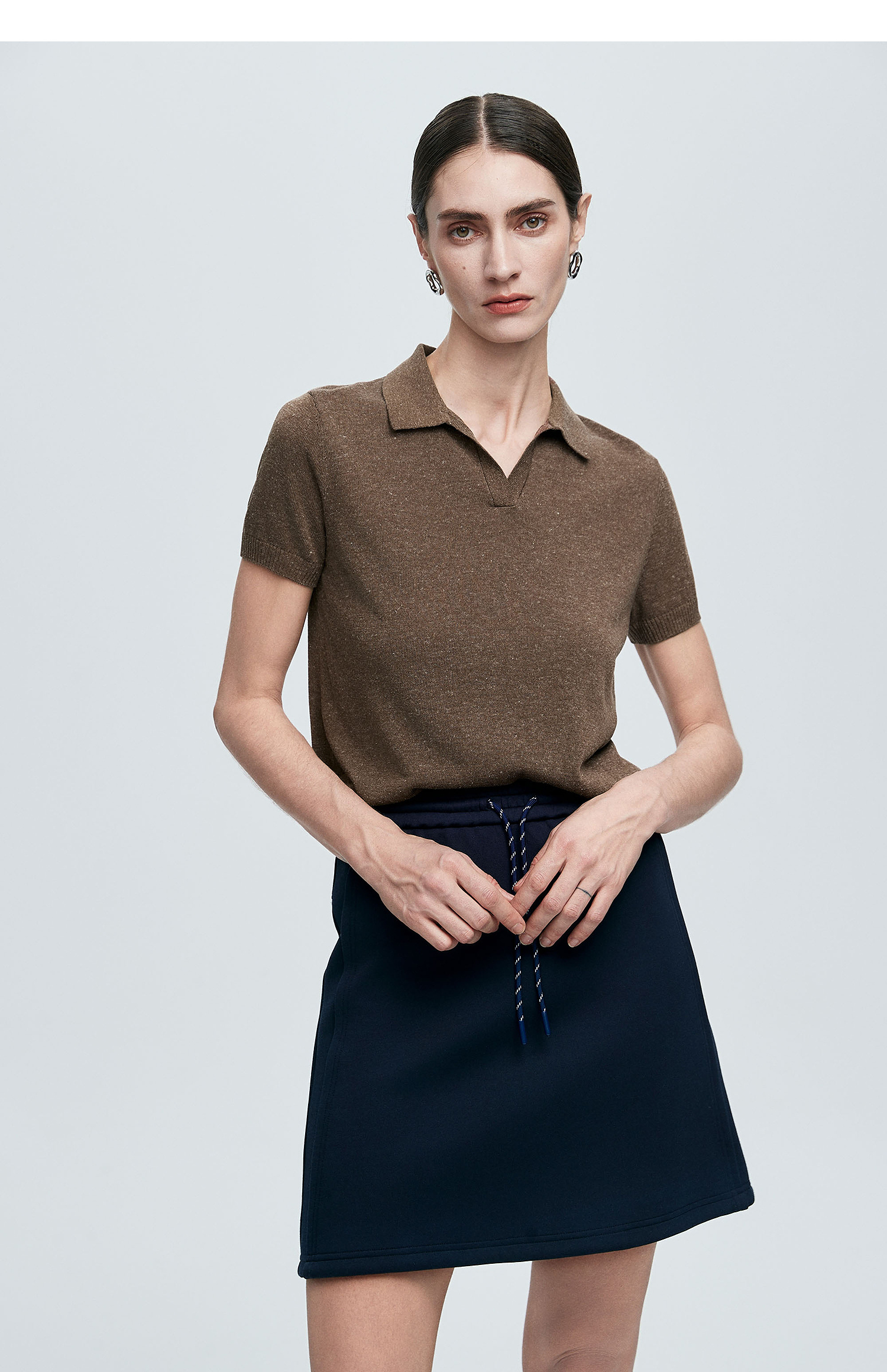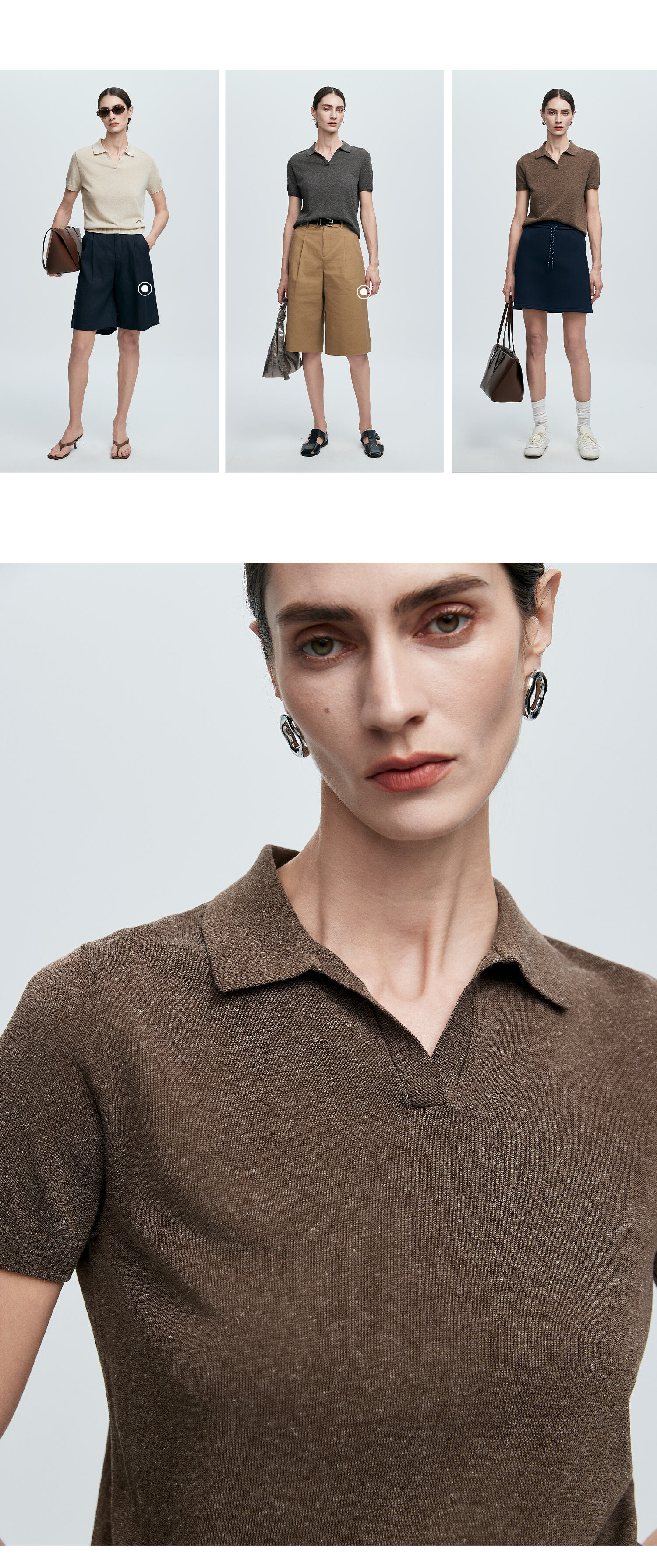 棉仓363635020-初棉亚麻复古Polo领短袖针织衫