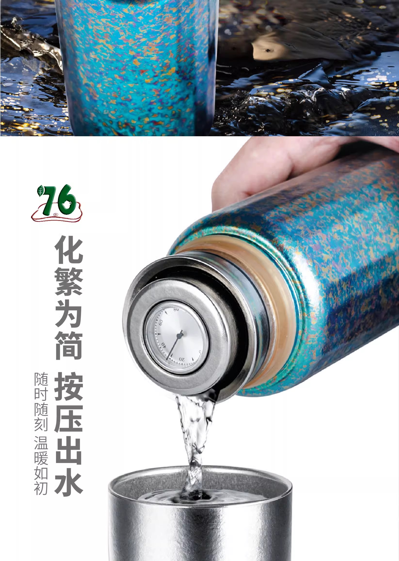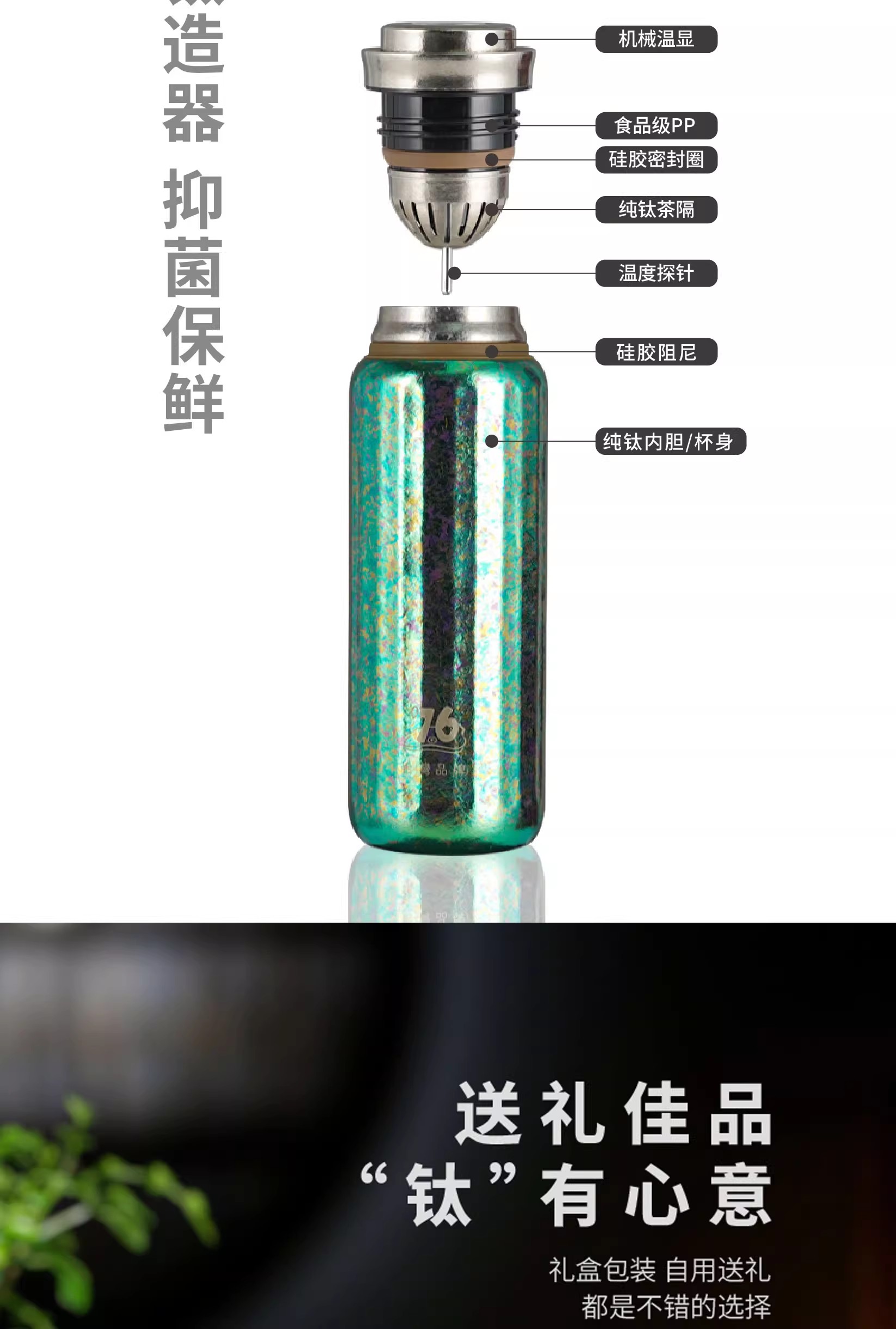 76新款钛杯纯钛保温杯高档机械显温男女车载便携大容量泡茶杯水杯