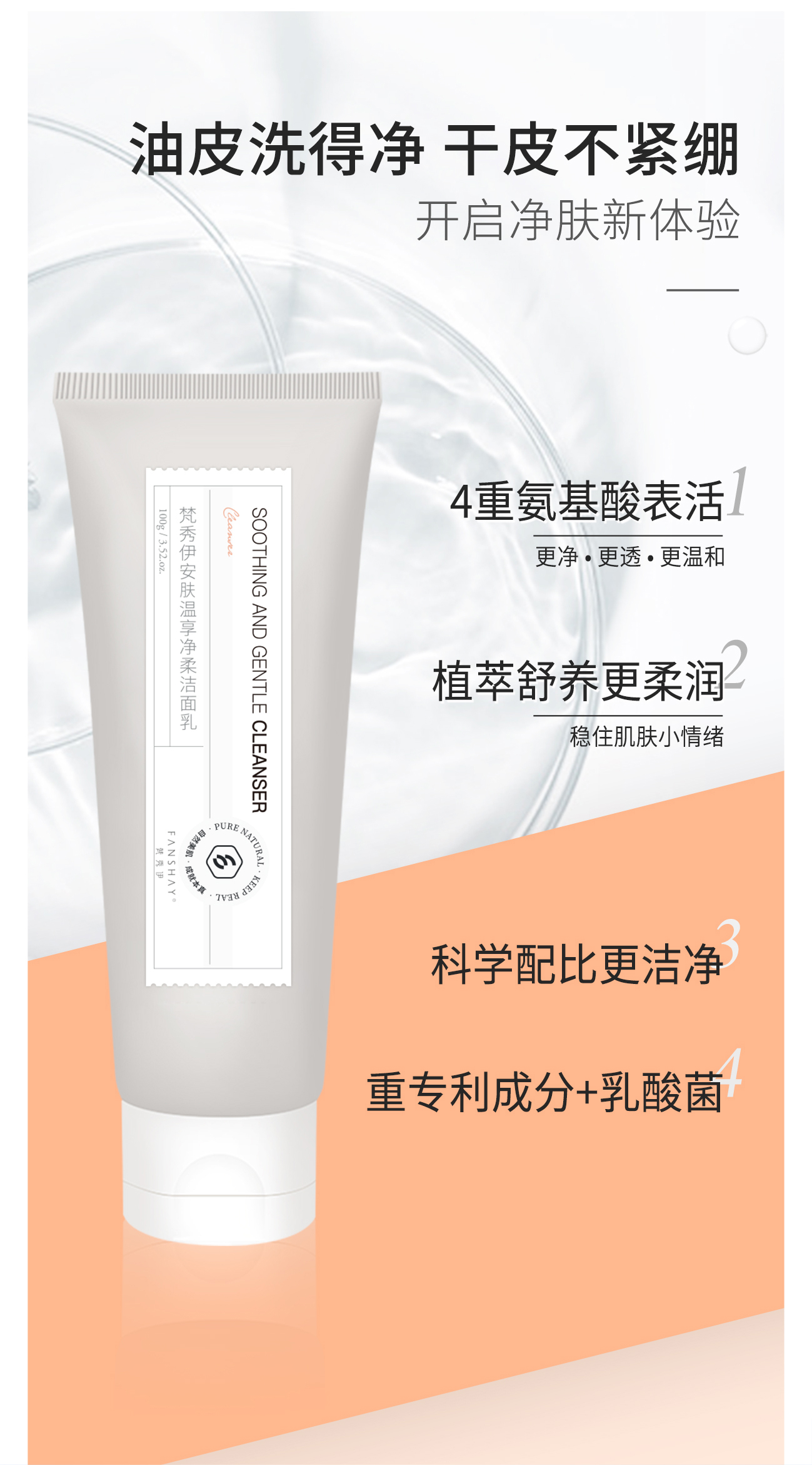 梵秀伊安肤温享净柔洁面乳100g