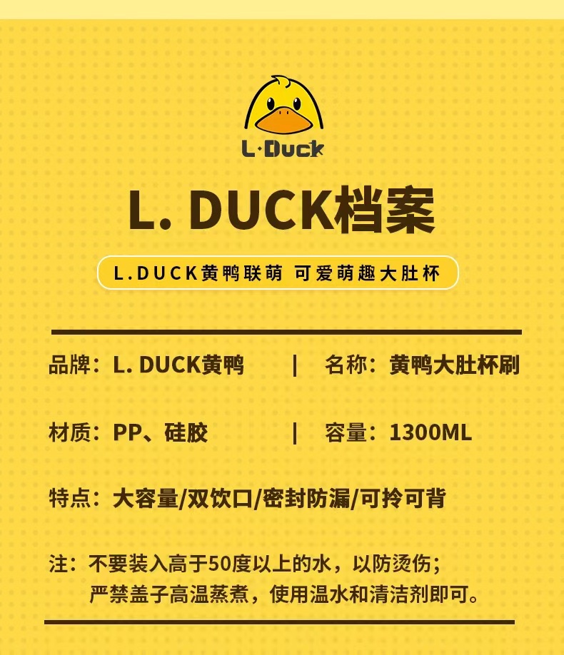 小黄鸭儿童学生吨吨桶水壶1.3L