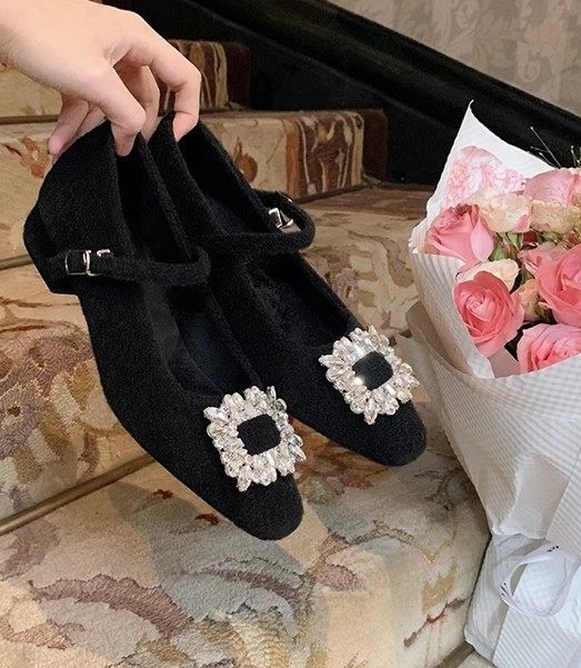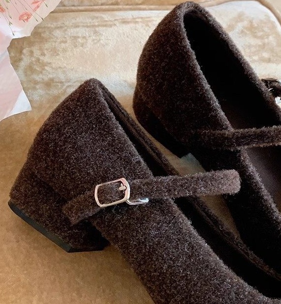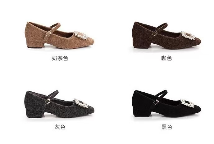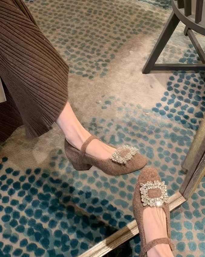 小方跟3cm高,毛呢材质,内里加绒,连衣裙CP,搭配半裙,西装裤,牛仔裤,妖精裤绝美。