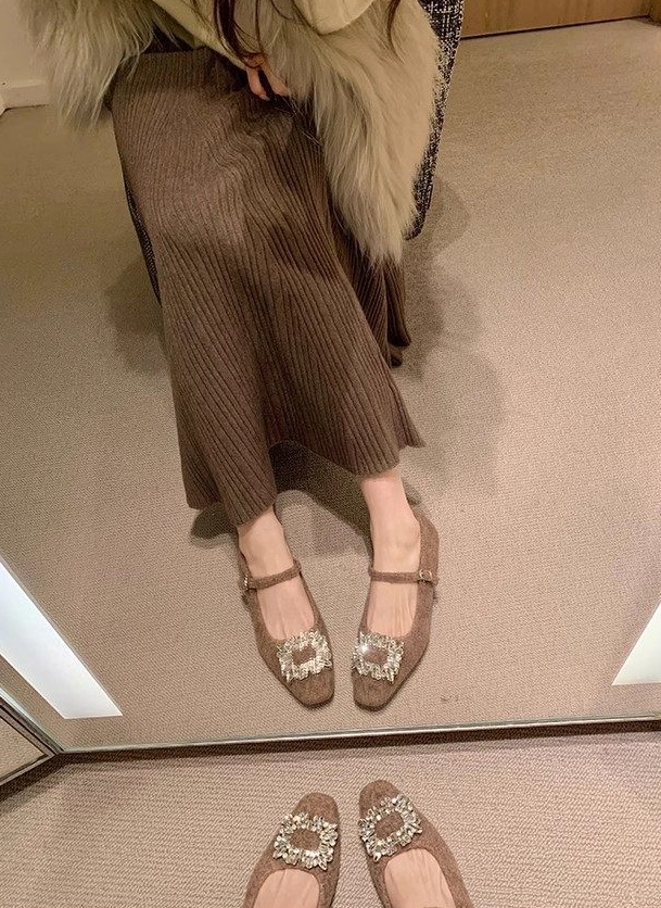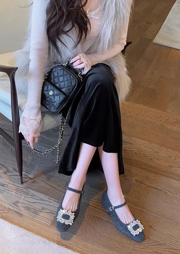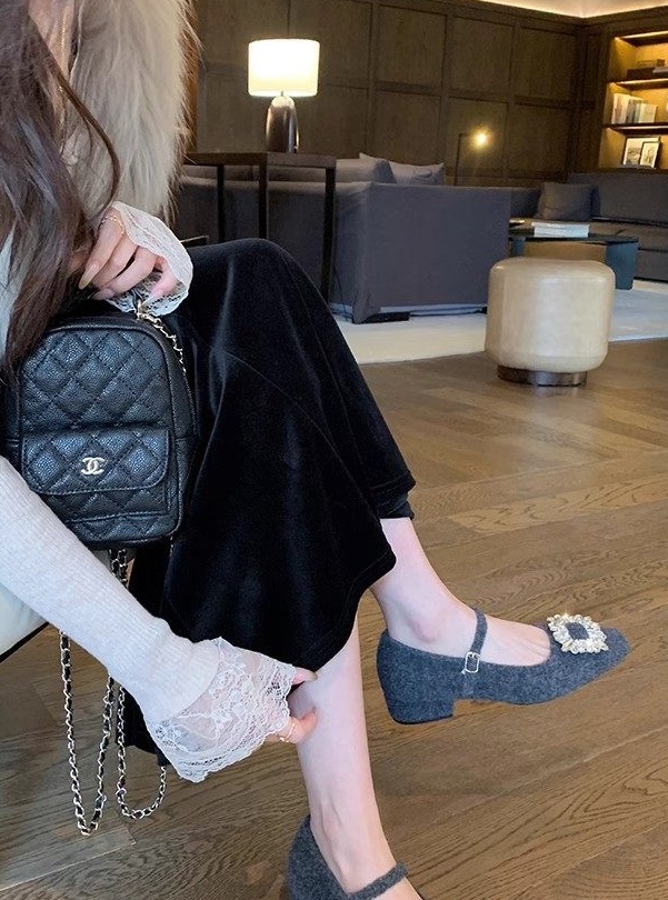 羊绒毛呢质感增加温柔,弧型斜口显得脚被秀气,会给整体穿搭提升气质品相。
