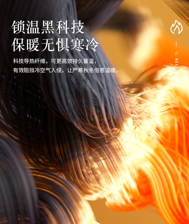 ◎ 外层:高密绒面,隔绝寒冷,质感高级