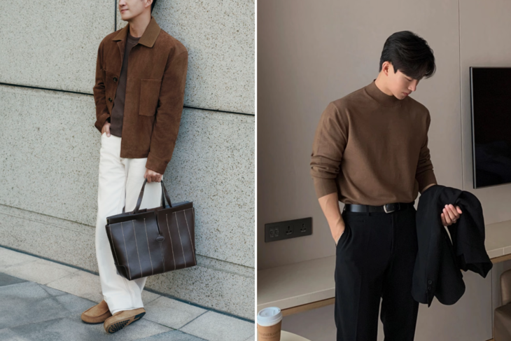 比卡其更深沉,比黑色更有温度,自带复古滤镜,追求小众质感男士选这个颜色,很有冬天氛围的美拉德穿搭。