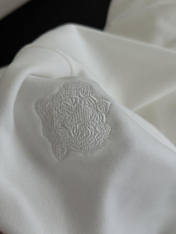 先夸爆这个虎头刺绣设计。很多奢牌高定都会用刺绣点缀,来提升整件衣服的档次,这件衣服也是这样——