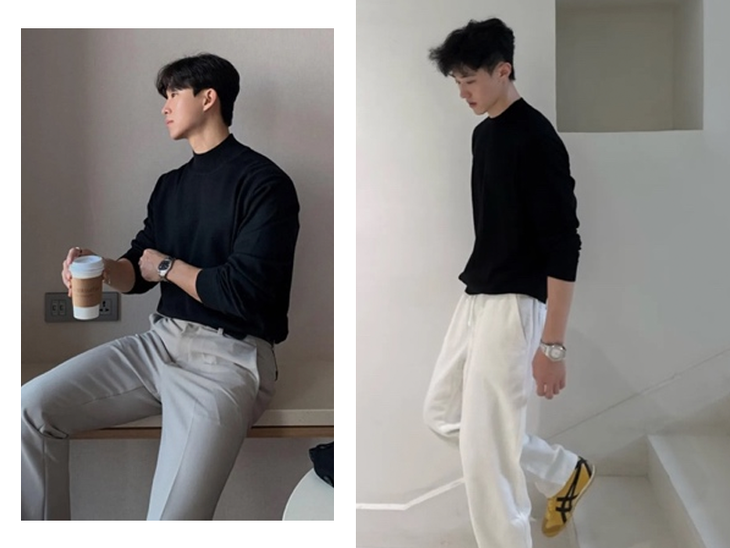 不夸张,内搭换成它,随便外套怎么搭,甚至单穿,气质都直逼韩国男神,就是硬帅!