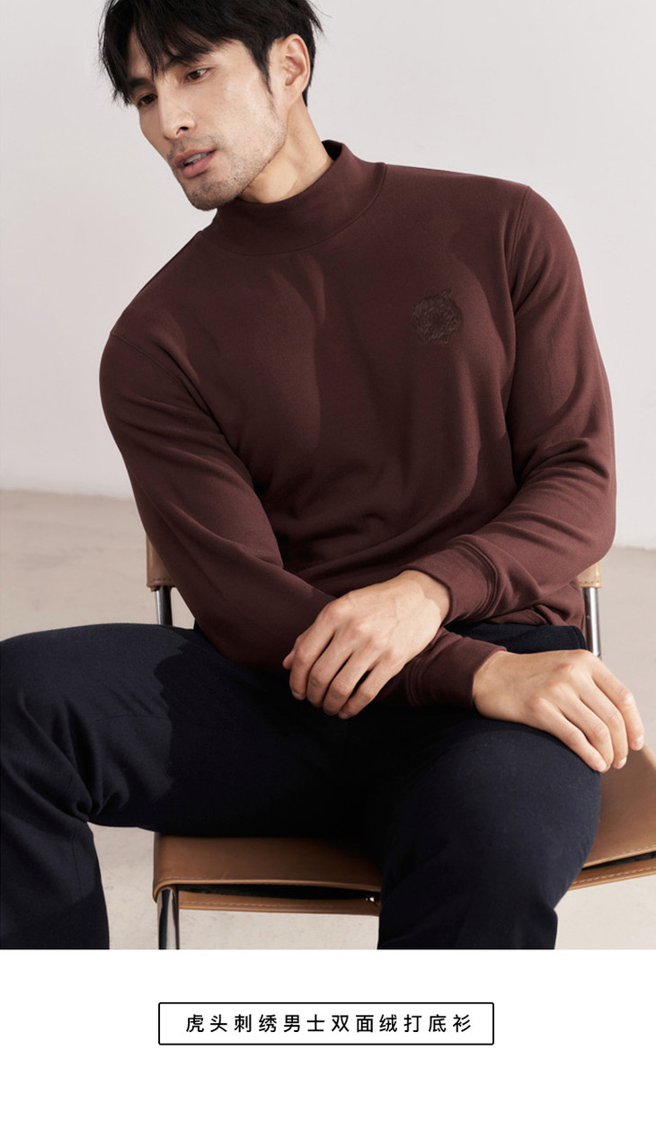 【单拍不发!89元2件,118元3件】虎头刺绣男士双面绒打底衫|双面德绒,一件顶两件,轻盈又保暖!万针刺绣,有风骨显品味!