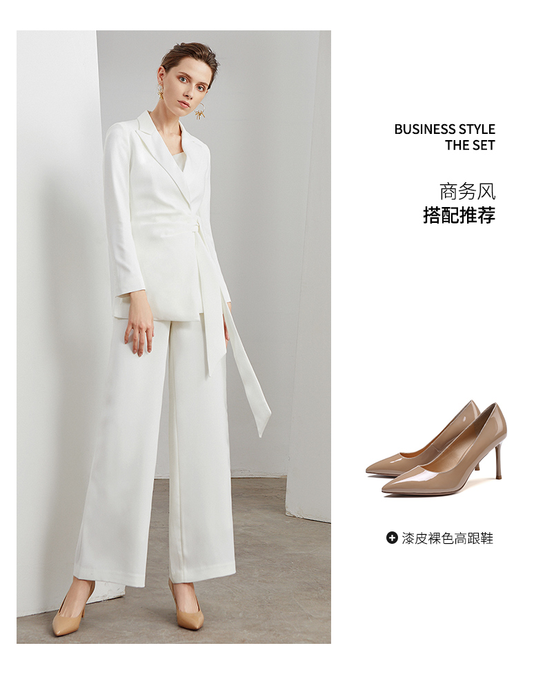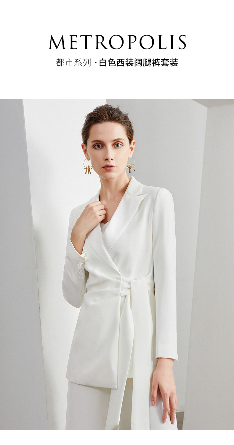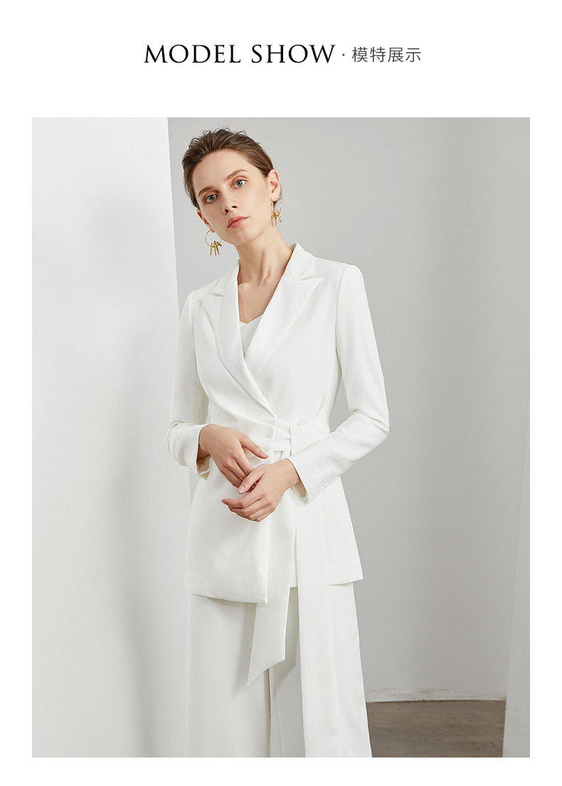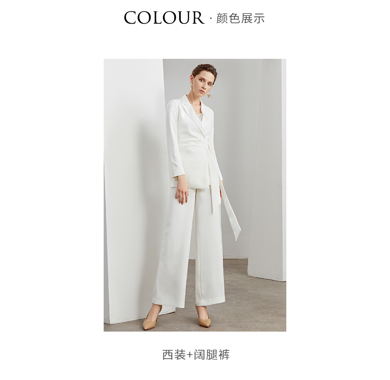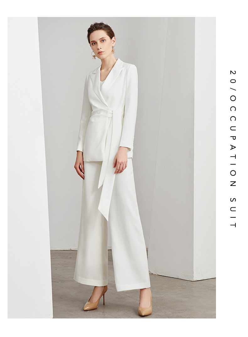 时尚白色西服套裤女气质系带西装气质主持人上镜装ol韩版职业正装