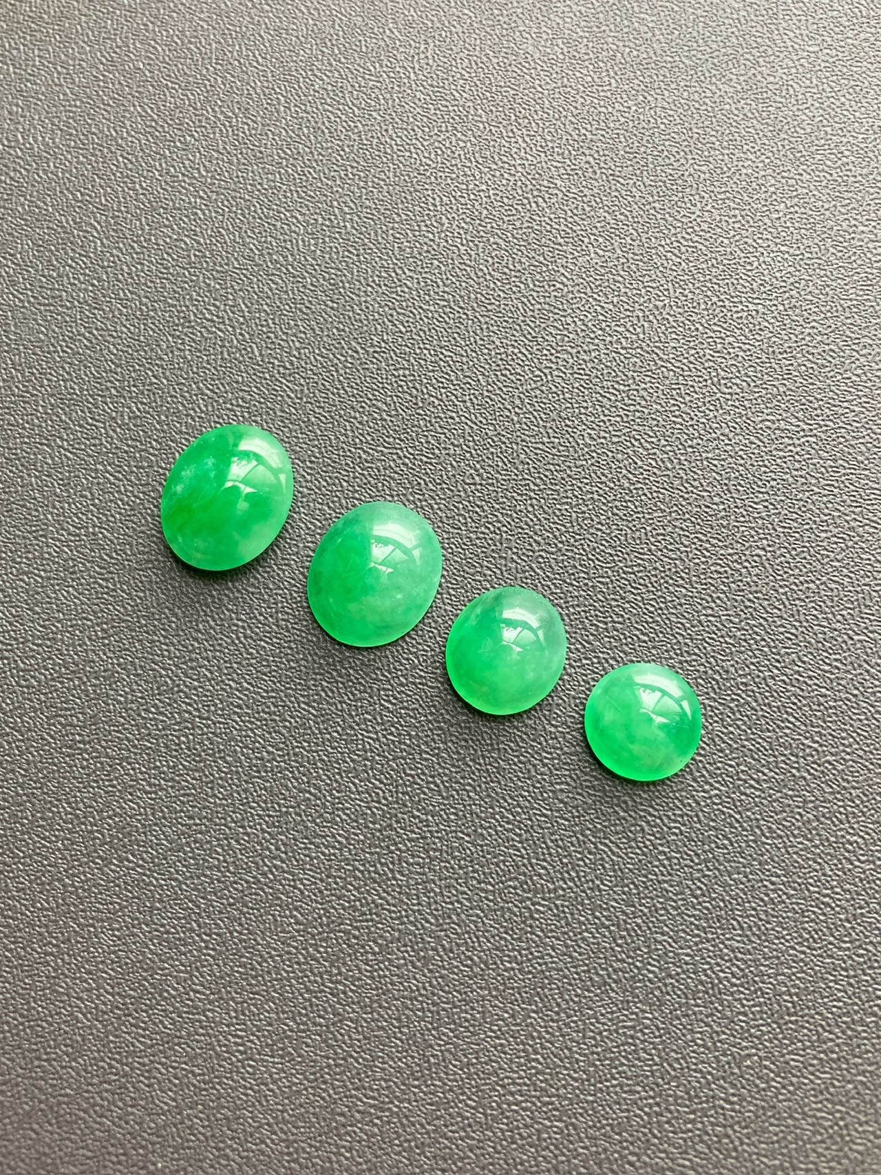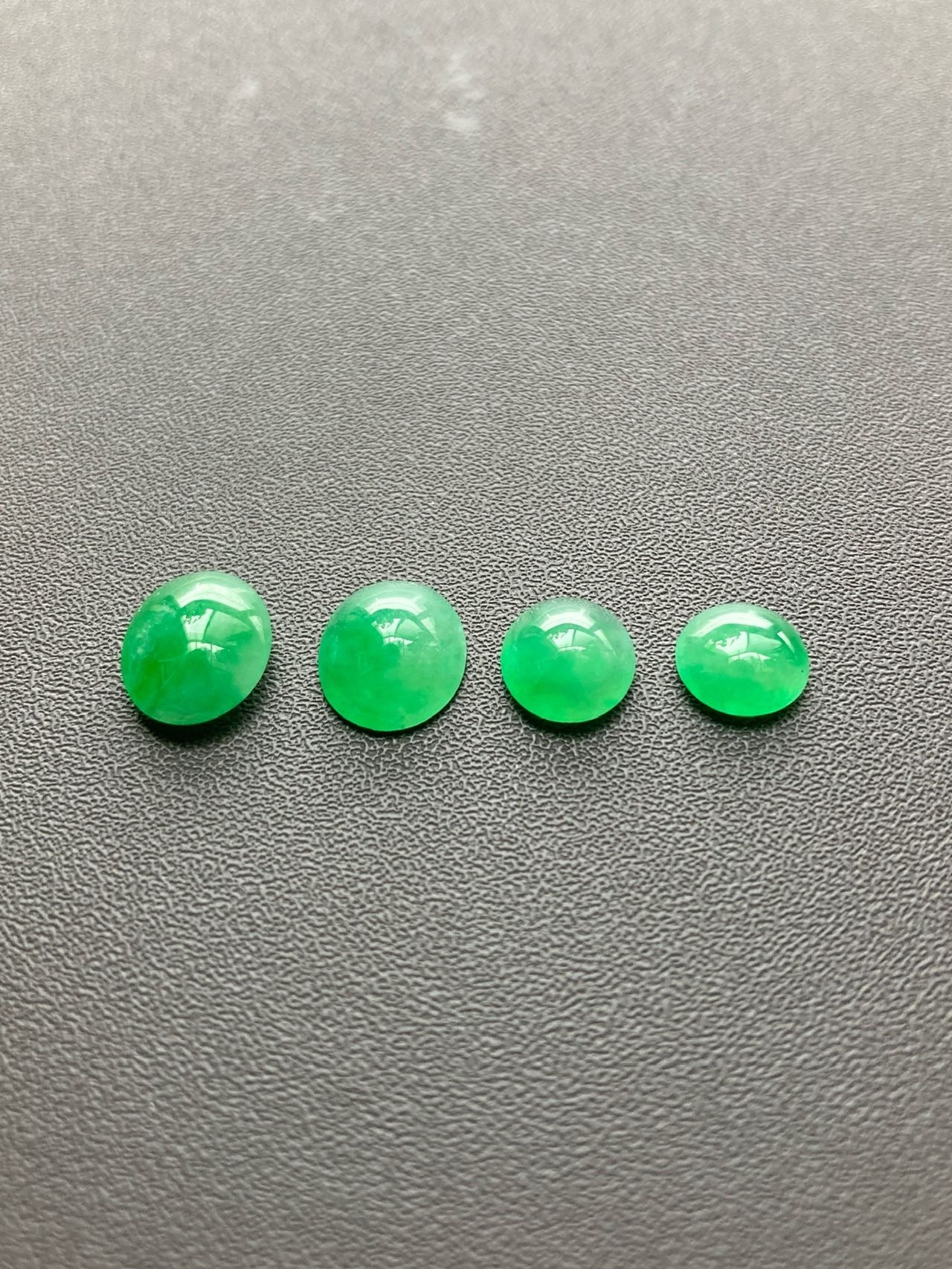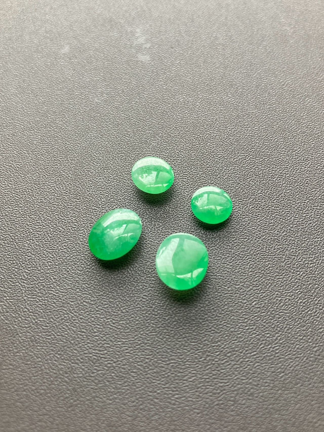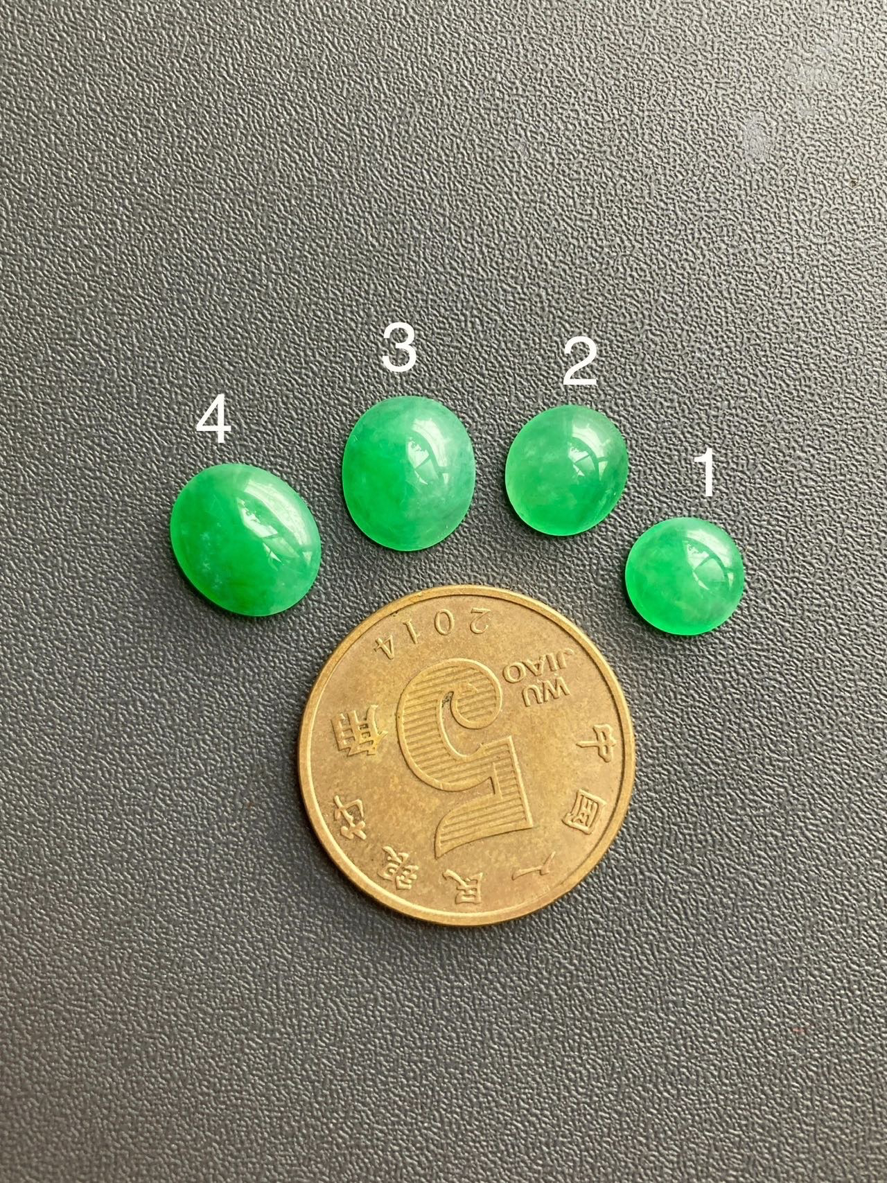 小四价位起上车一波冰种阳绿翡翠蛋面,缅甸料,种水晶莹剔透,正阳绿,在缅甸翡翠价格飞天的年代这机会不多了,更何况蛋面种色如此之漂亮,定制戒指吊坠都是美美哒,2号边缘有点石纹,影响不大,尺寸1号7.2×7.2×2.5mm,2号8.3×7.4×3.2mm,3号9.7×8.3×3.5mm