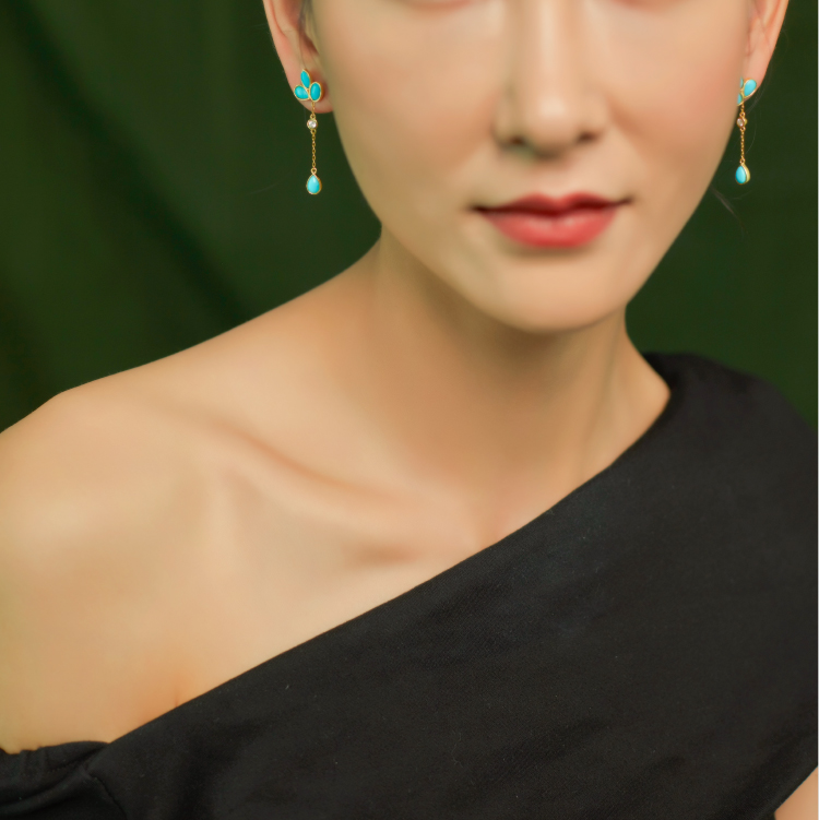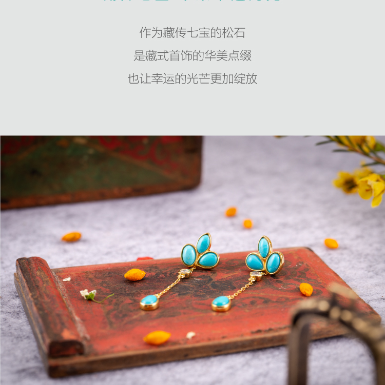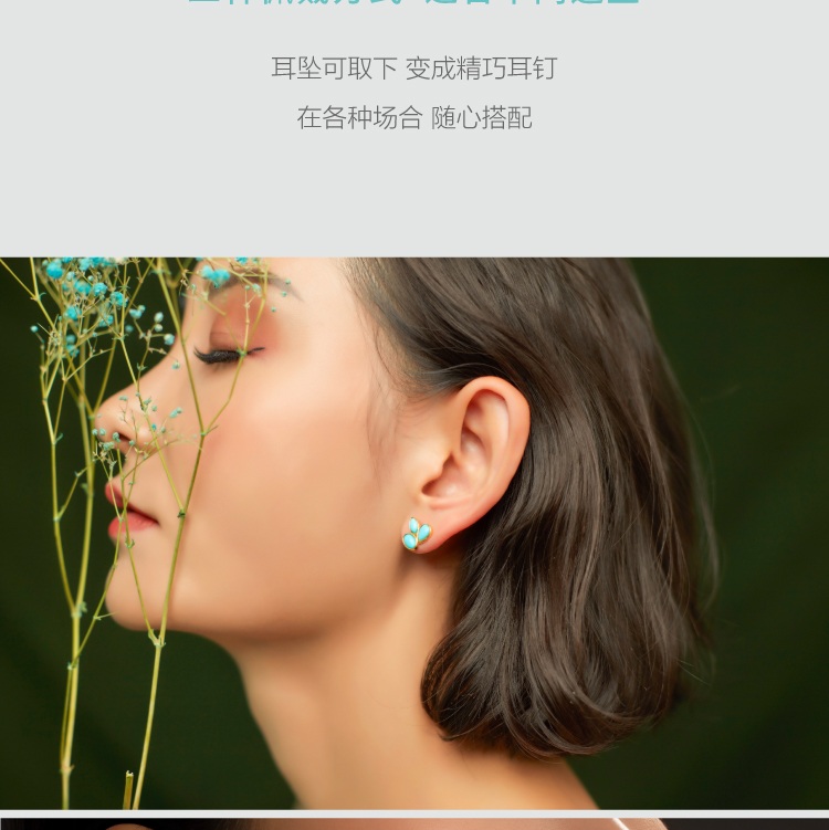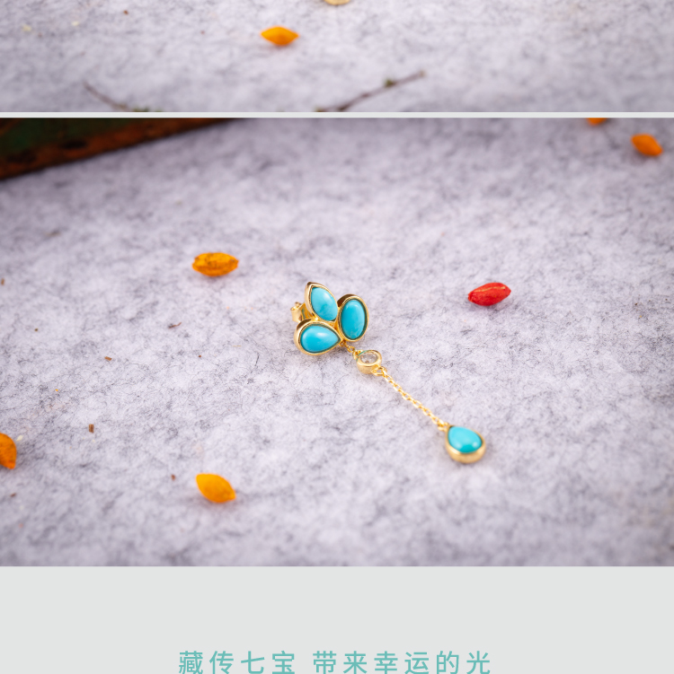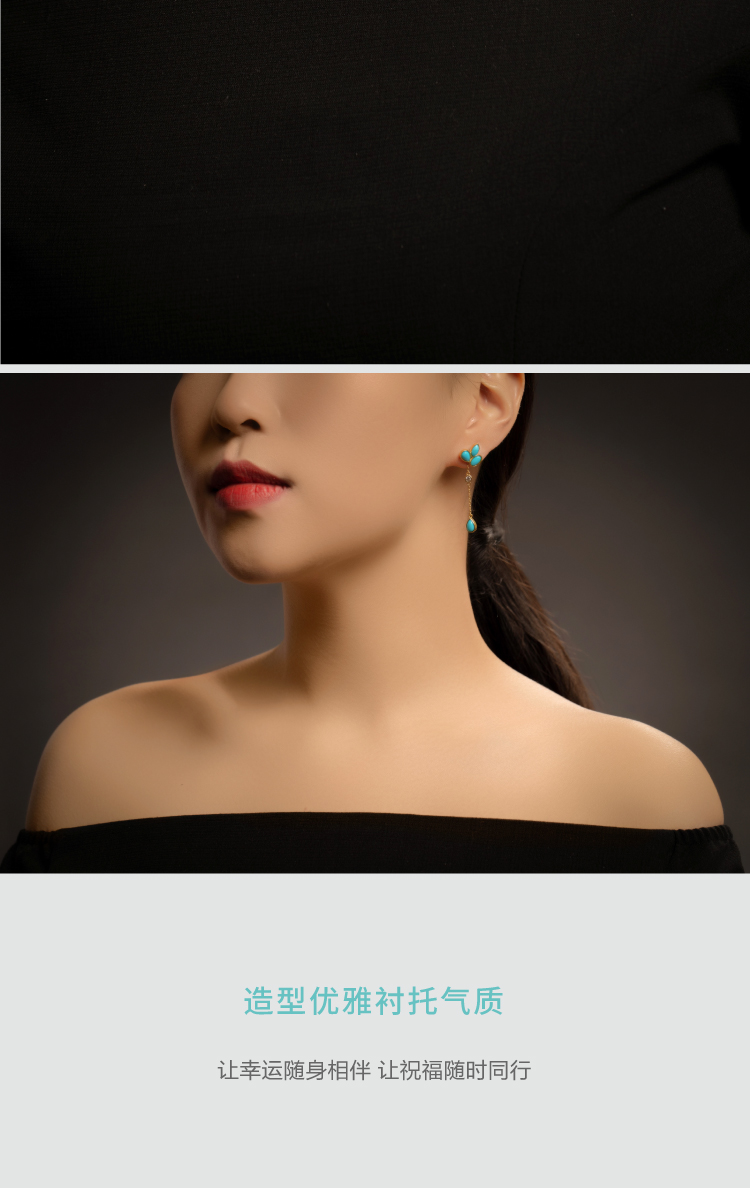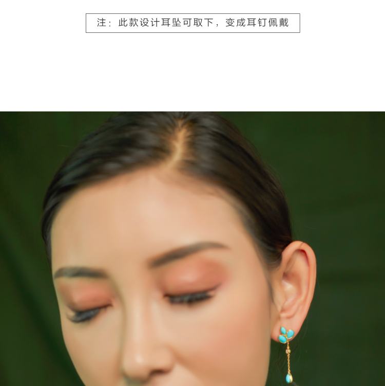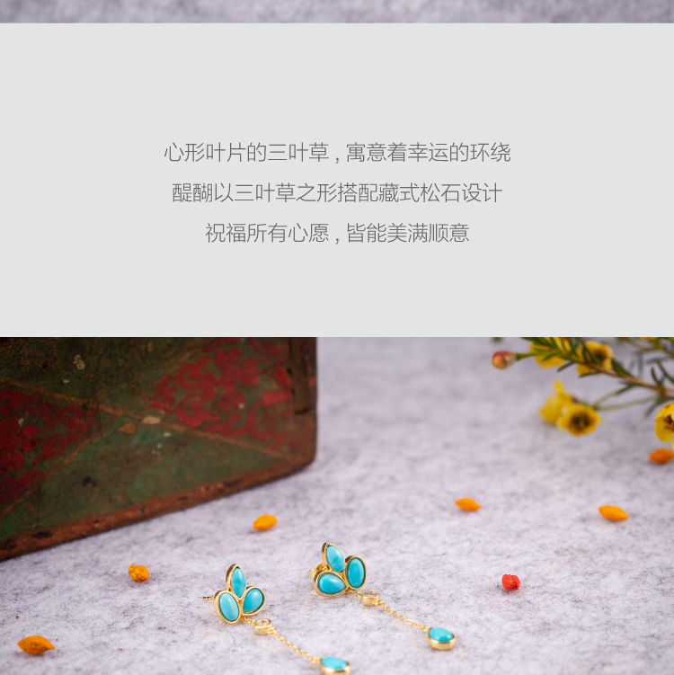 醍醐 原矿高瓷蓝松石 三叶草设计 幸运 耳饰 耳坠 耳钉 两用