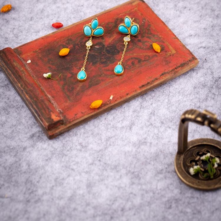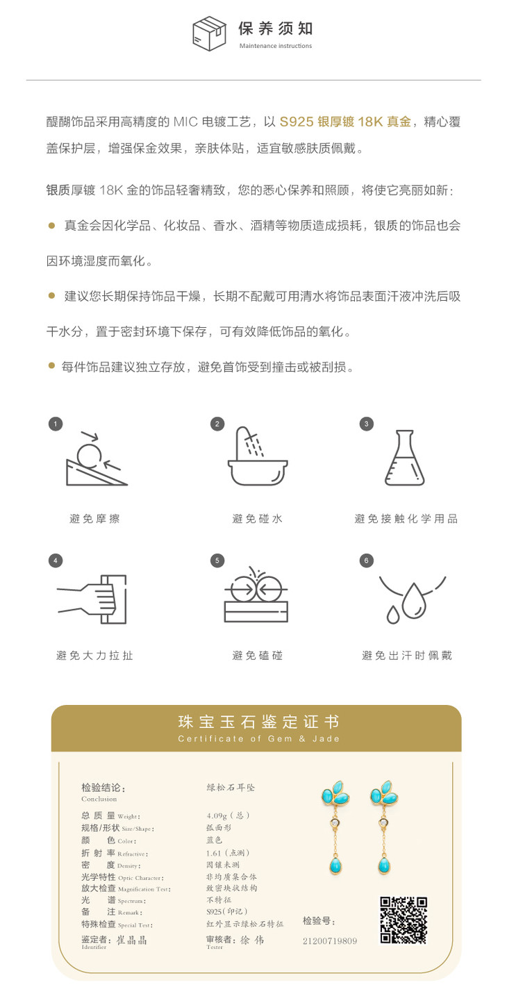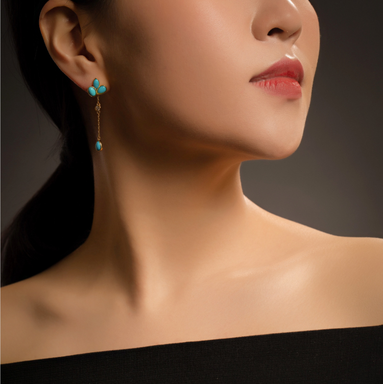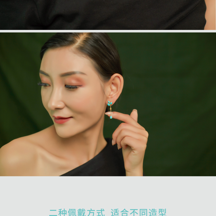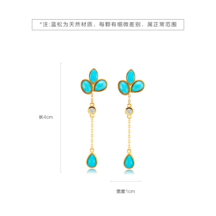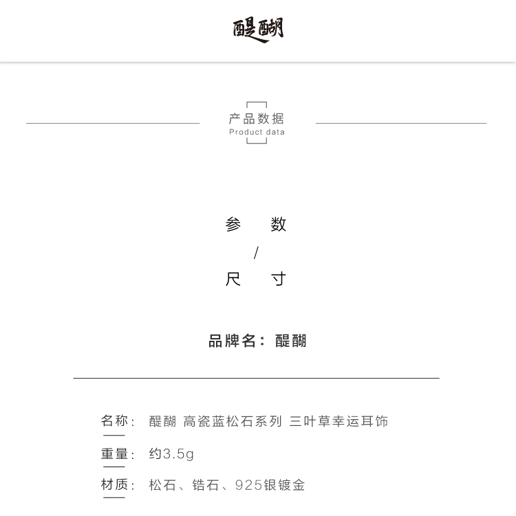 醍醐 原矿高瓷蓝松石 三叶草设计 幸运 耳饰 耳坠 耳钉 两用