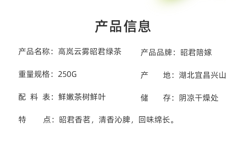 【宜昌助农馆】昭君碧玉 高岚云雾绿茶 250g