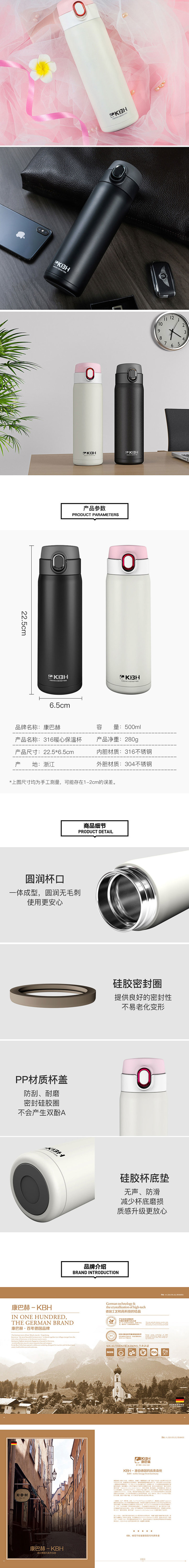 康巴赫316暖心保温杯便携水杯大容量男女保温壶