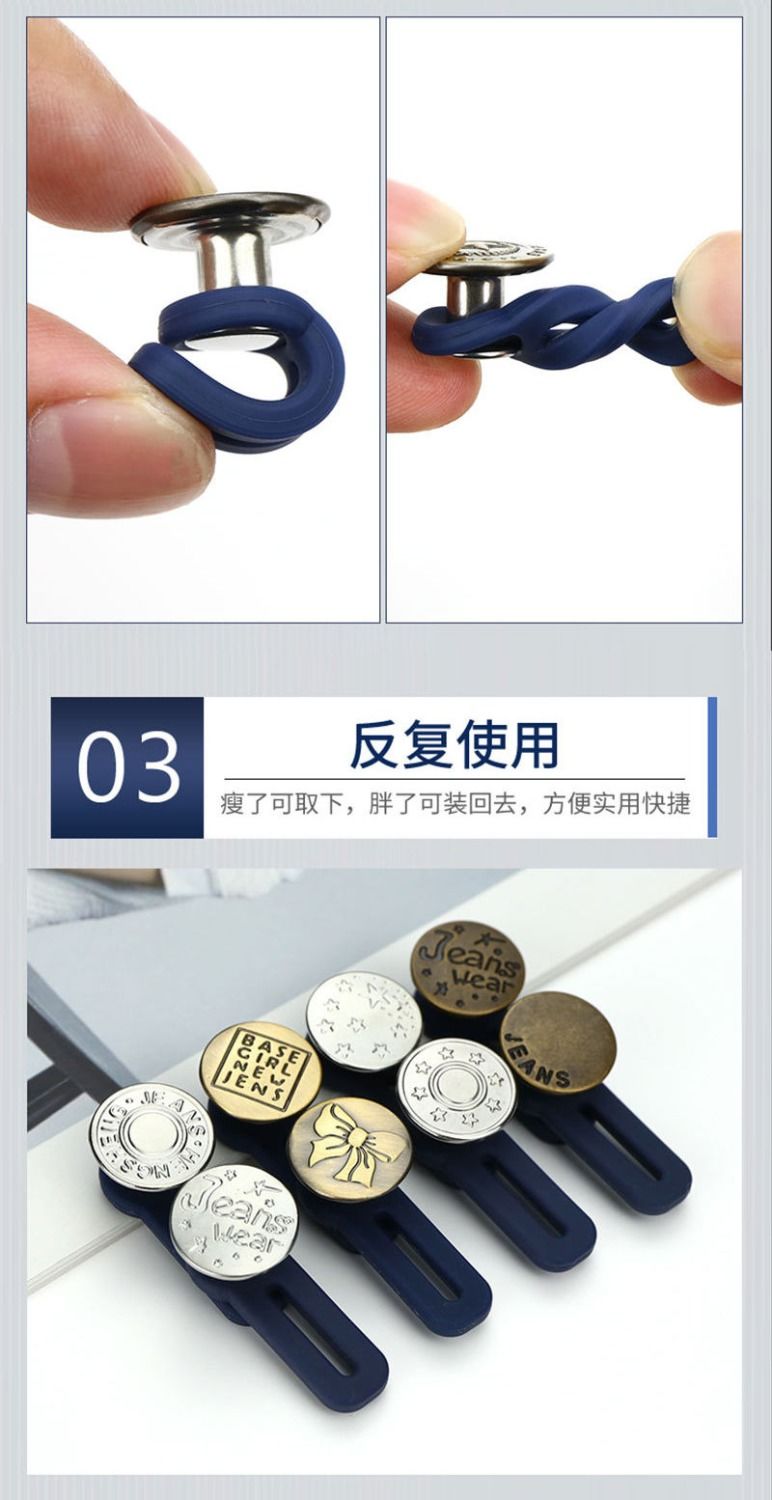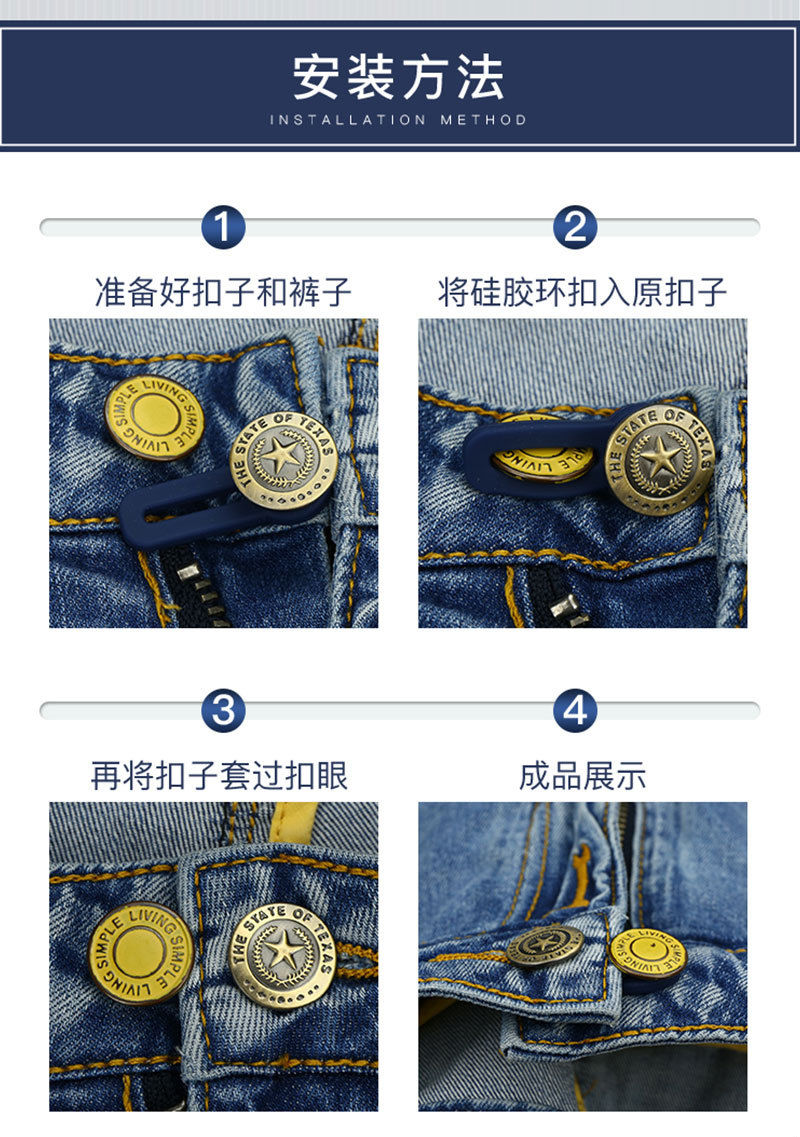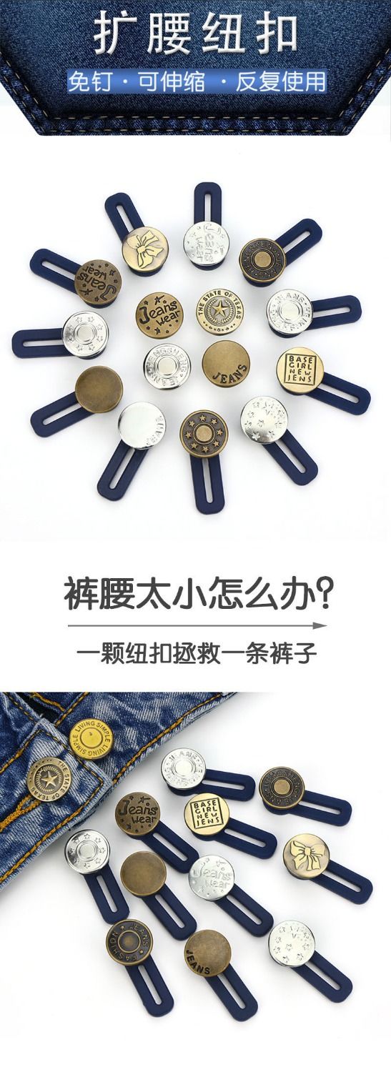 调节扣腰围大小 免缝牛仔裤扩腰纽扣裤,