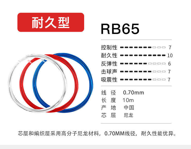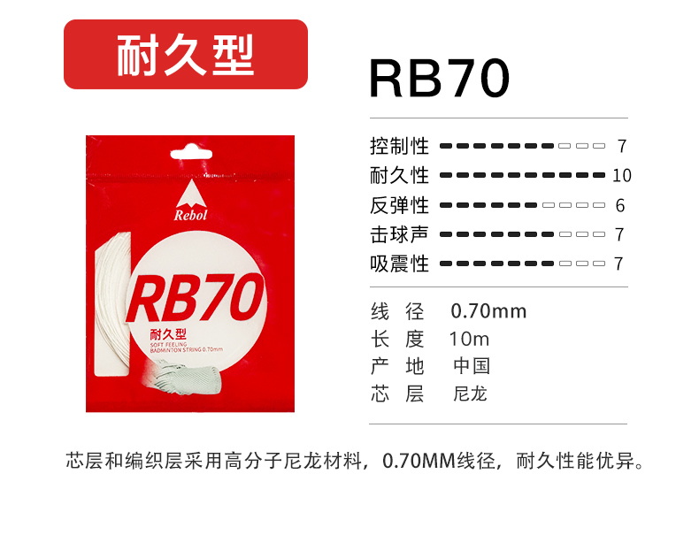 [颜色随机不指定,单根线无包装袋]锐彪Rebol耐打羽线0.70mm线径高弹耐打羽毛球线RB65 RB70