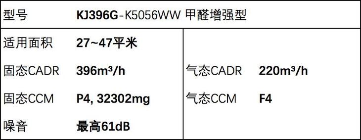 这款适合中等空间 ( 27~47平方米 ),甲醛增强型,不但固态CADR达到396m³/h,气态CADR也达到了220m³/h。