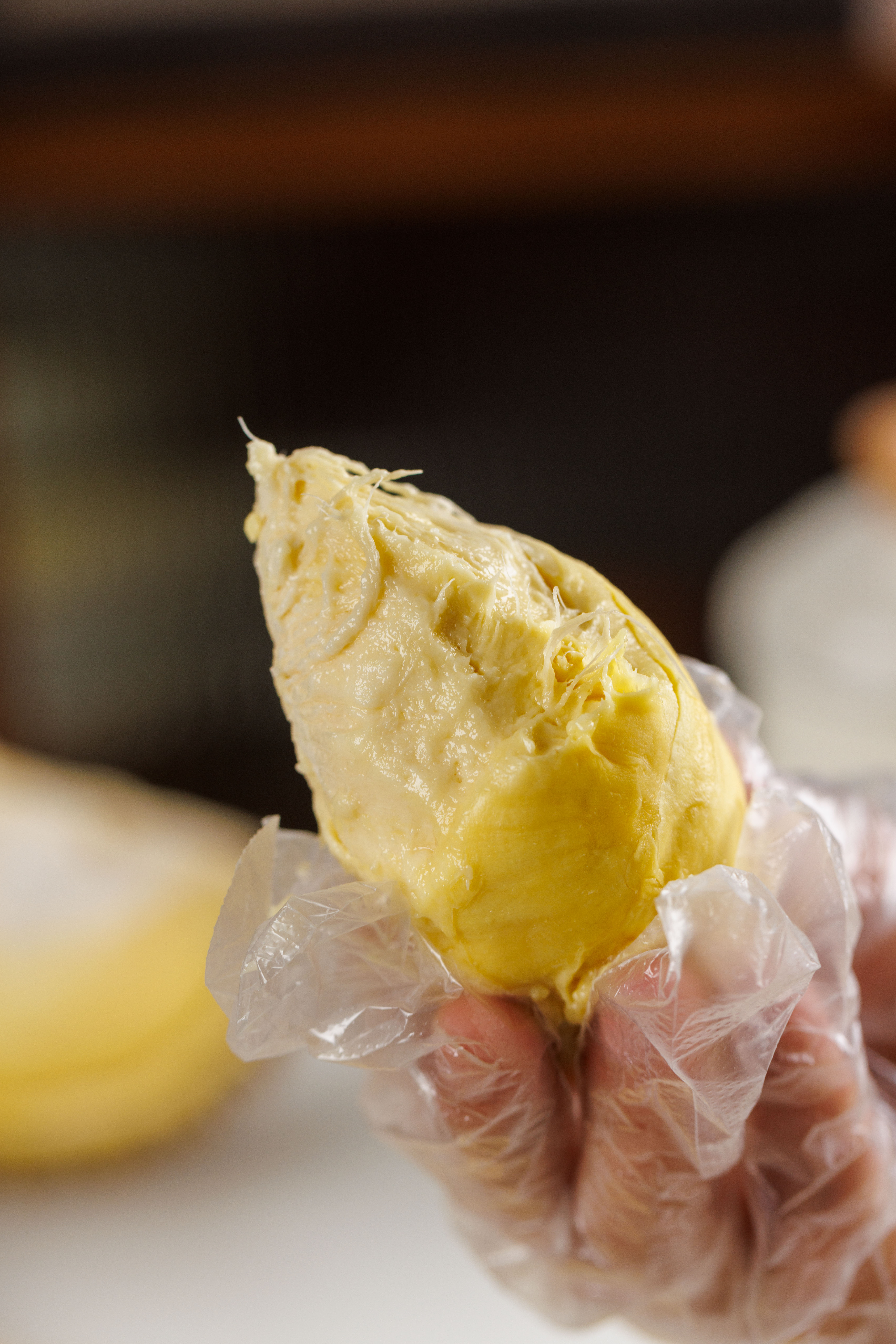 泰国空运老树金枕头榴莲,它坚硬外表下隐藏着柔软的心,果肉金黄,绵软如丝,让人一尝难忘!