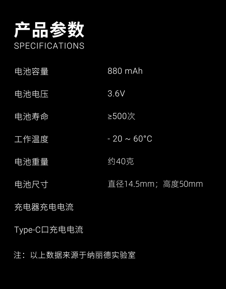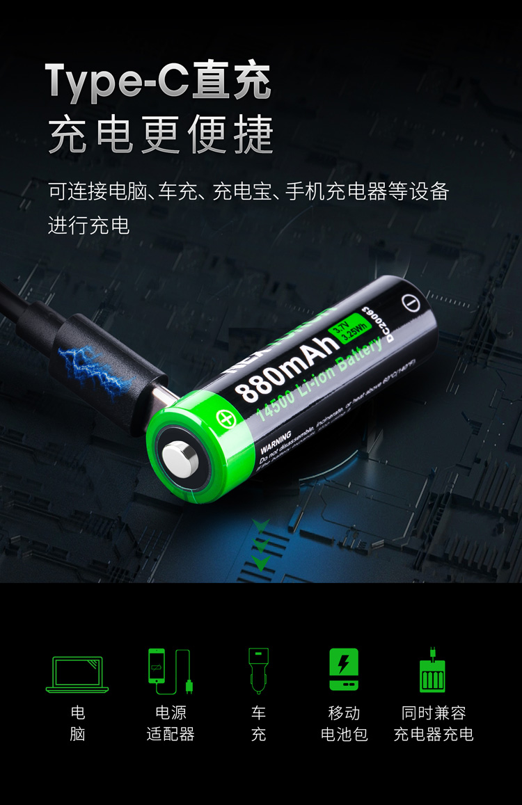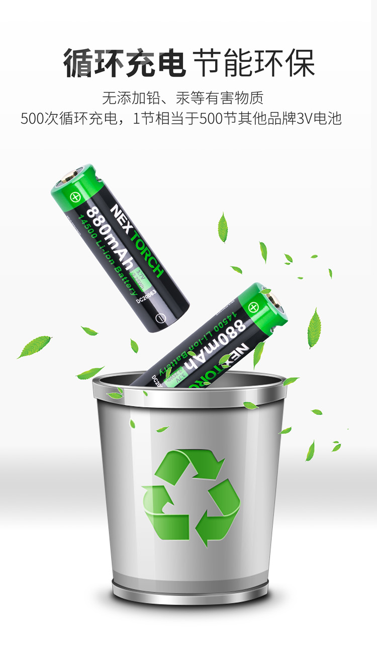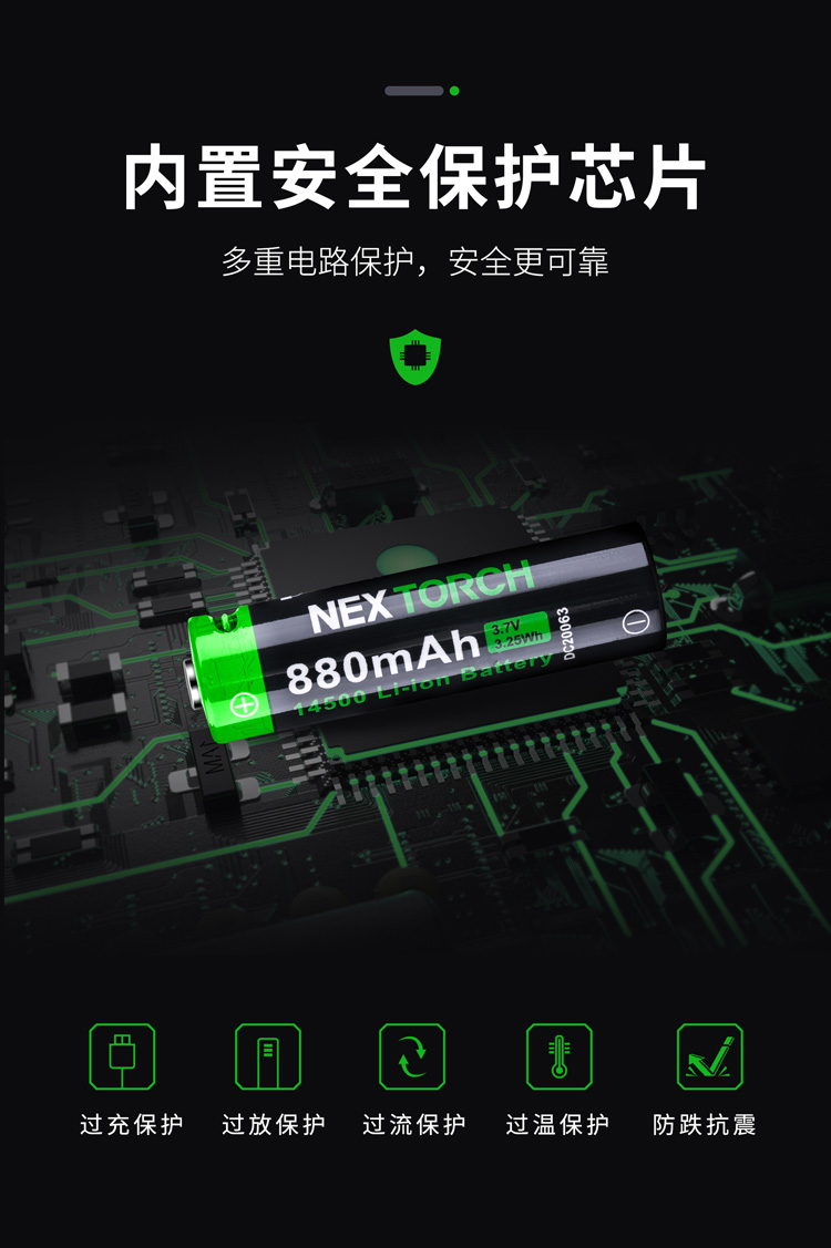 纳丽德(NEXTORCH) 14500直充电池防过充过放过流过温880mAh大容量锂离子电池