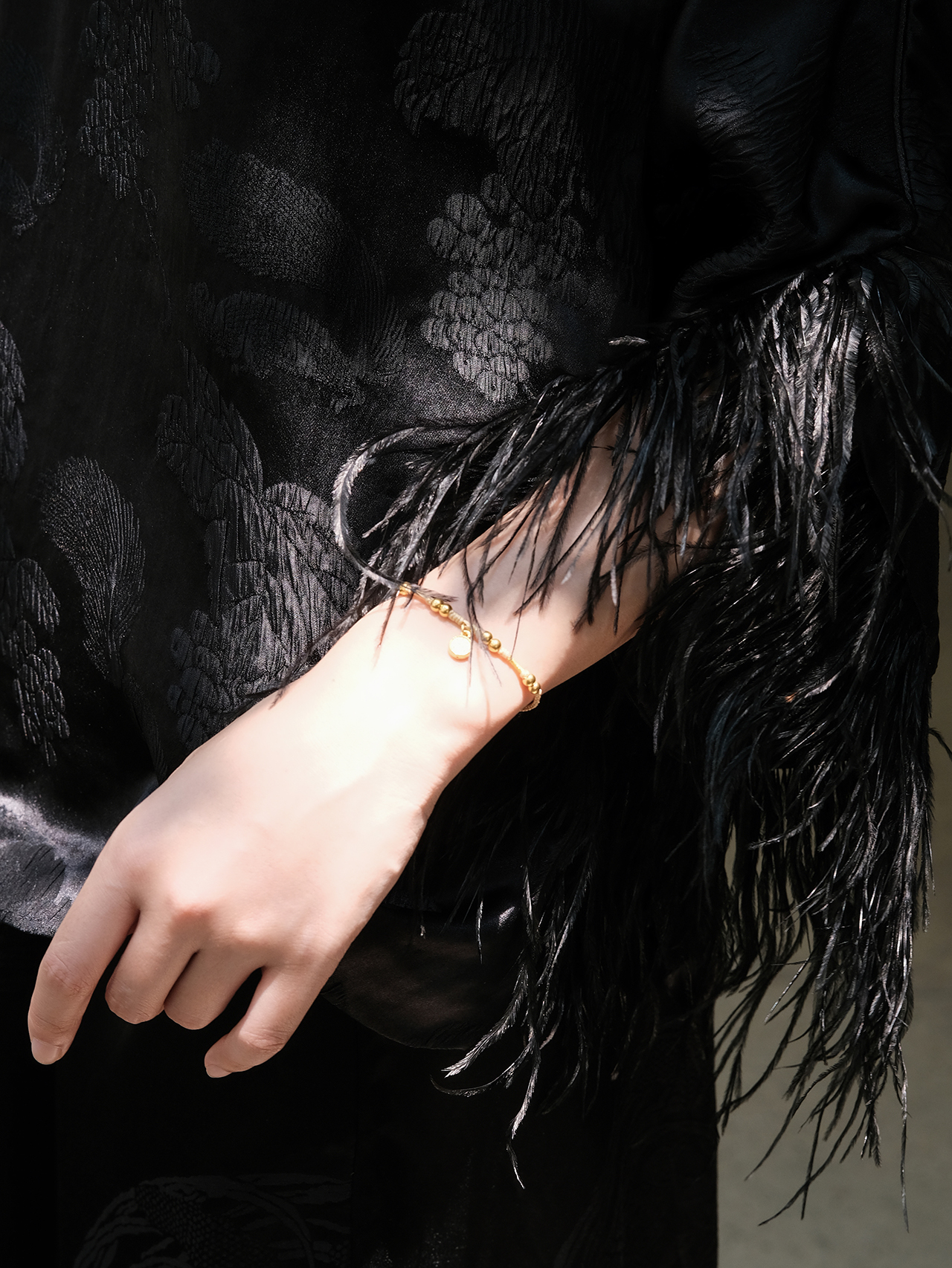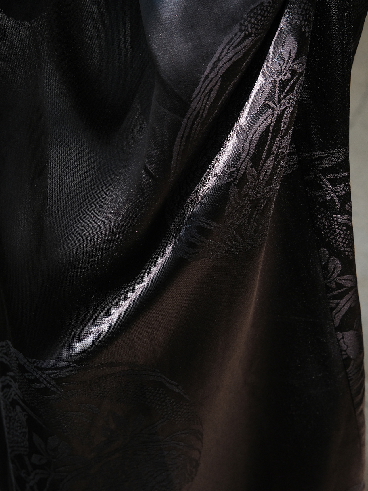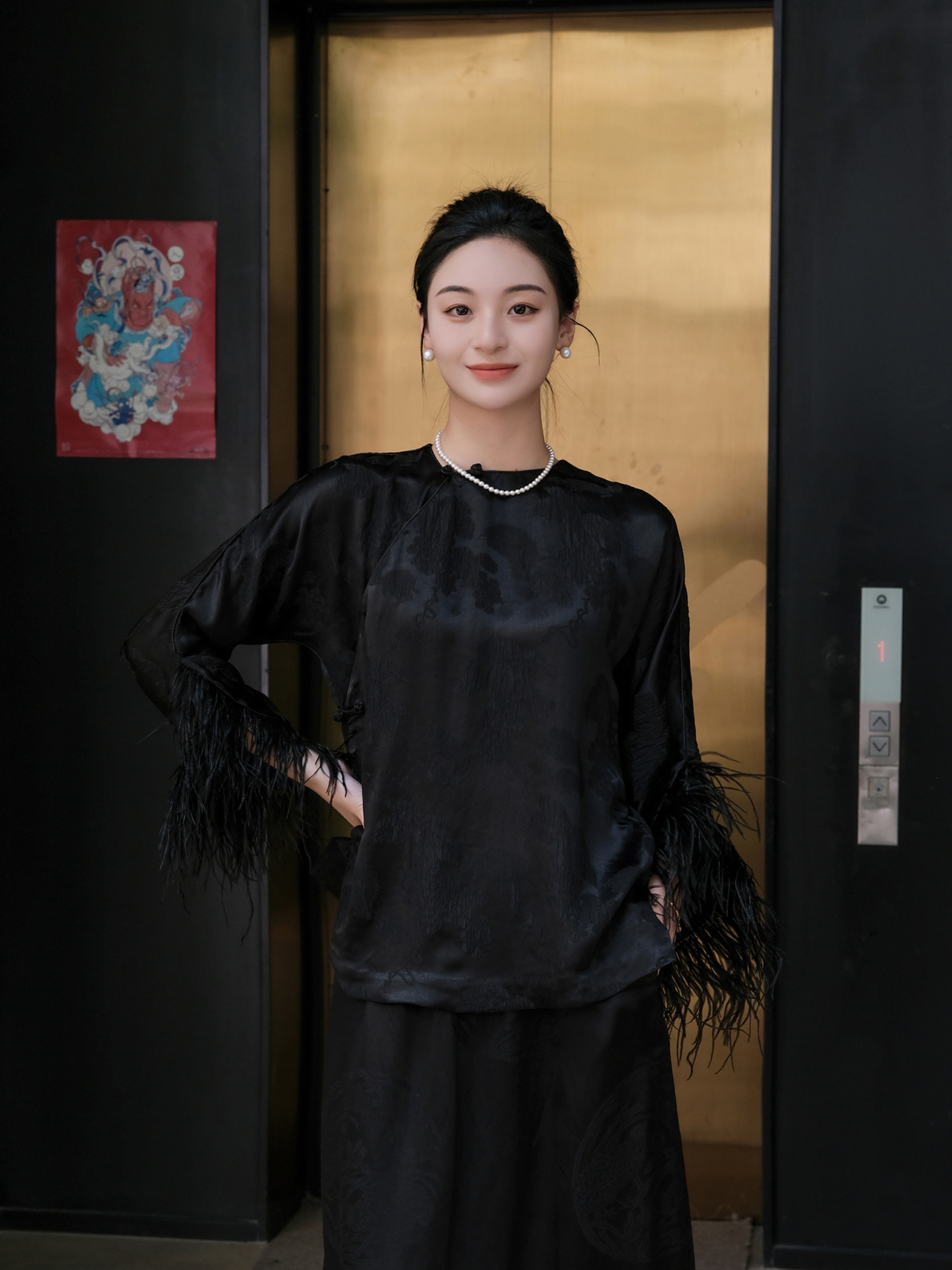盛唐牡丹 |黑色冠乐绉斜襟上衣