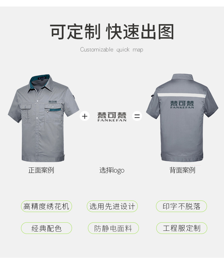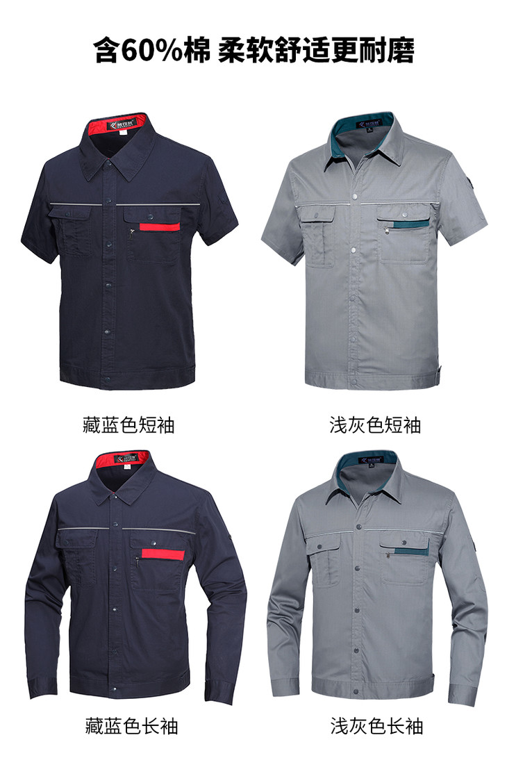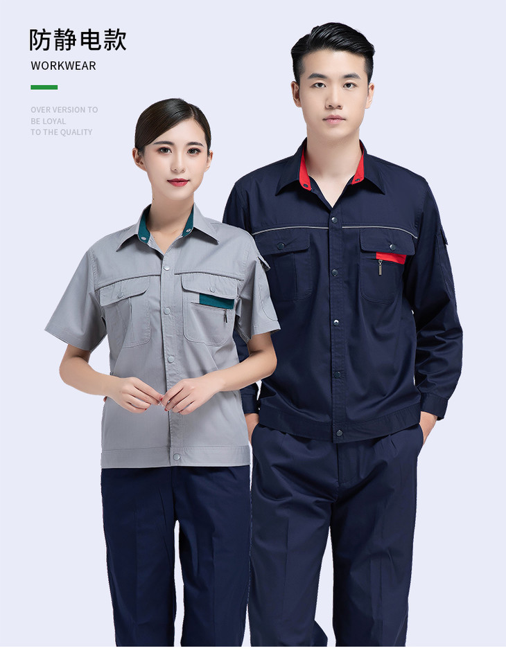 梵可梵夏季工作服上衣男薄款短袖防静电加油站电工服长袖厂服定制