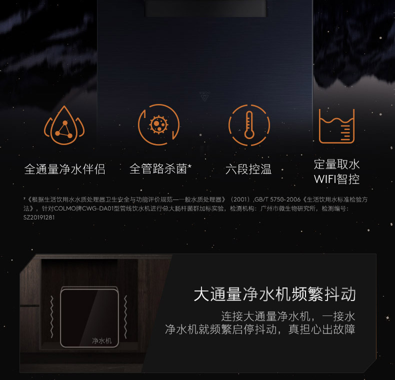 COLMO 管线机 家用净水器伴侣 冷热即饮 全管路杀菌 六段控温 智能触控 壁挂式直饮饮水机CWG-DA01