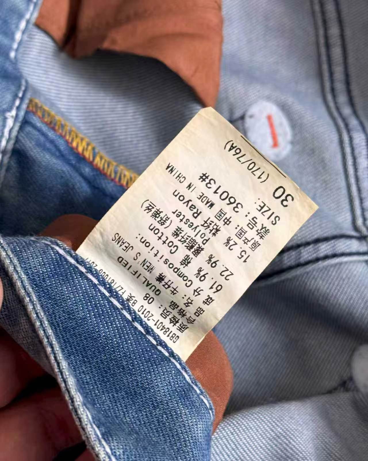 水洗牛仔裤 !浅蓝色水洗牛仔,jing典复古的休闲色调,呈现细腻的做旧质感。修身剪裁,线条利落流畅,日常穿着兼顾舒适与型! 采用高品质牛仔面料,纹理清晰自然,耐磨实穿,展现随性而不失jing致的穿搭态度。30到38码适配多种体型,满足不同男士的着装需求。搭配简约背景与时尚杂志,诠释都市休闲场景,适合日常通勤、出行或轻商务场合,轻松穿出低调gao级感。