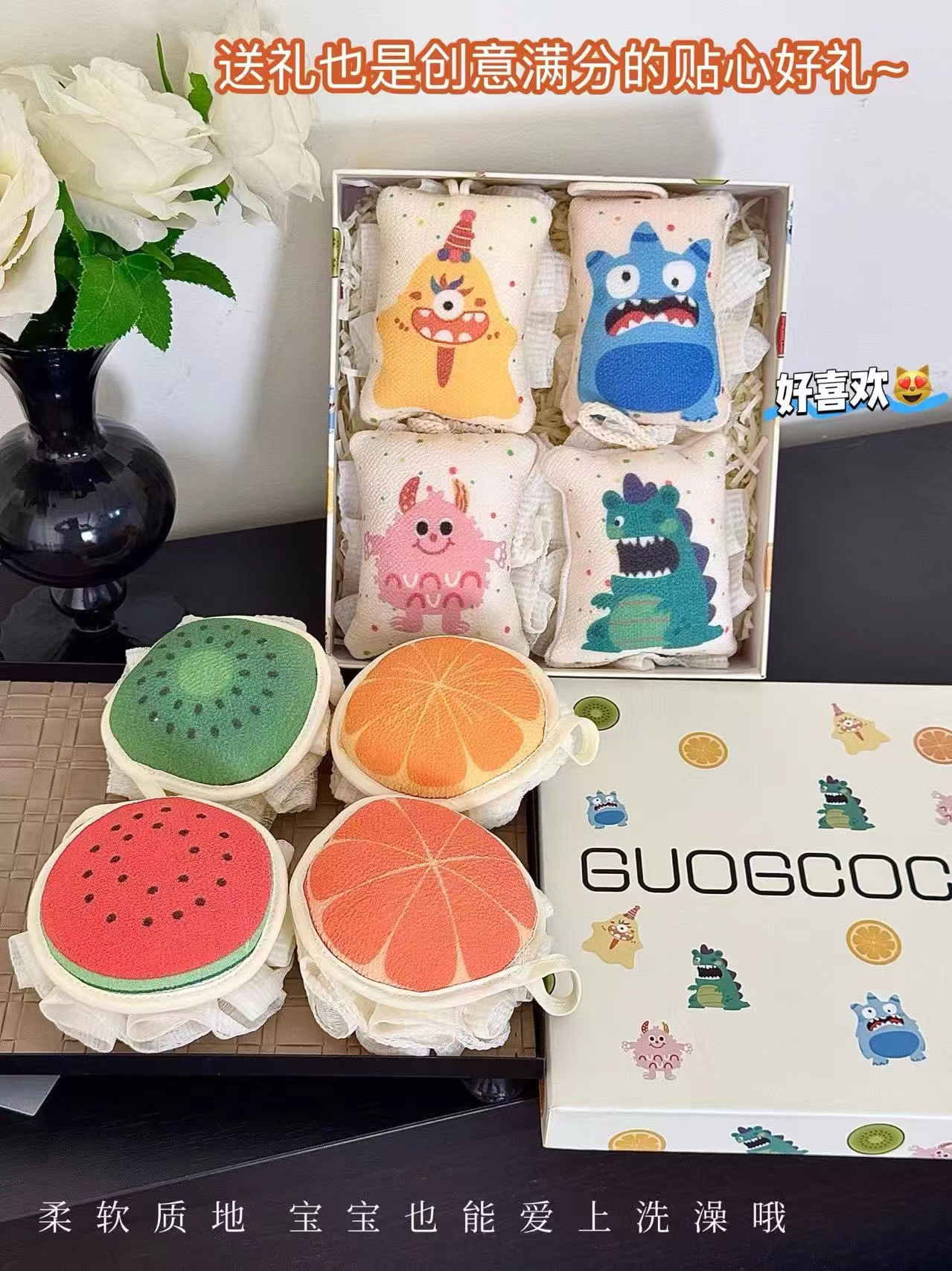 治愈系洗护礼盒来袭!解锁沐浴新体验不仅是清洁好物更是浴室里的治愈系小确幸植物纤维,无痛搓澡,挂钩设计搓澡不打滑,南北方通用用它洗澡,从视觉到使用感都充满活力让每次洗澡都像开启一场童趣治愈~不管是日常清洁还是当作礼物都是满分的选择~一面搓泥,一面打泡泡,非常好用