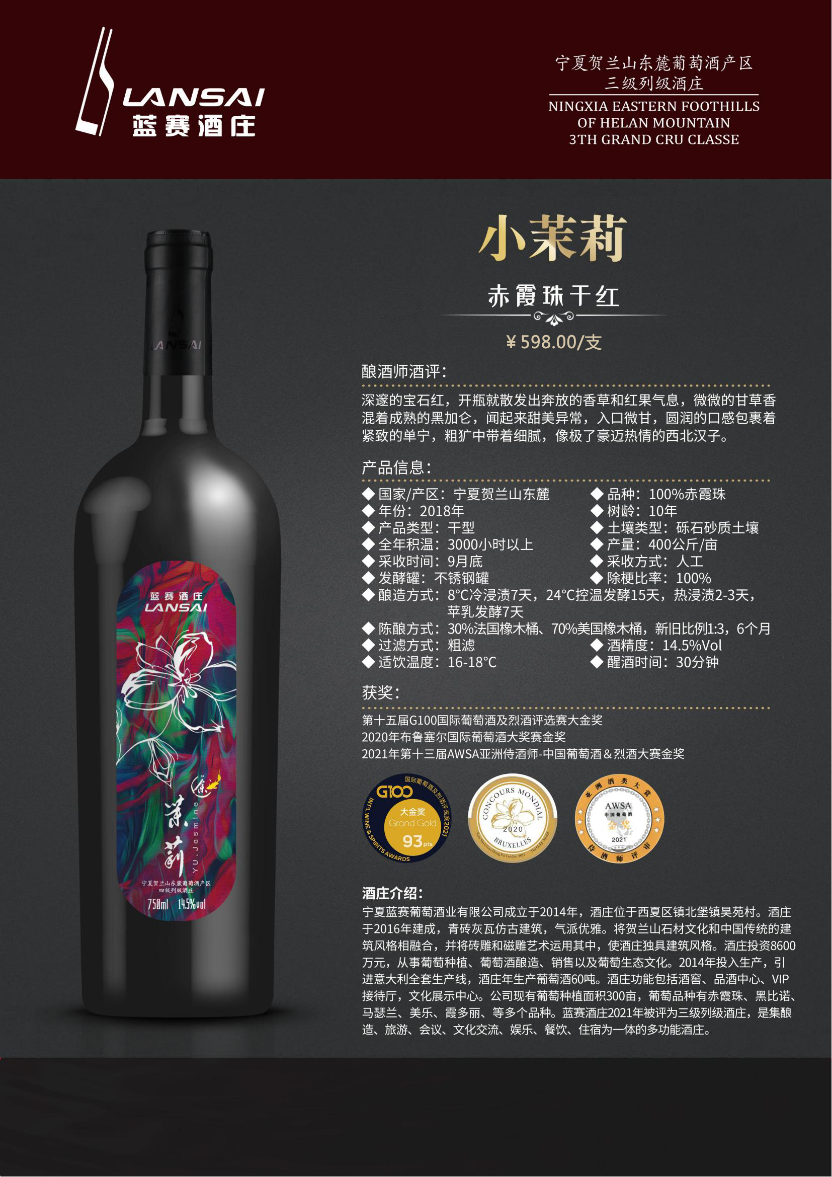 蓝赛酒庄茉莉赤霞珠红葡萄酒(2017)