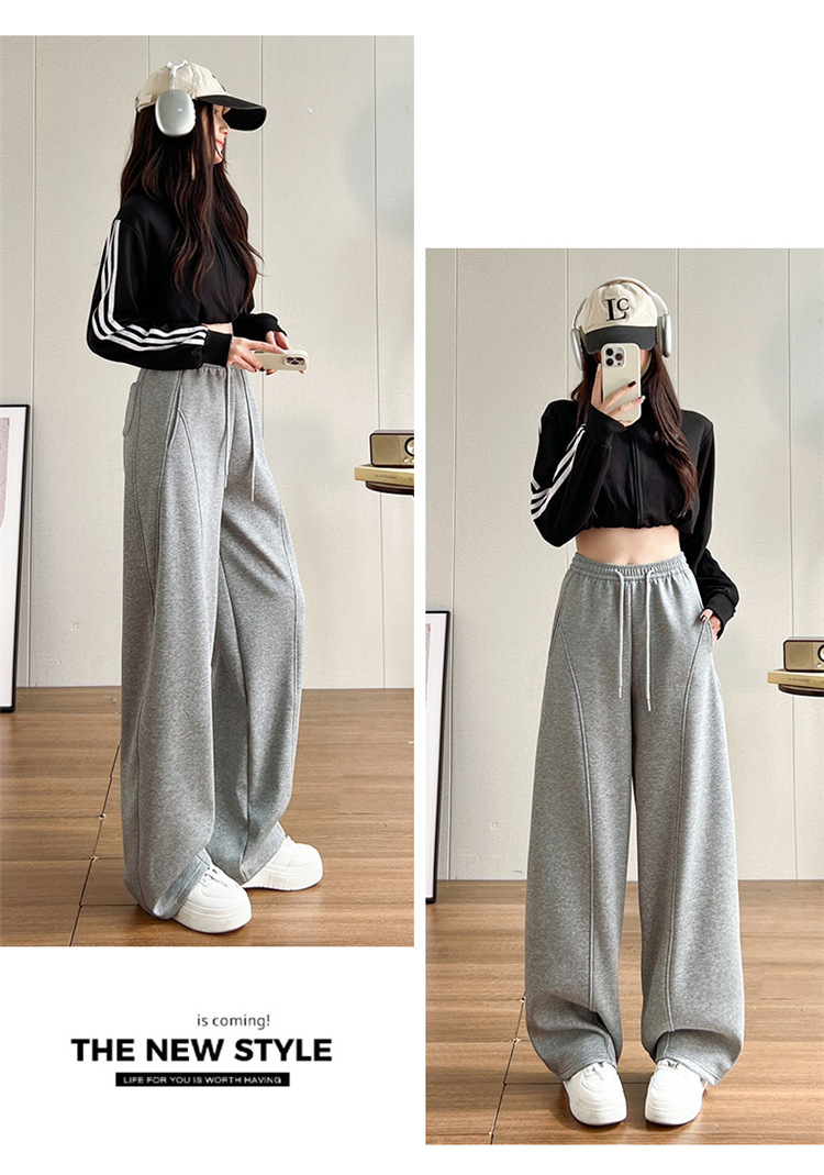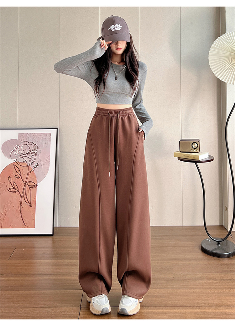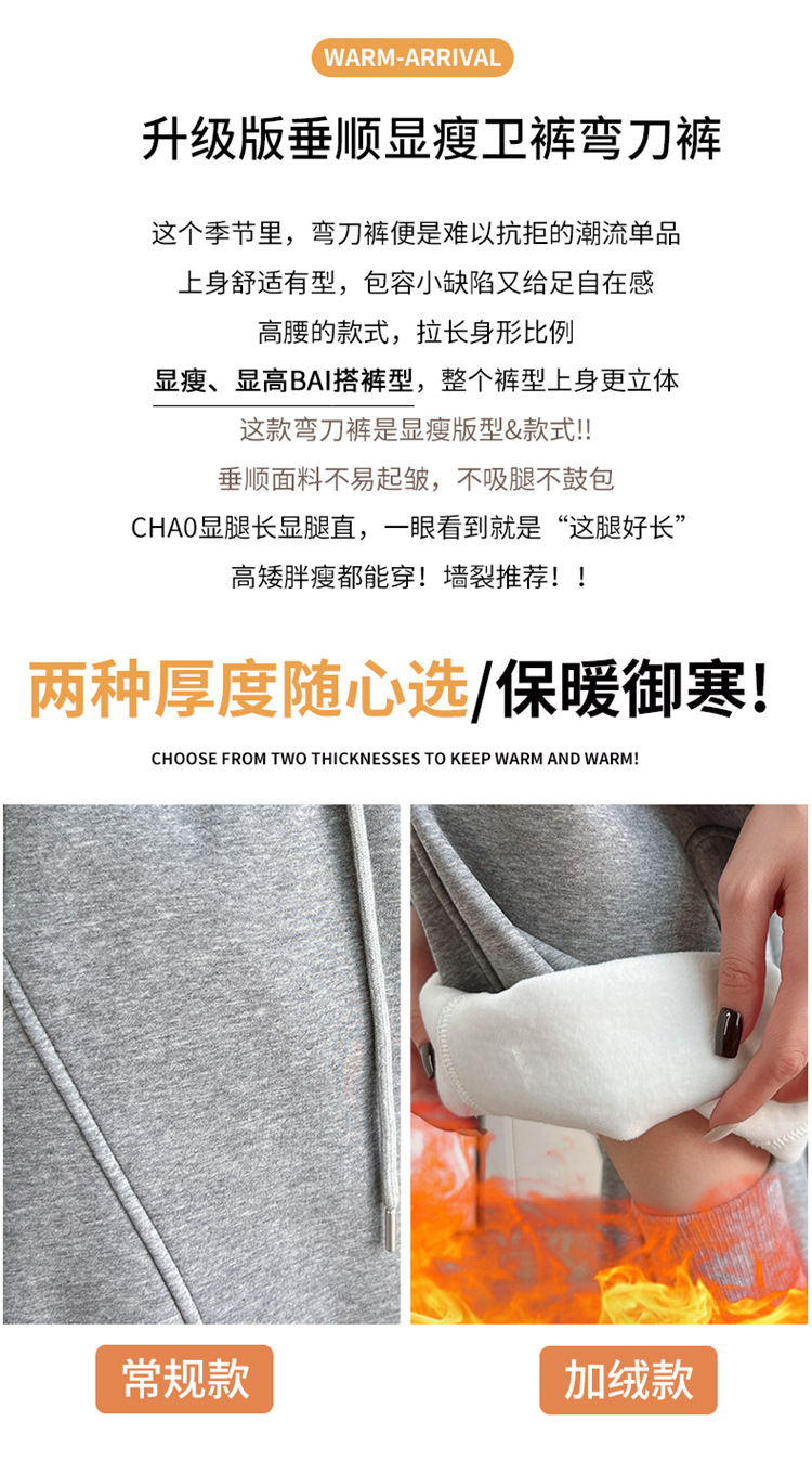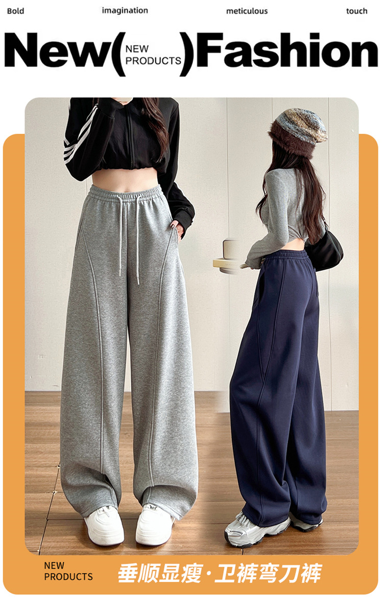 【视觉显高❗️秒变大长腿🔥高腰宽松弯刀裤】两种厚度随心选/保暖御寒,时尚百搭,显瘦显腿长!高腰垂感十足,高腰抽绳显瘦百搭休闲宽松裤子女L
