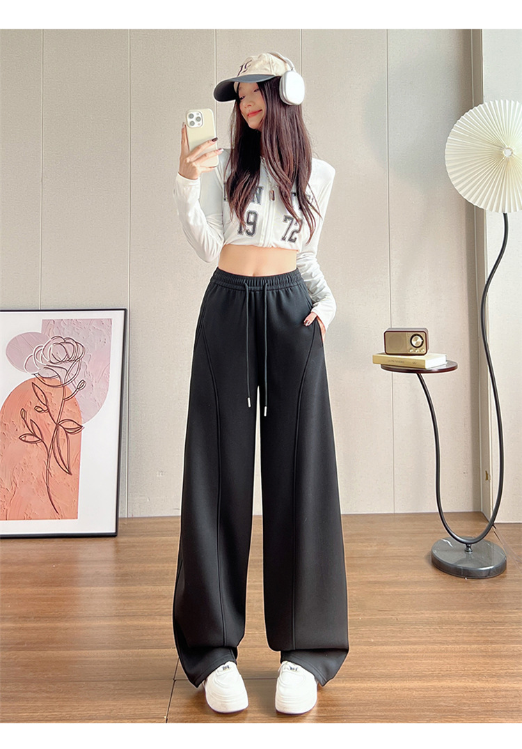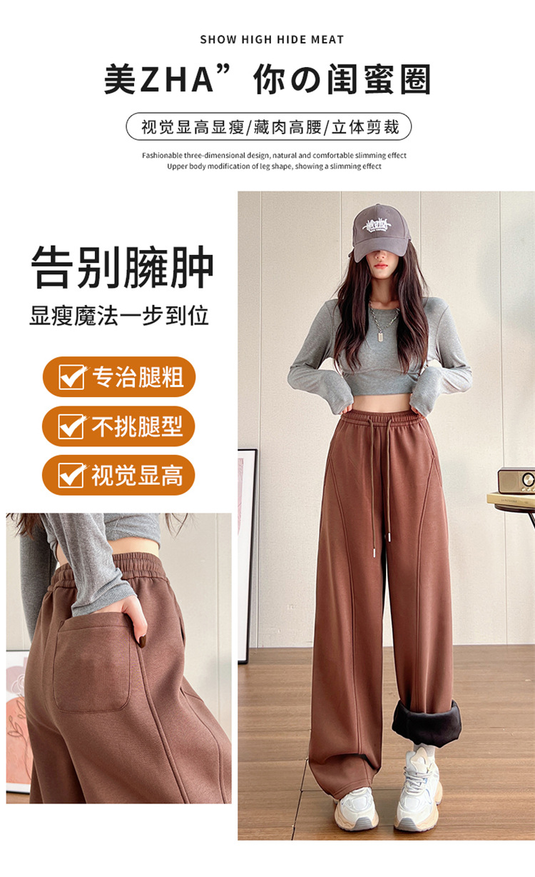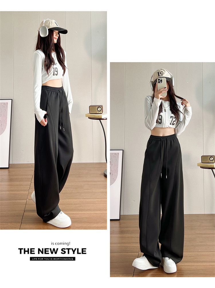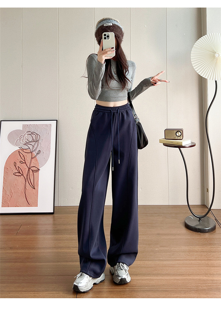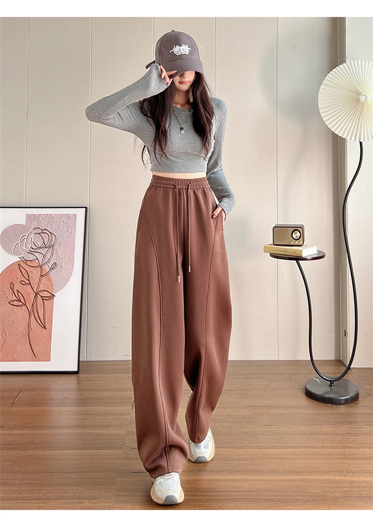 【视觉显高❗️秒变大长腿🔥高腰宽松弯刀裤】两种厚度随心选/保暖御寒,时尚百搭,显瘦显腿长!高腰垂感十足,高腰抽绳显瘦百搭休闲宽松裤子女L