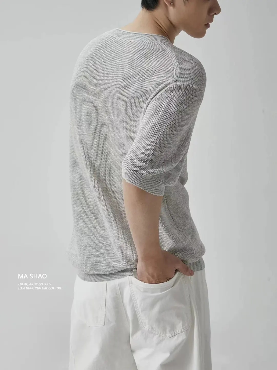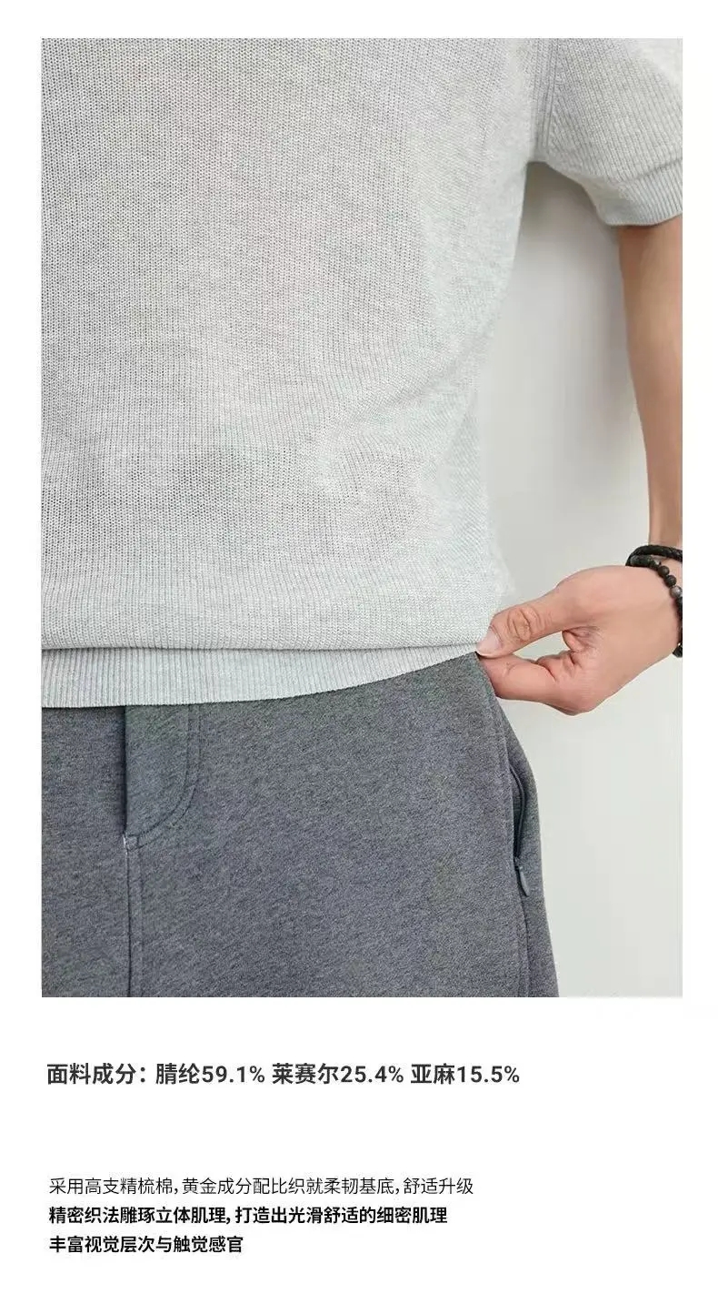 【lyyk-F88003】男子简约舒适亚麻针织短袖圆领T恤!!