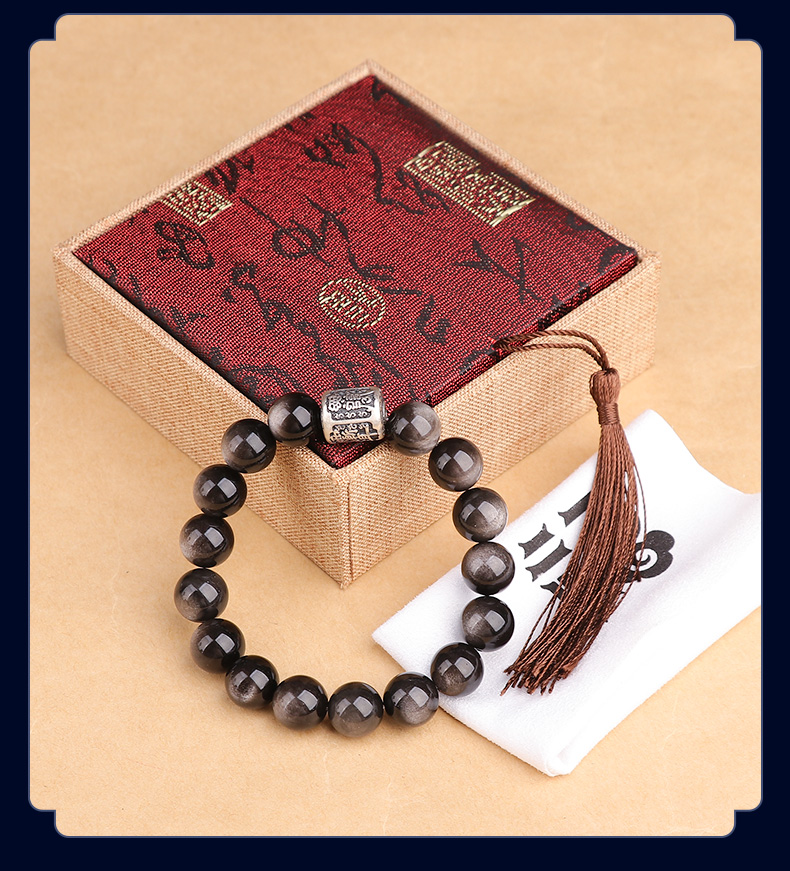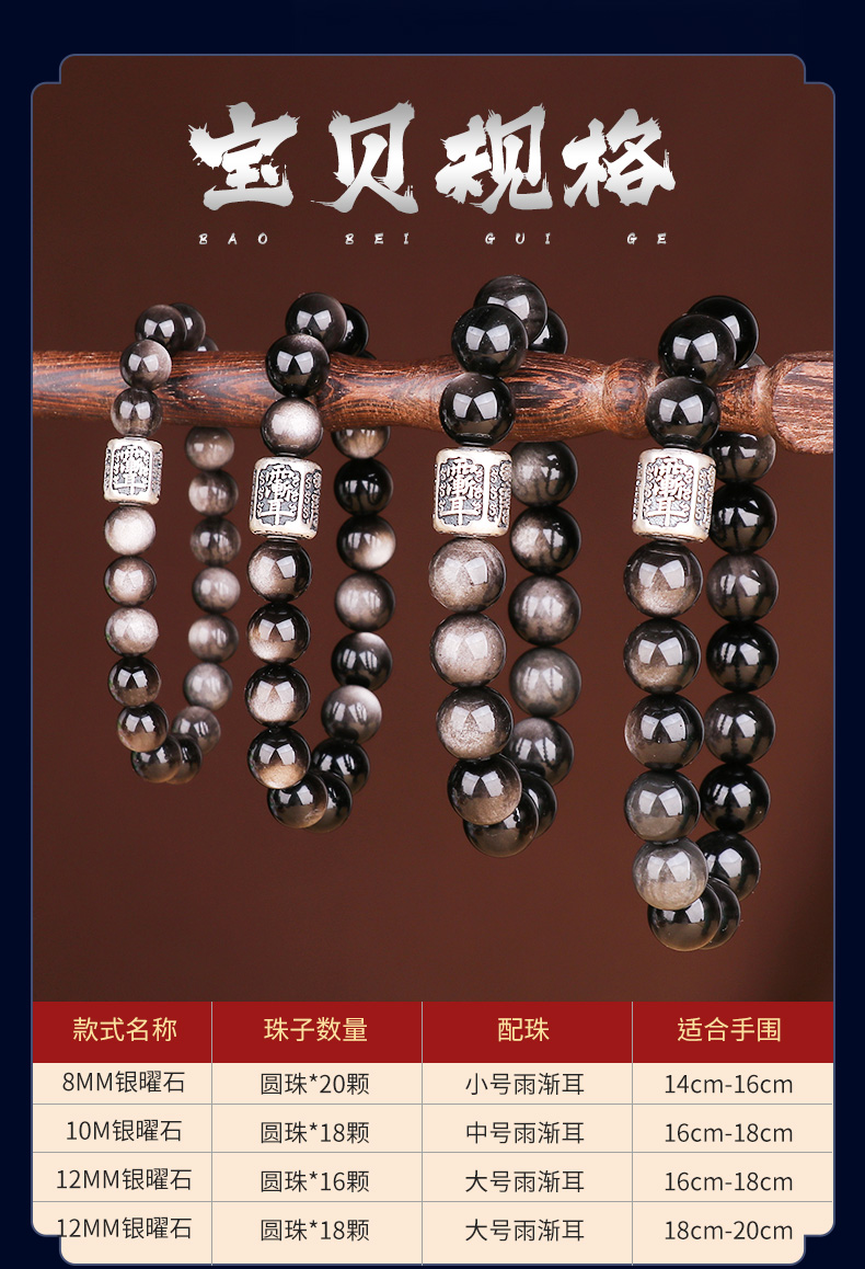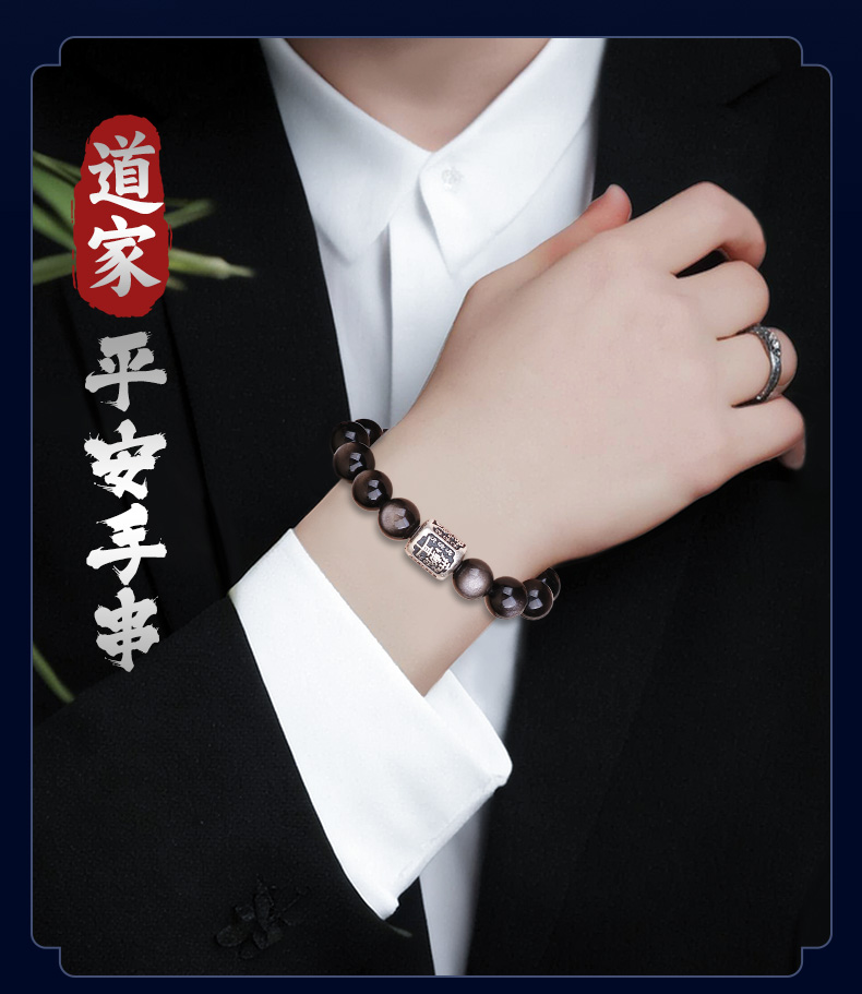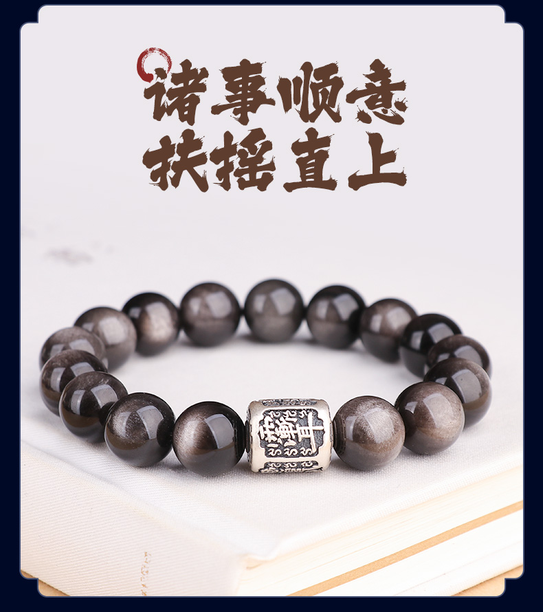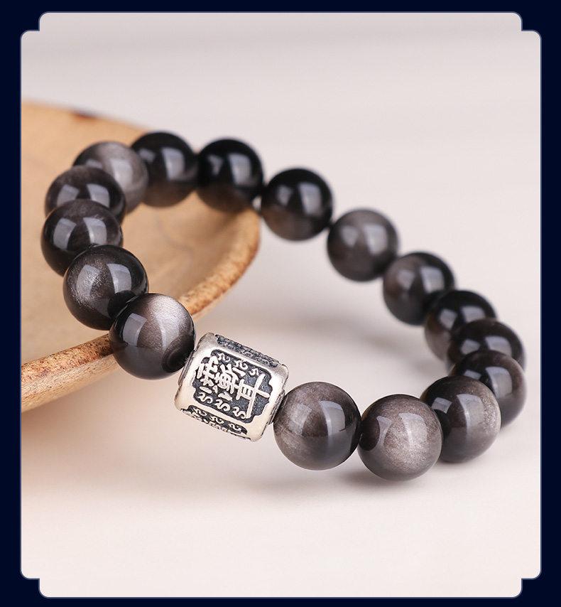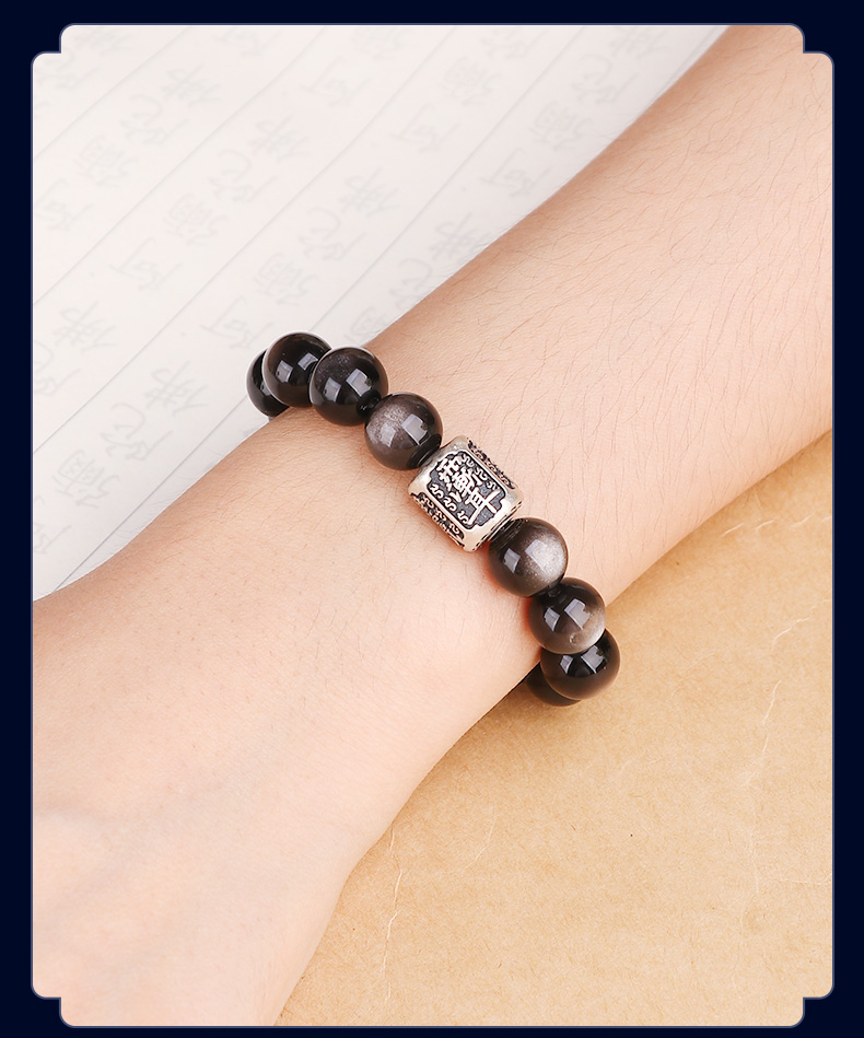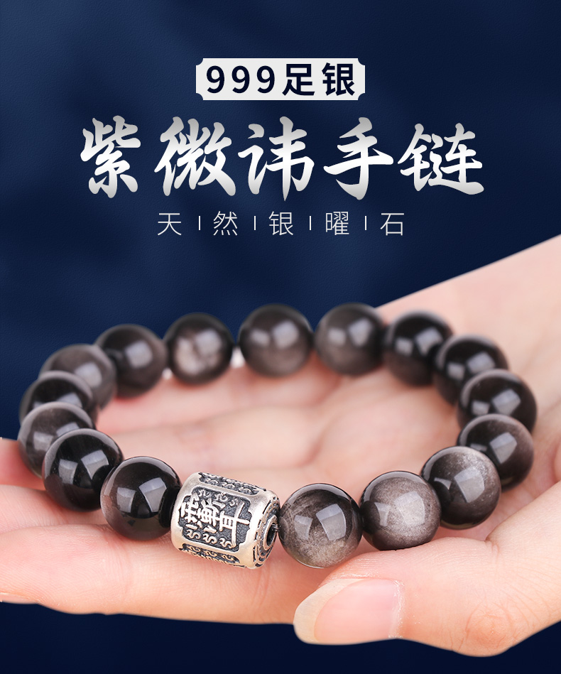 999足银紫微讳银曜石手链