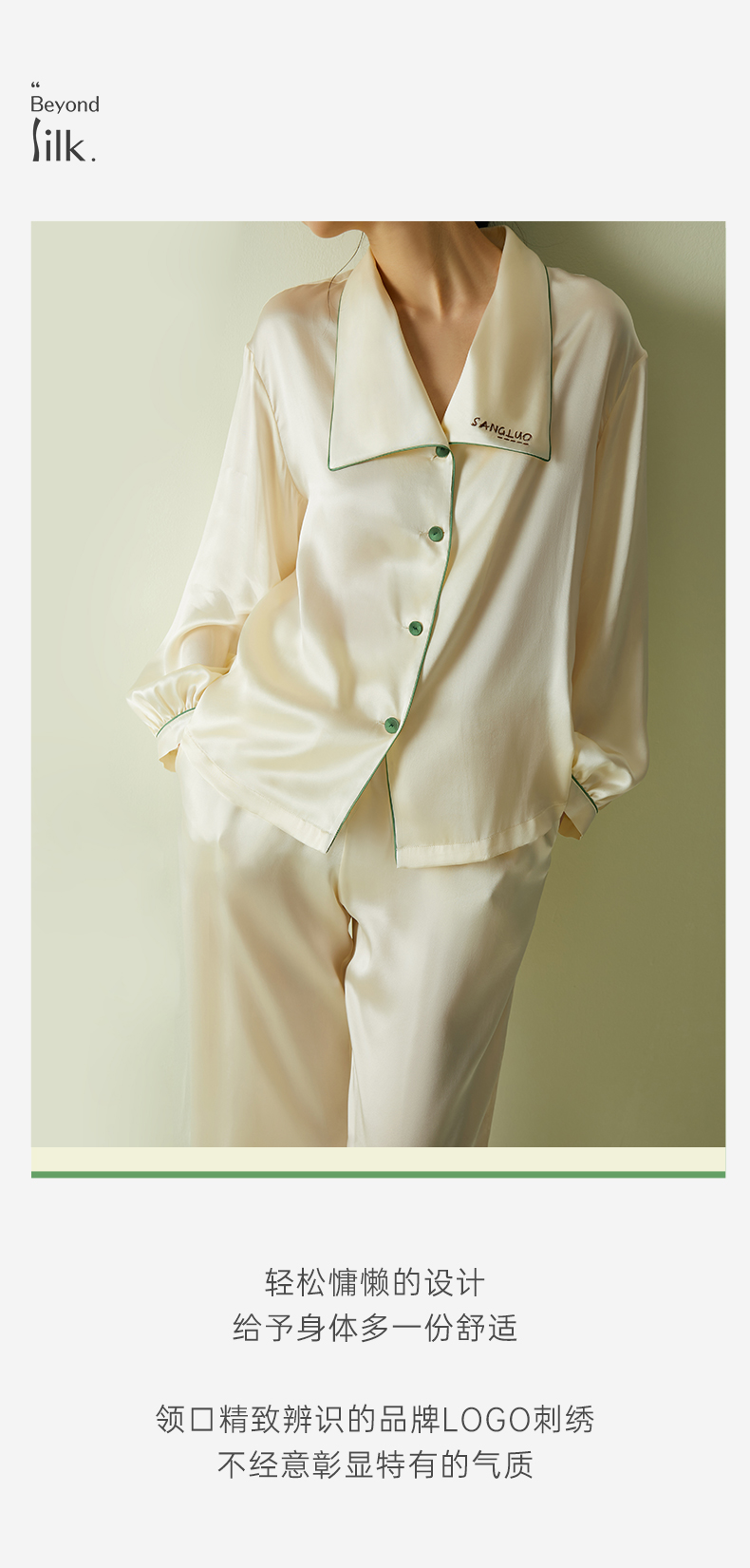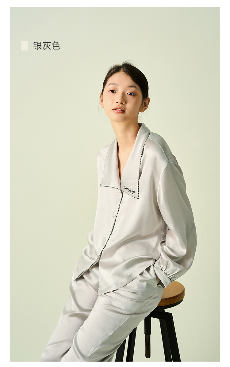 【凝】桑罗23姆米重磅真丝睡衣套装女春夏新品桑蚕丝舒眠家居服可外穿