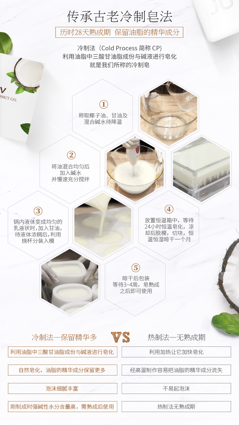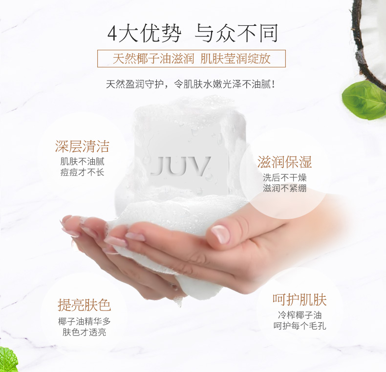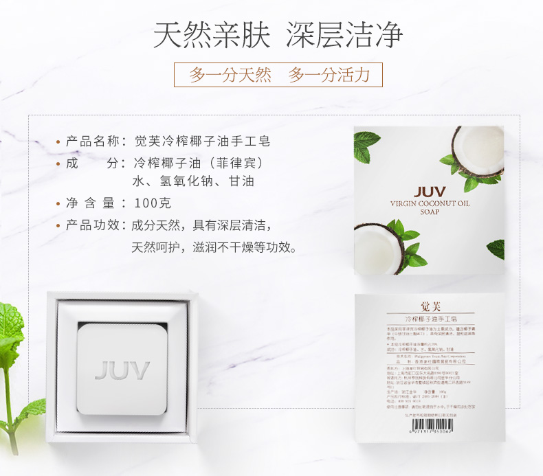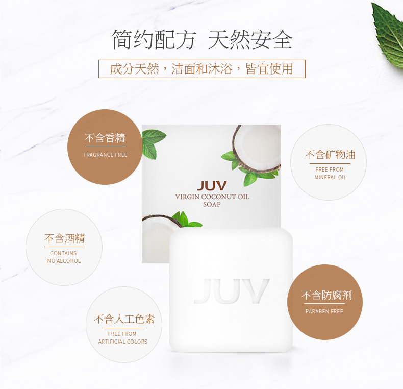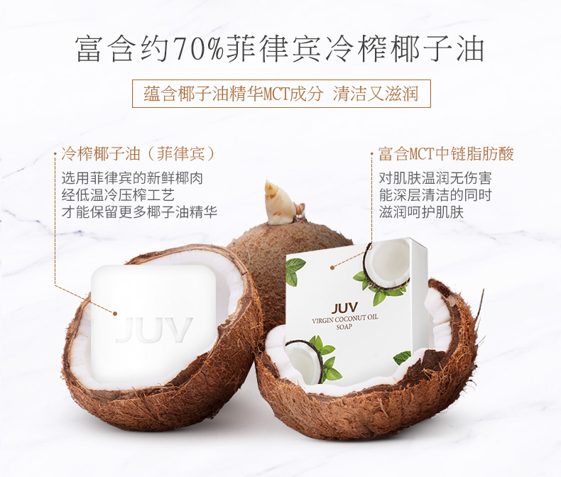JUV觉芙冷榨椰子油手工皂100G 天然面部肥皂 男女通用 洗脸深层清洁 身体香皂