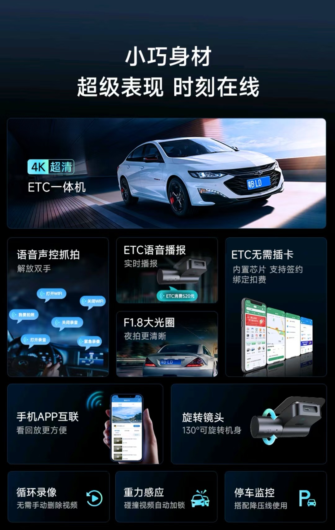 智能ETC行车记录仪一体机4K高清影像 支持语音播报无需插卡 EGS-05