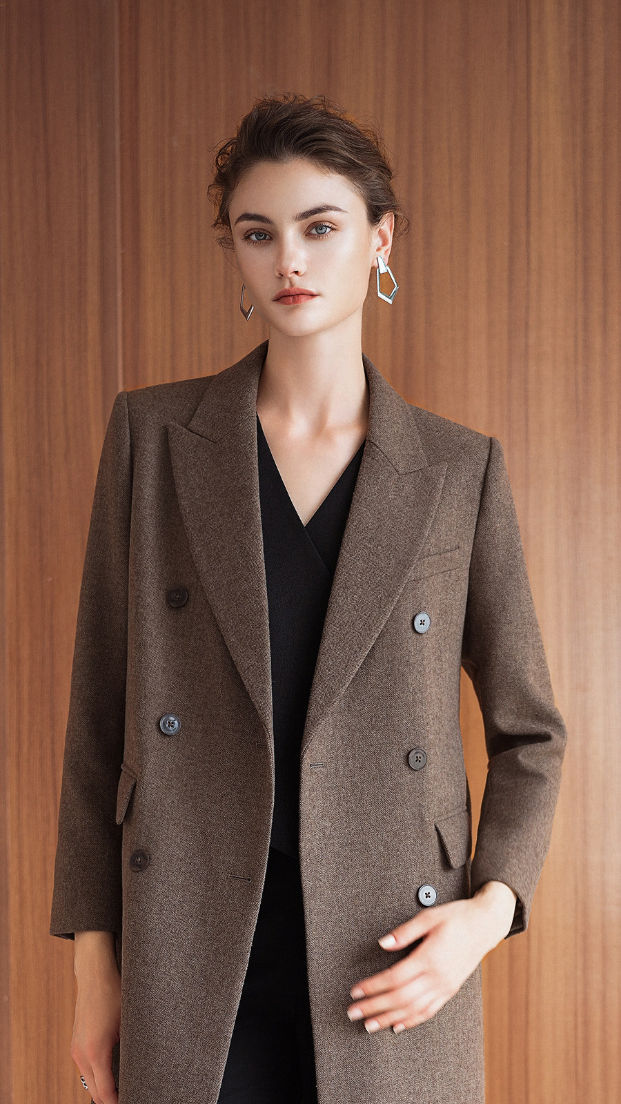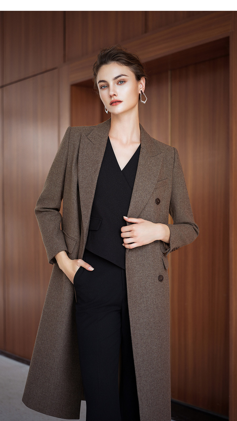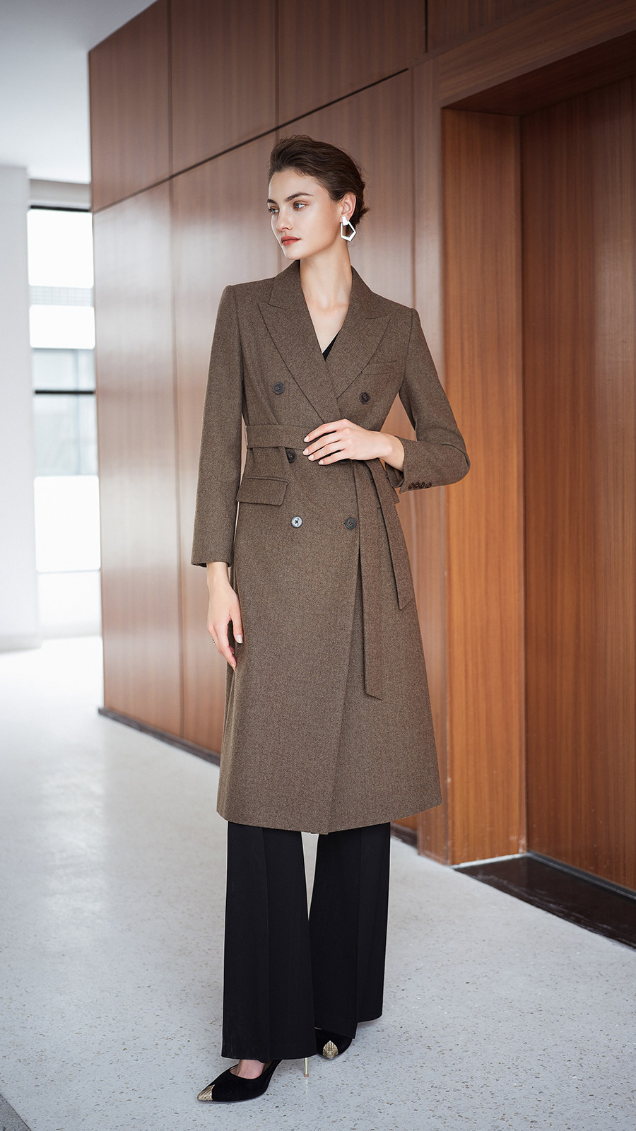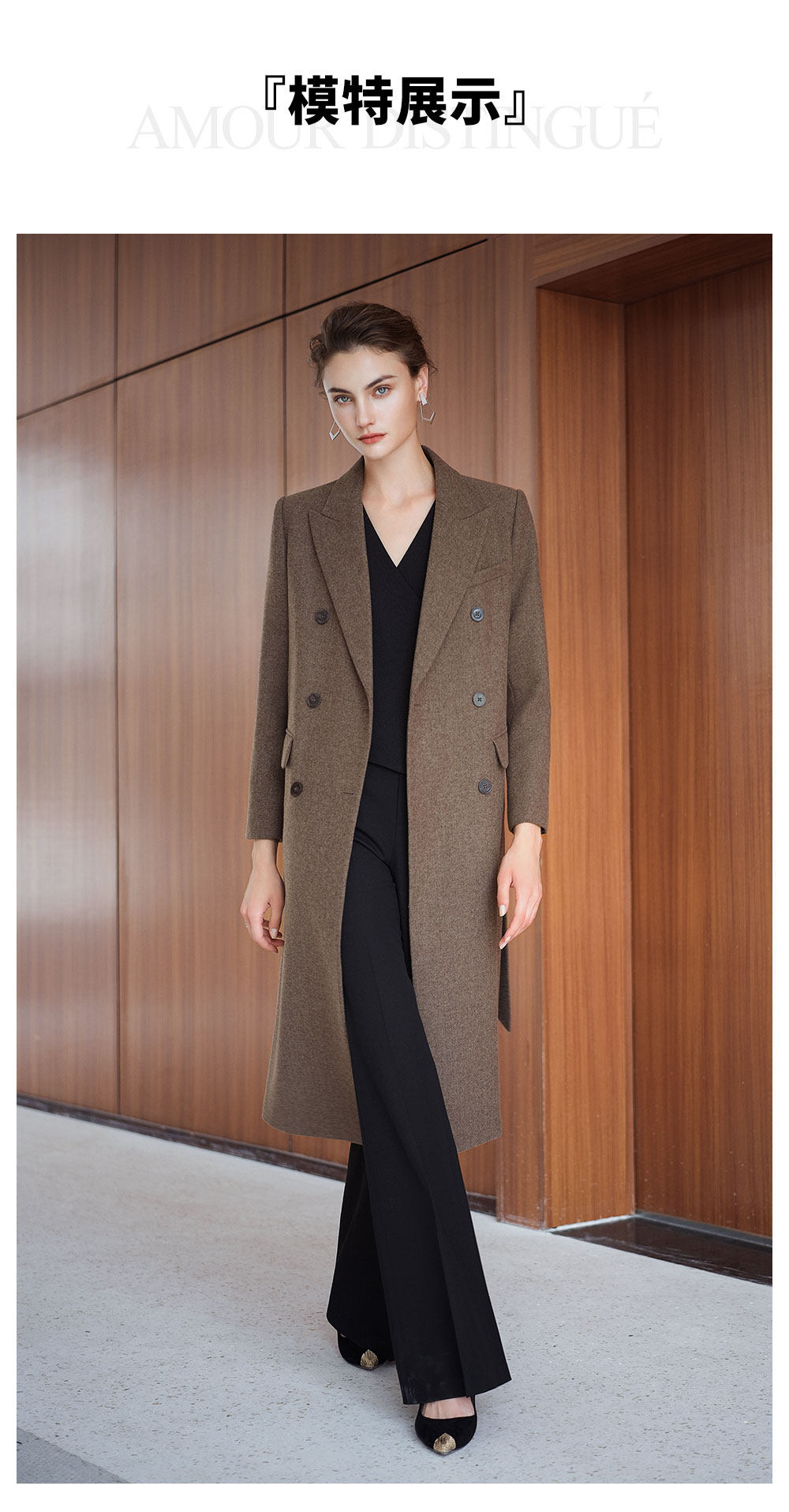艾尚臣英伦风棕色羊毛大衣女中长款双排扣通勤毛呢外套高级感穿搭