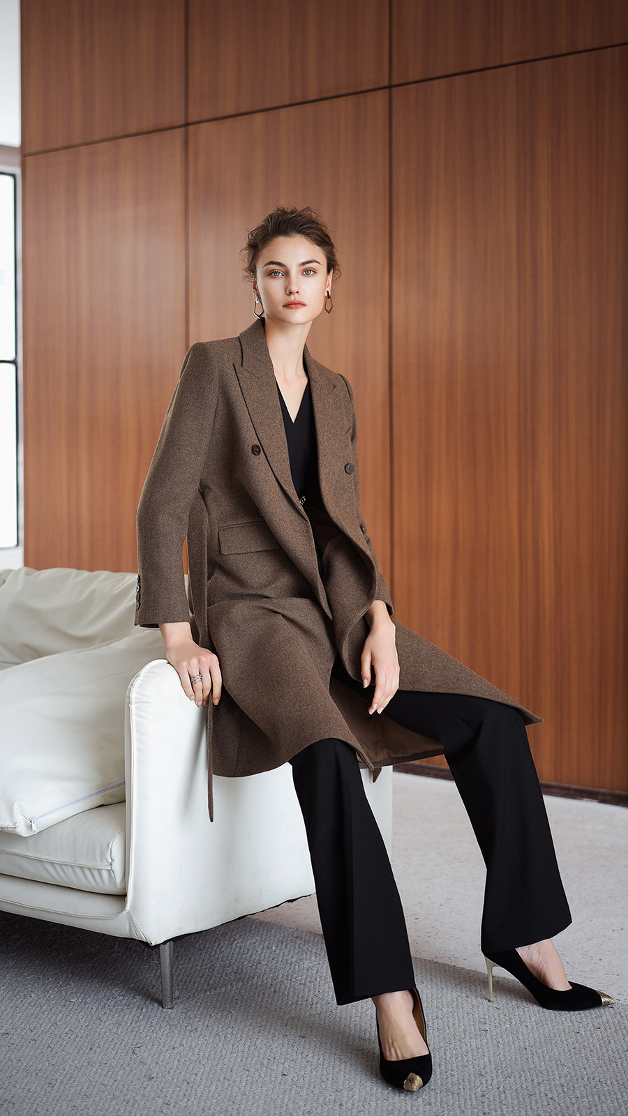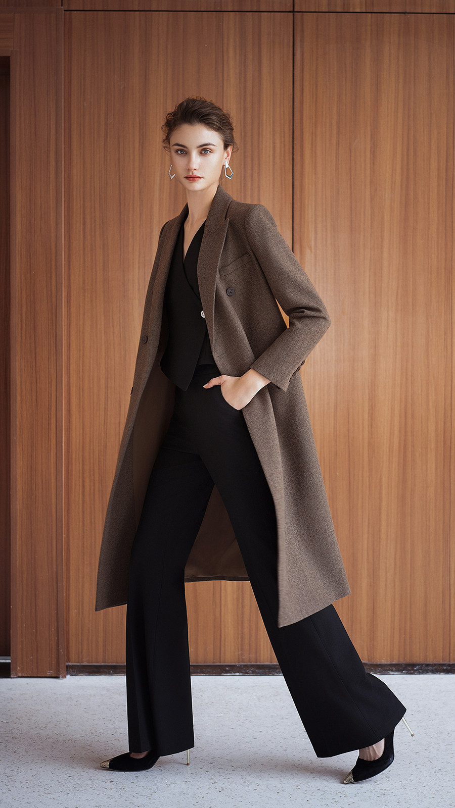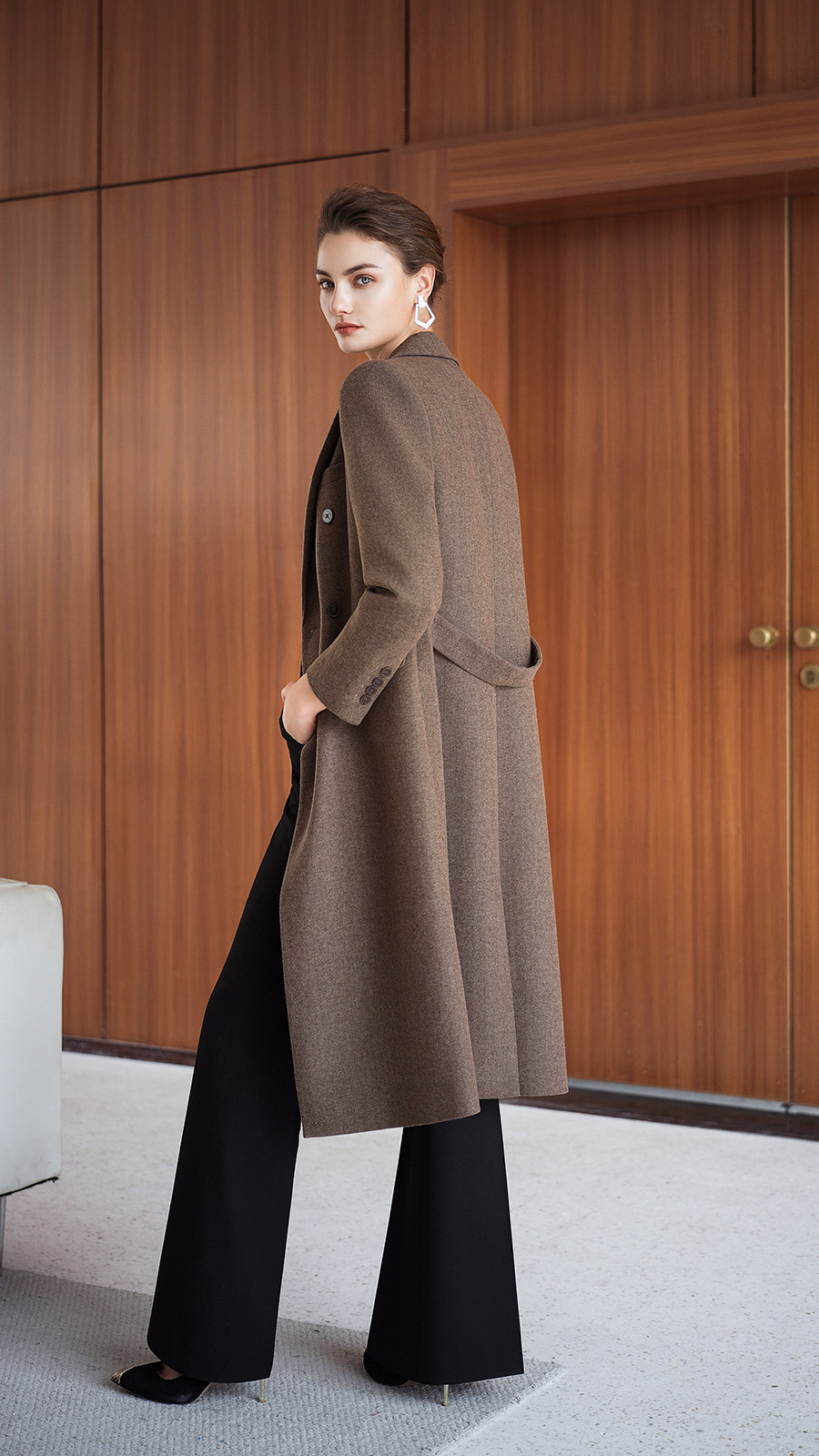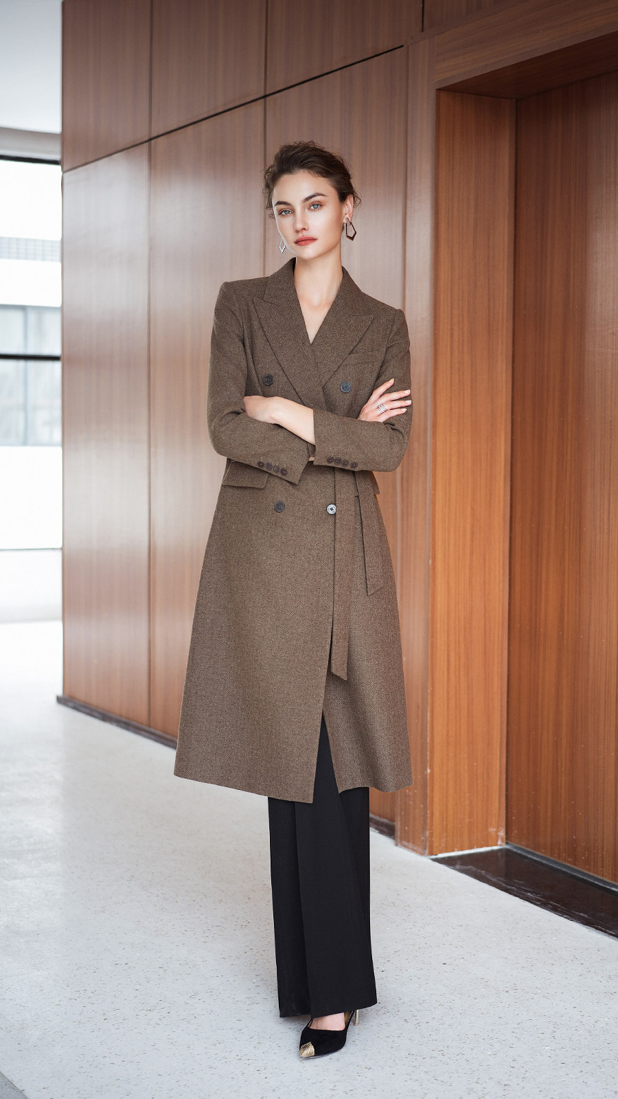 艾尚臣英伦风棕色羊毛大衣女中长款双排扣通勤毛呢外套高级感穿搭