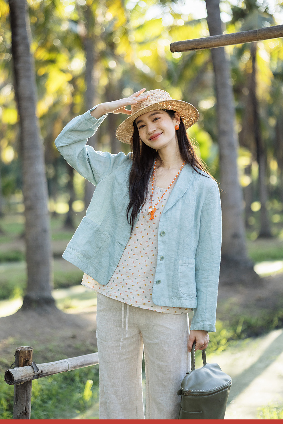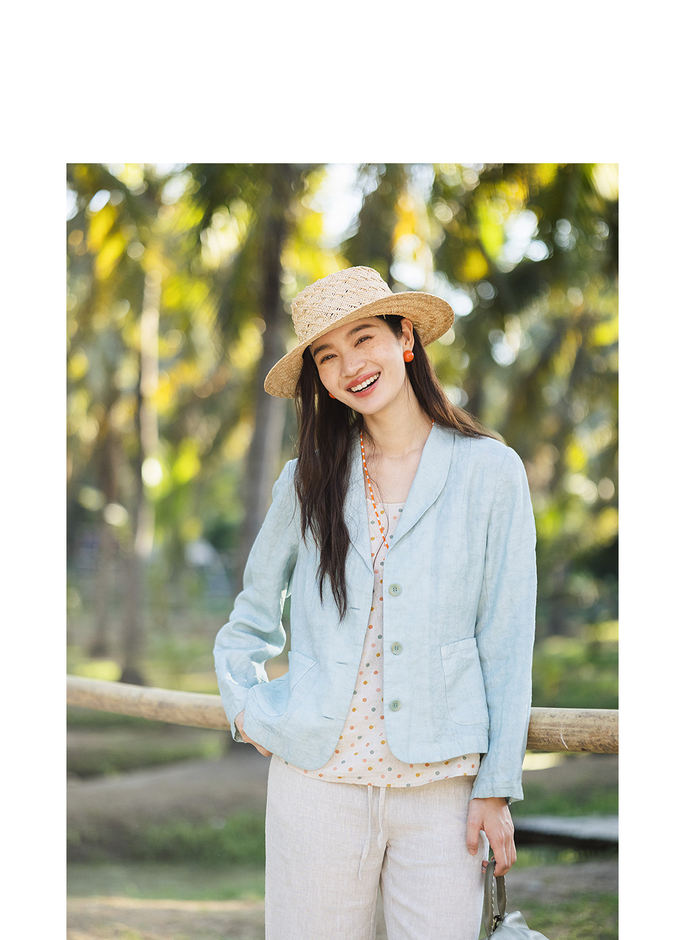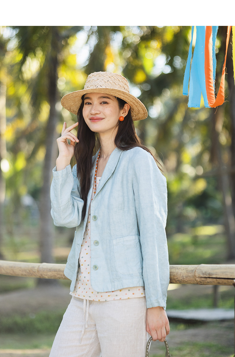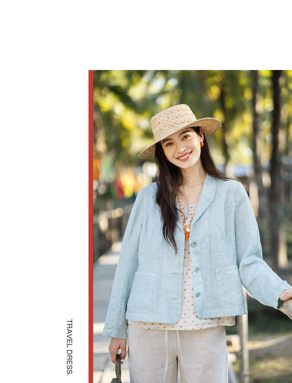 以天然亚麻为载体,融合热烈色彩与自在剪裁为身在城市、心怀远方的女性提供兼具美学与舒适的旅行着装