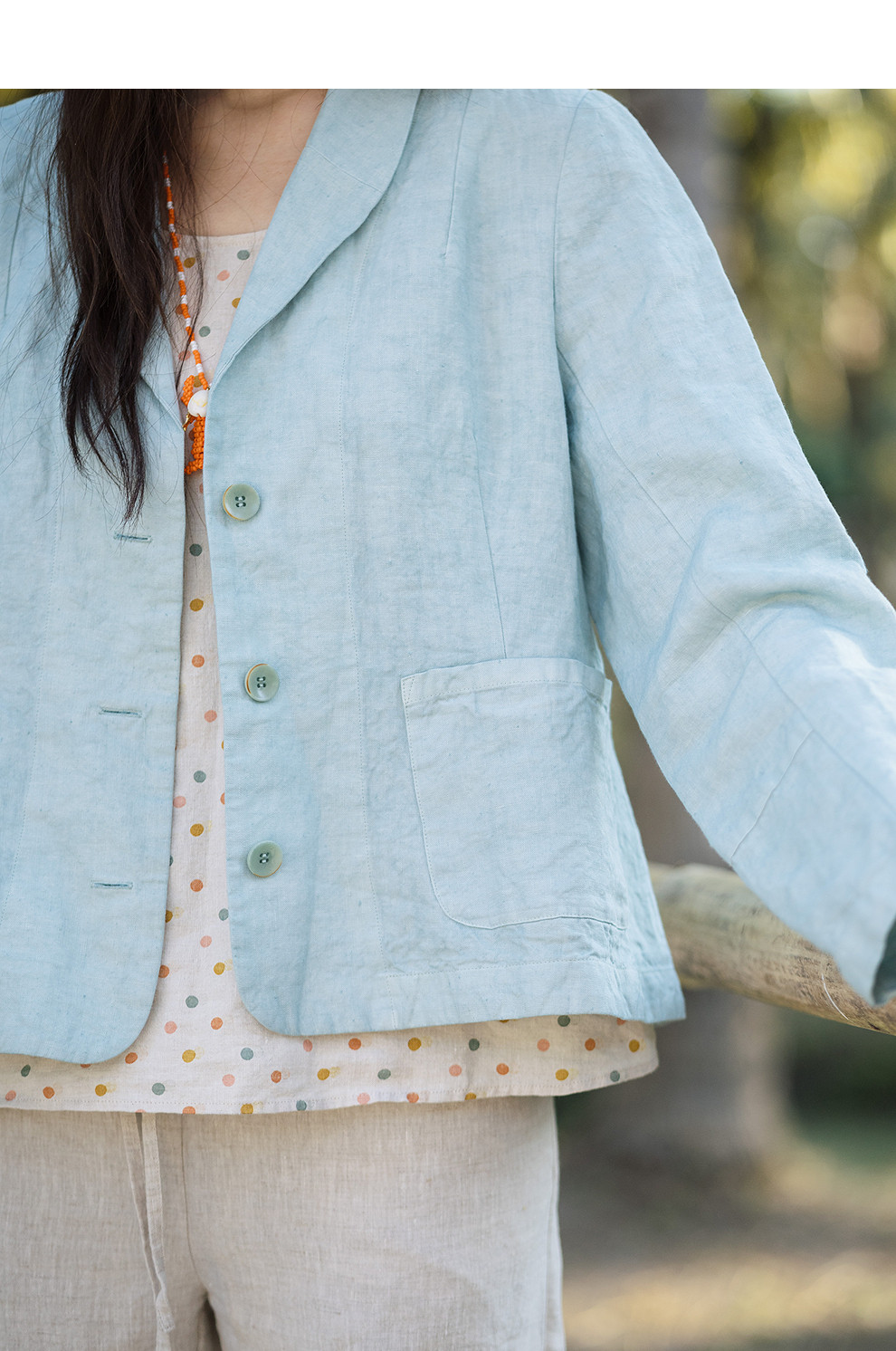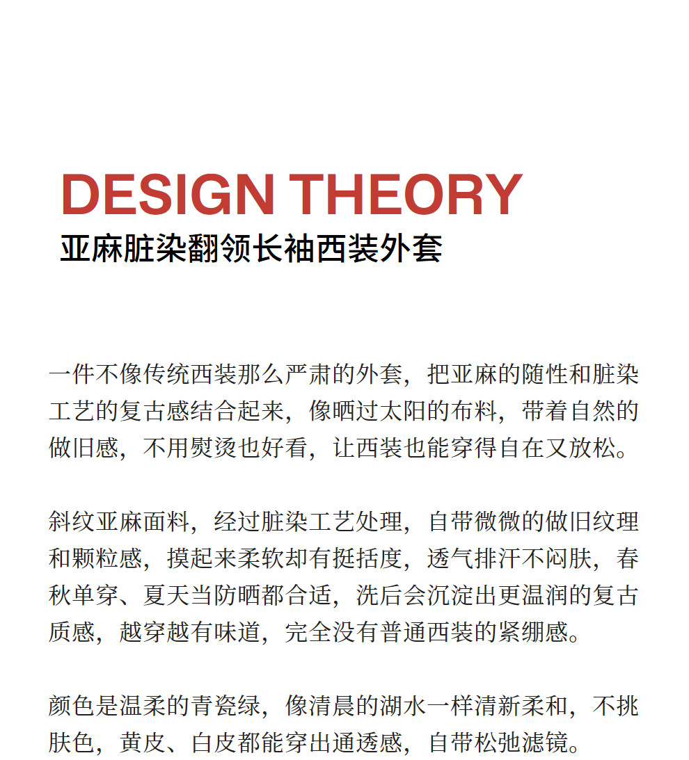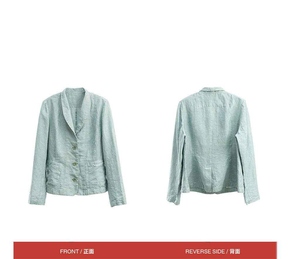 绽放132朵/斜纹亚麻脏染翻领长袖西装女经典文艺老钱风外套夏新款