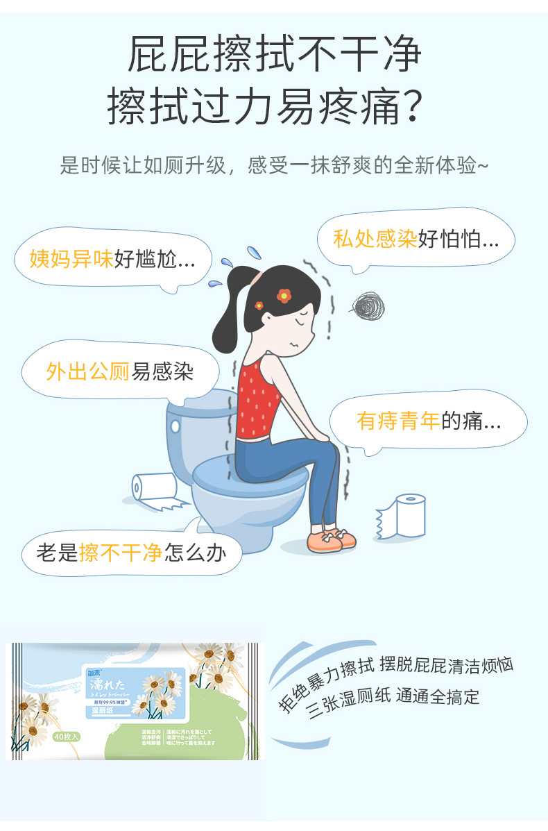 【化学“0”添加 分解更健康】40抽便捷携带如厕纸湿厕纸湿巾私处护理洁阴湿巾成人卫生湿巾纸