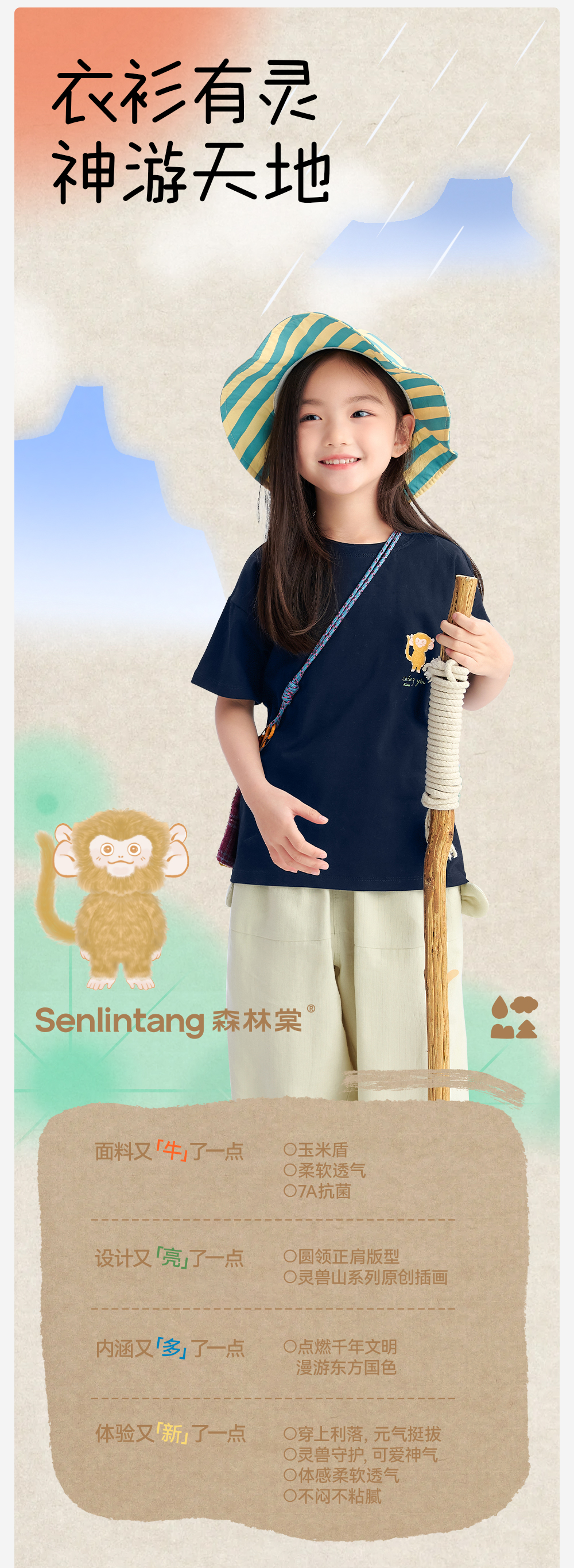 【原创插画短袖T恤】森林棠26夏款玉米盾7A抗菌吸湿透气儿童圆领T恤40162549