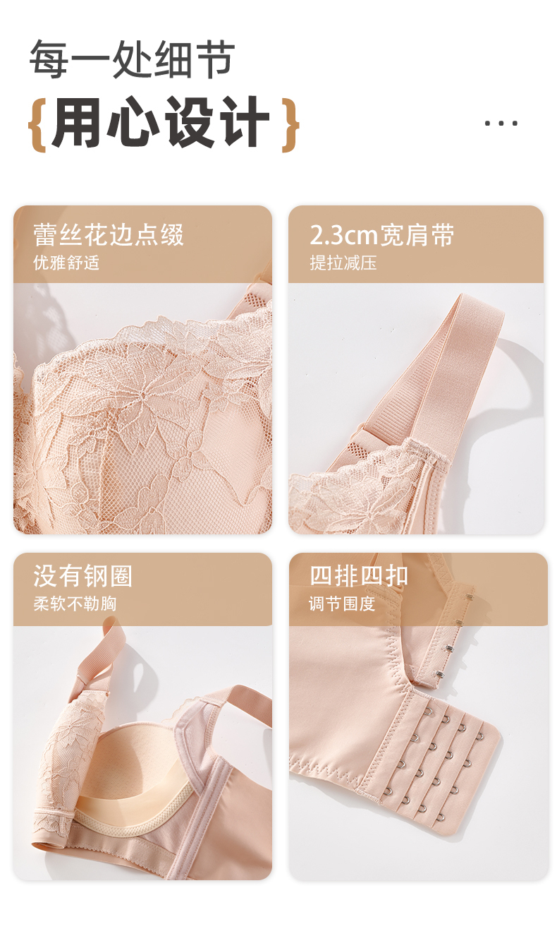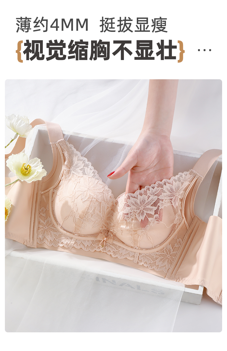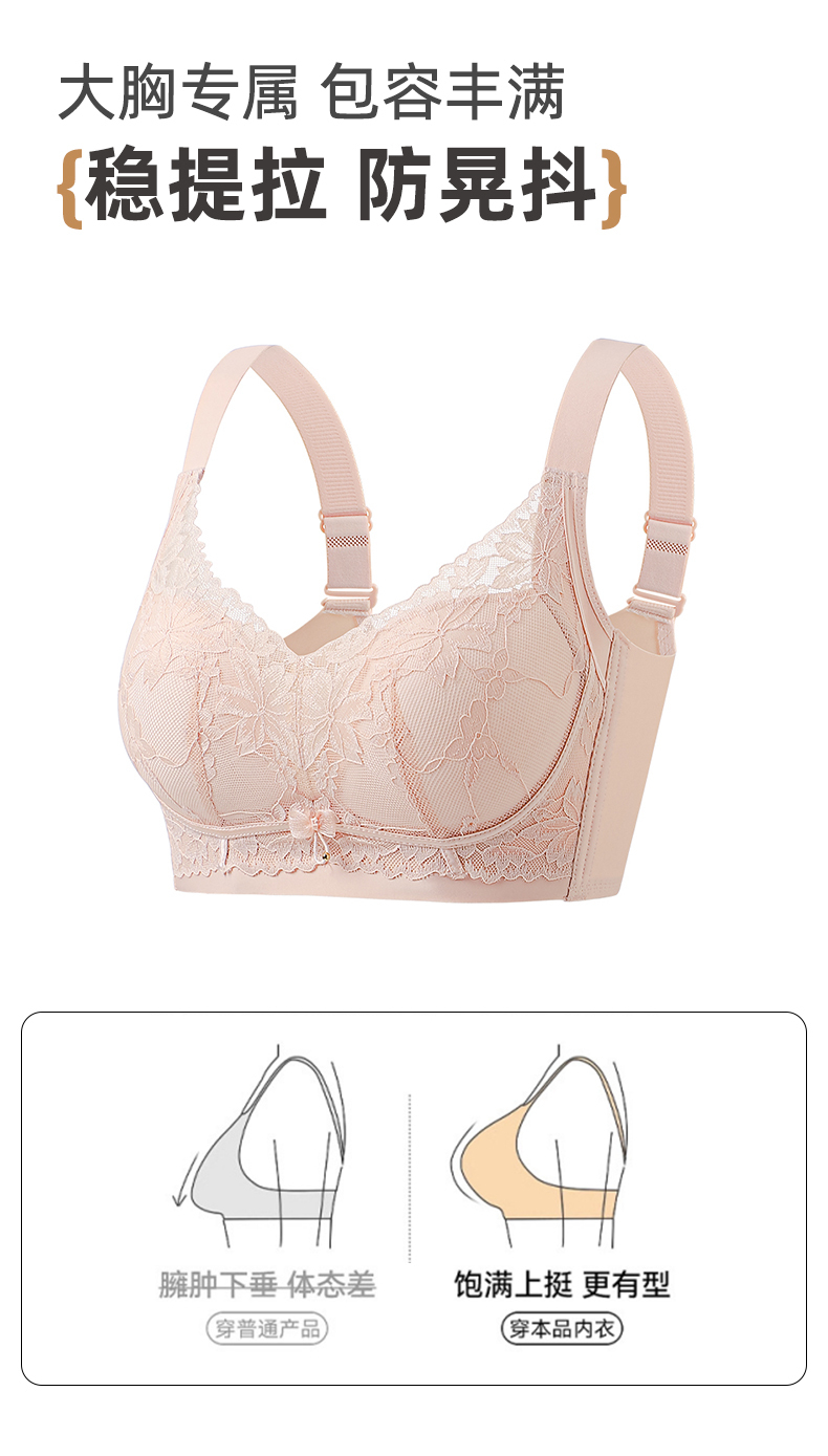 雅黛俪大胸显瘦显瘦女士内衣性感蕾丝文胸提拉收副乳防下垂轻薄透气胸罩